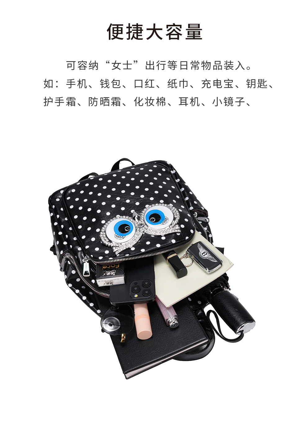 Mochila de moda damas onduladas de moda mochila de estudiantes con cremallera de gran capacidad de diseño de viaje de moda 2881 #