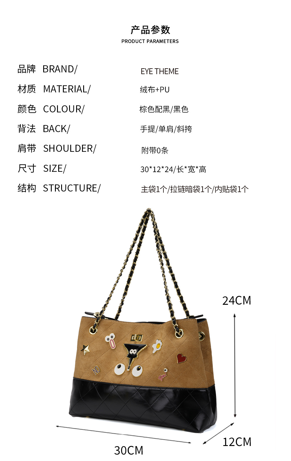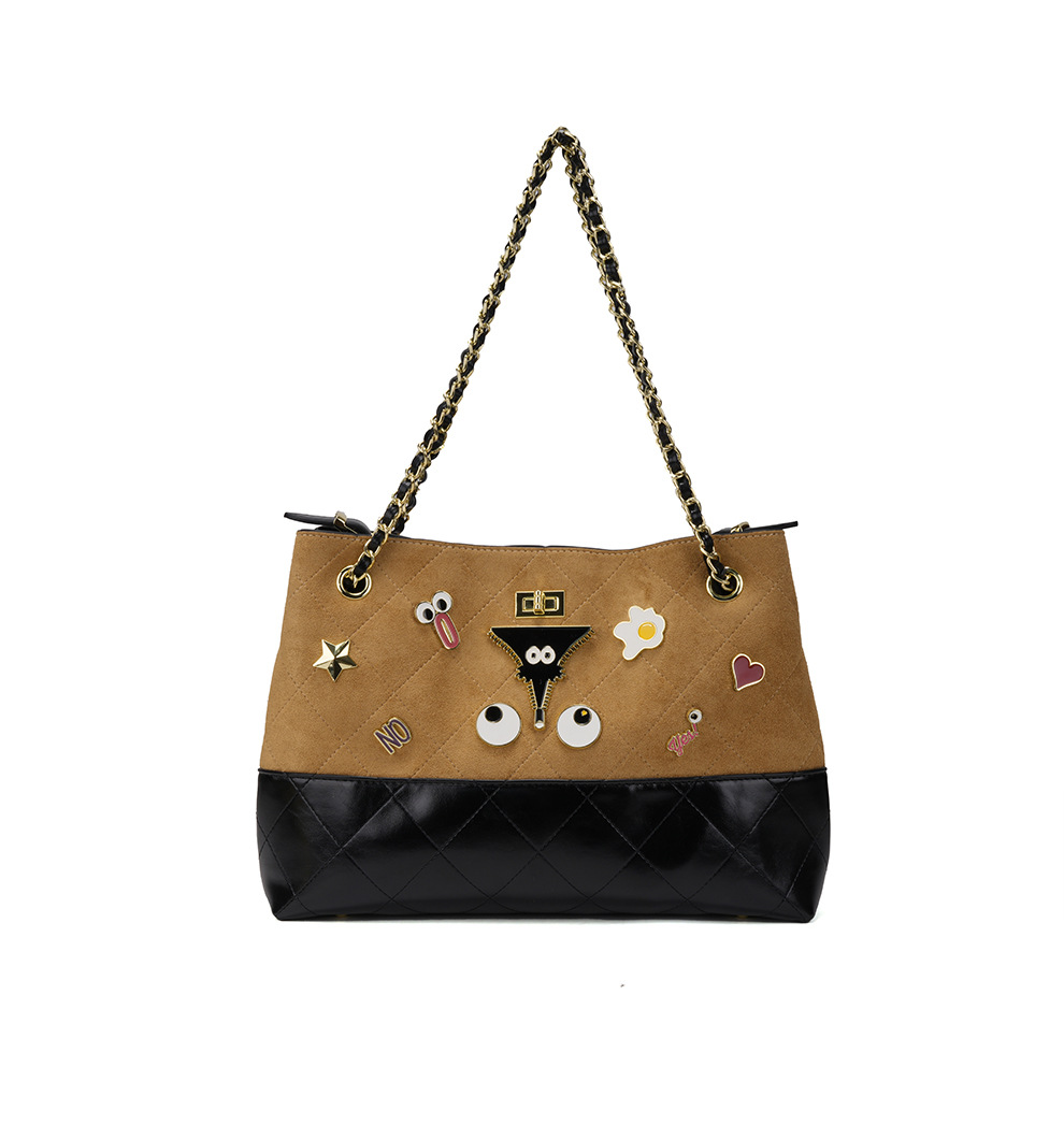Bolsa de hombro de mujer de empalme de pelusa de contraste de color bolsas de cadena de moda casuales de gran capacidad bolsas de brazo 2882 #