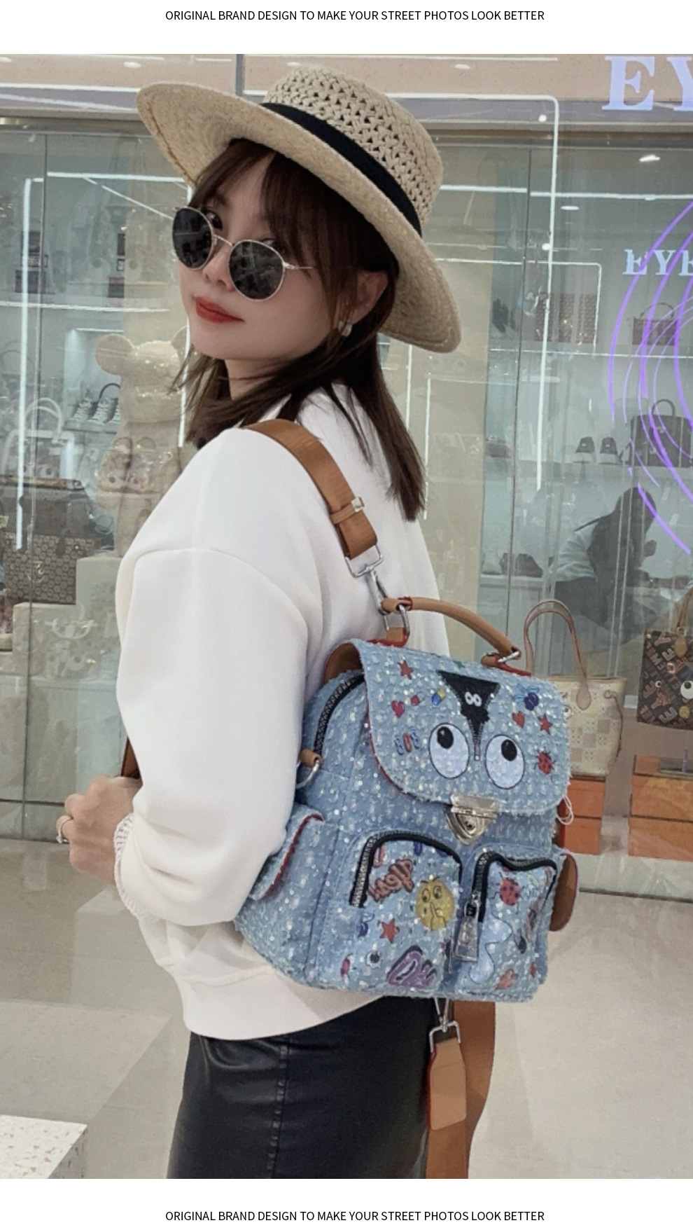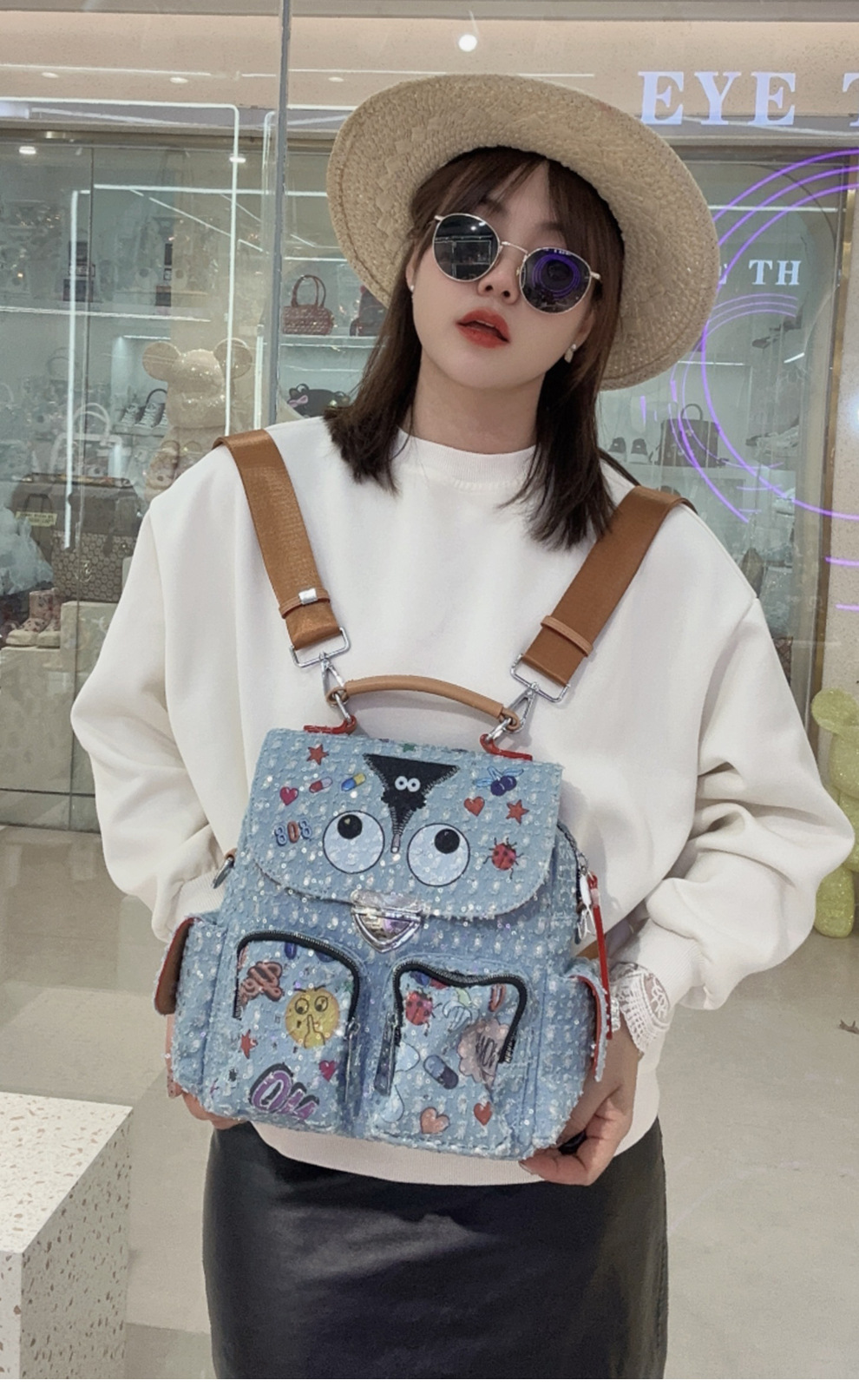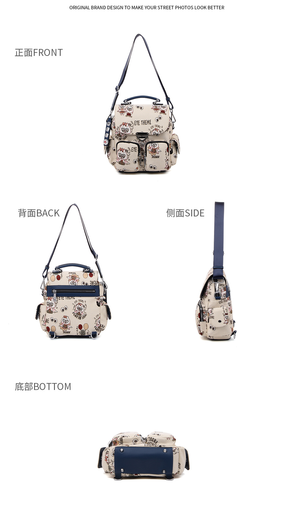 Colores contrastantes, nueva impresión de personalidad, extraña bolsa de mujer portátil con tapa de flip, novedad, lindo hombro de hombro con una gran capacidad.