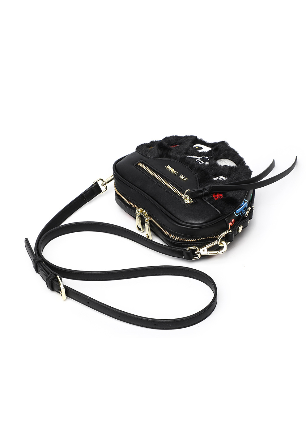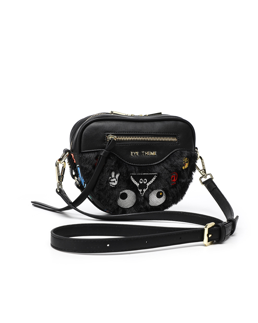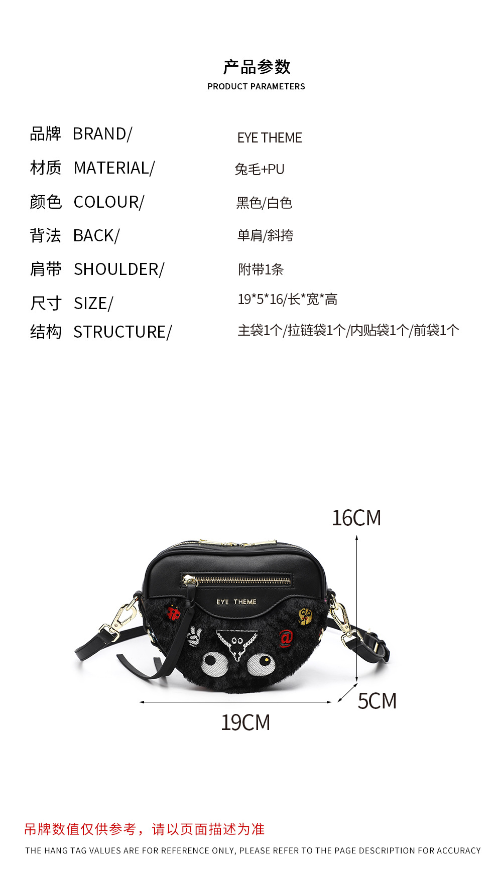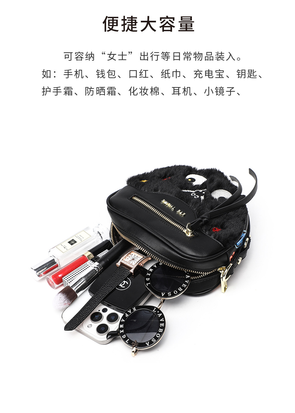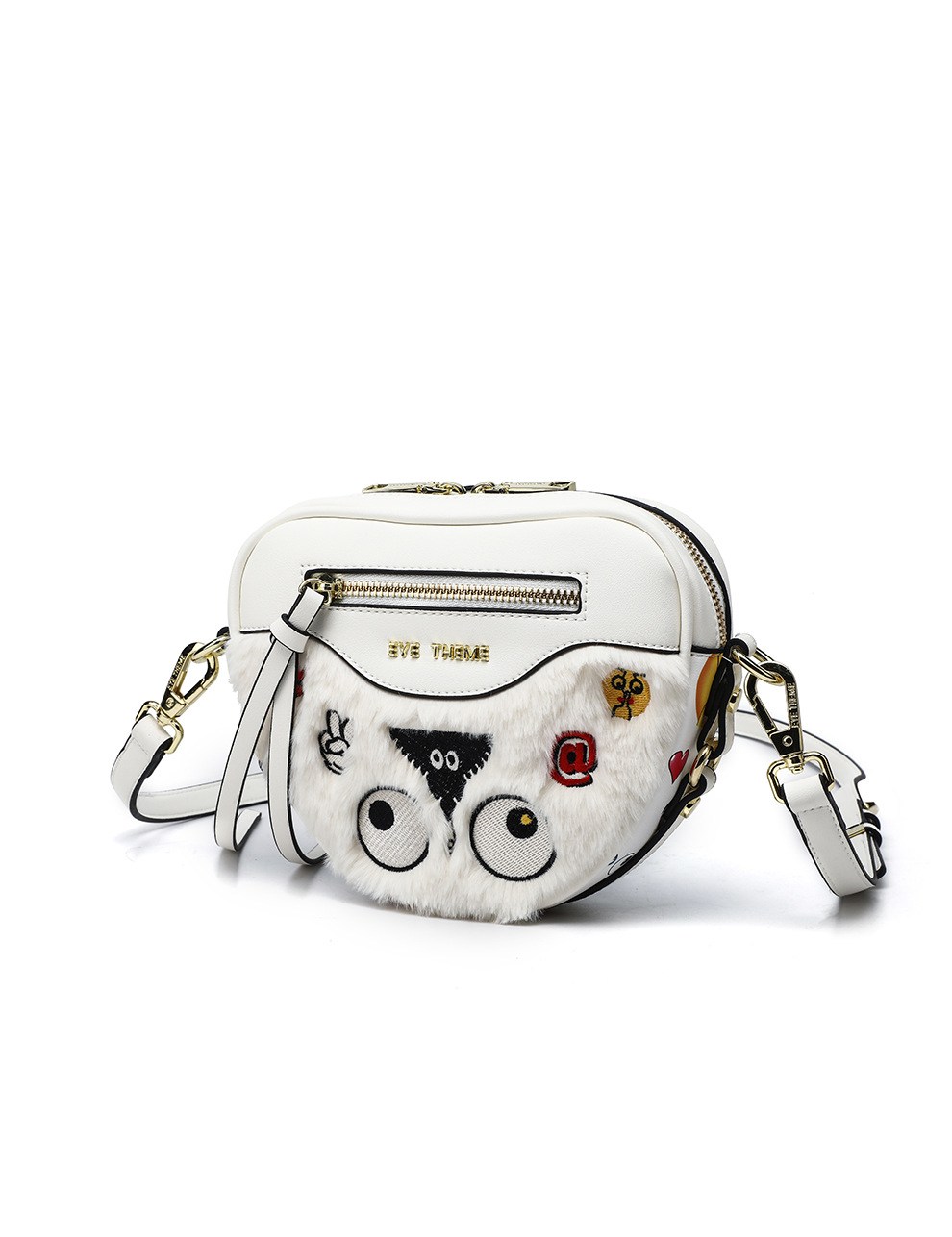 Otoño y invierno peluche lindo mini bolso inclinado a través de la cremallera del corazón de melocotón contra el color contra el color de la pequeña bolsa de amor pelo de conejo 2535 - 1 #