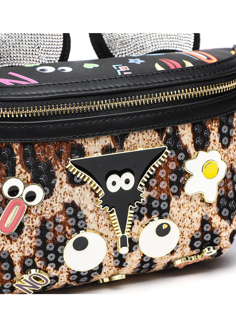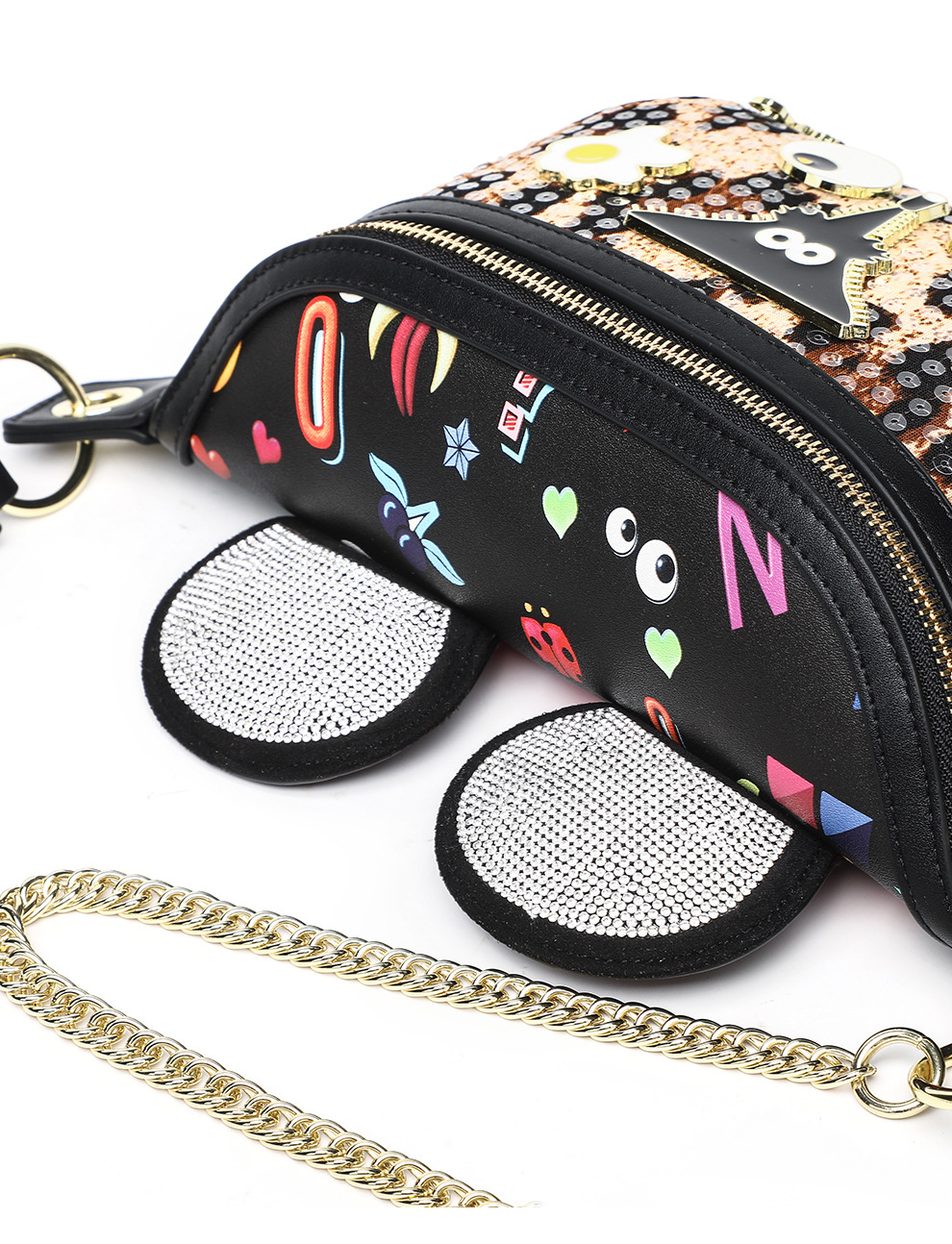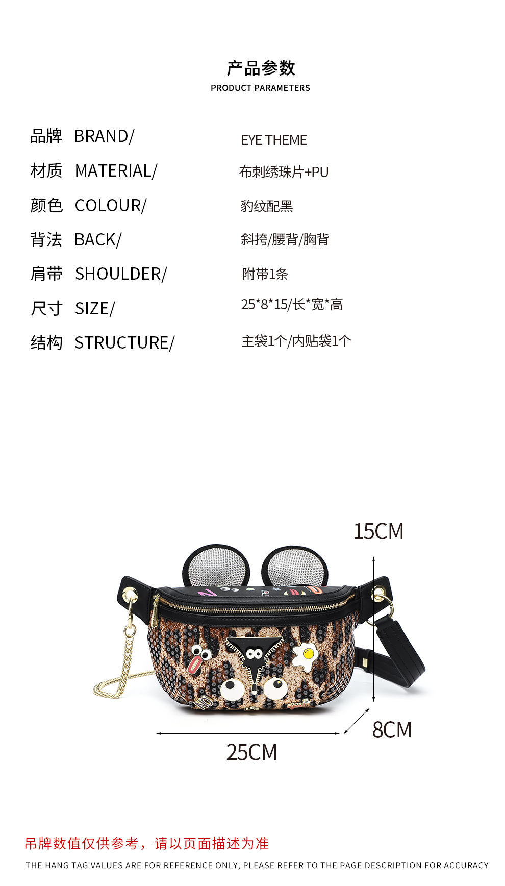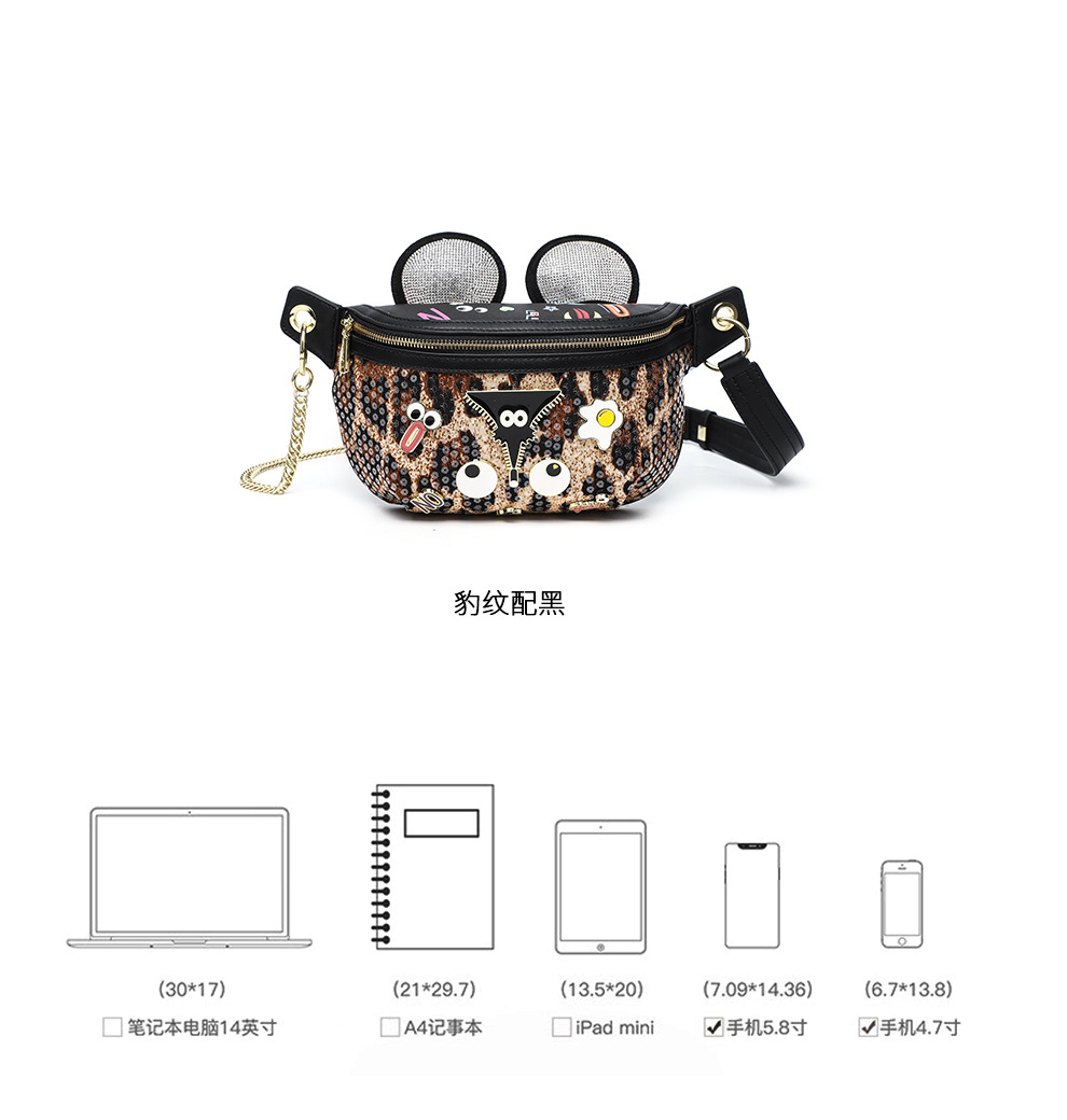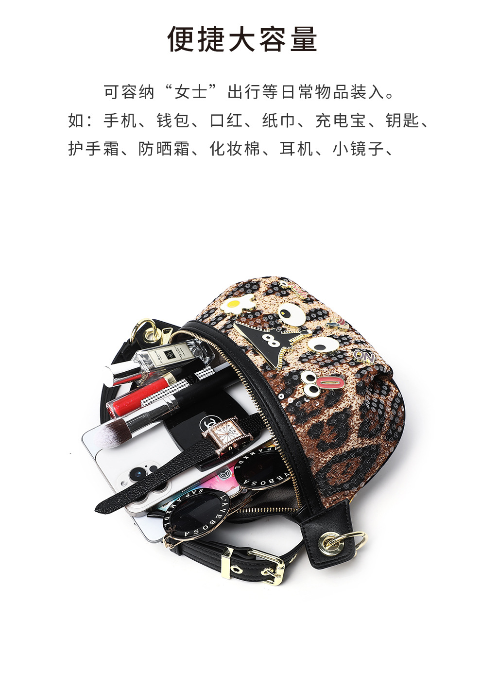 Otoño y invierno, cuentas de leopardo de alta calidad, bolso de mochila de damas, bolso de pecho de diamante de cadena de diseño lindo # 2865