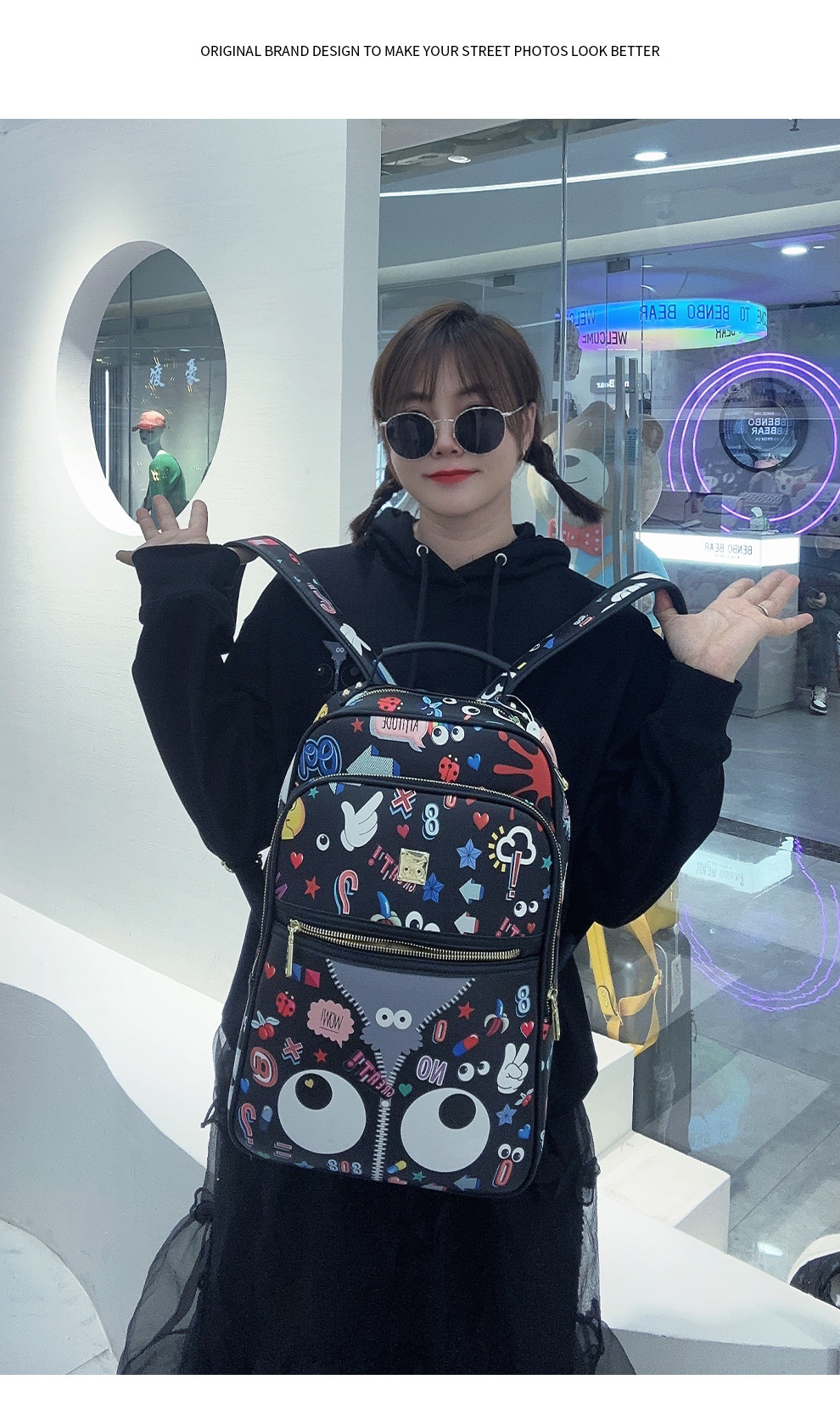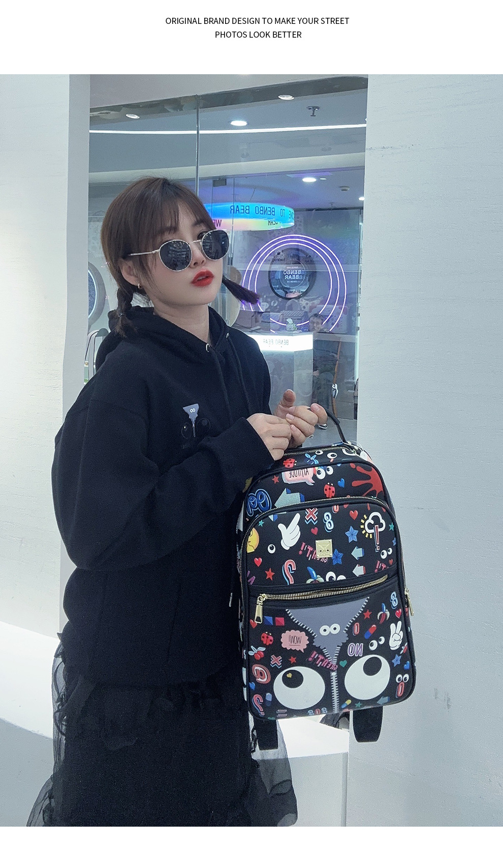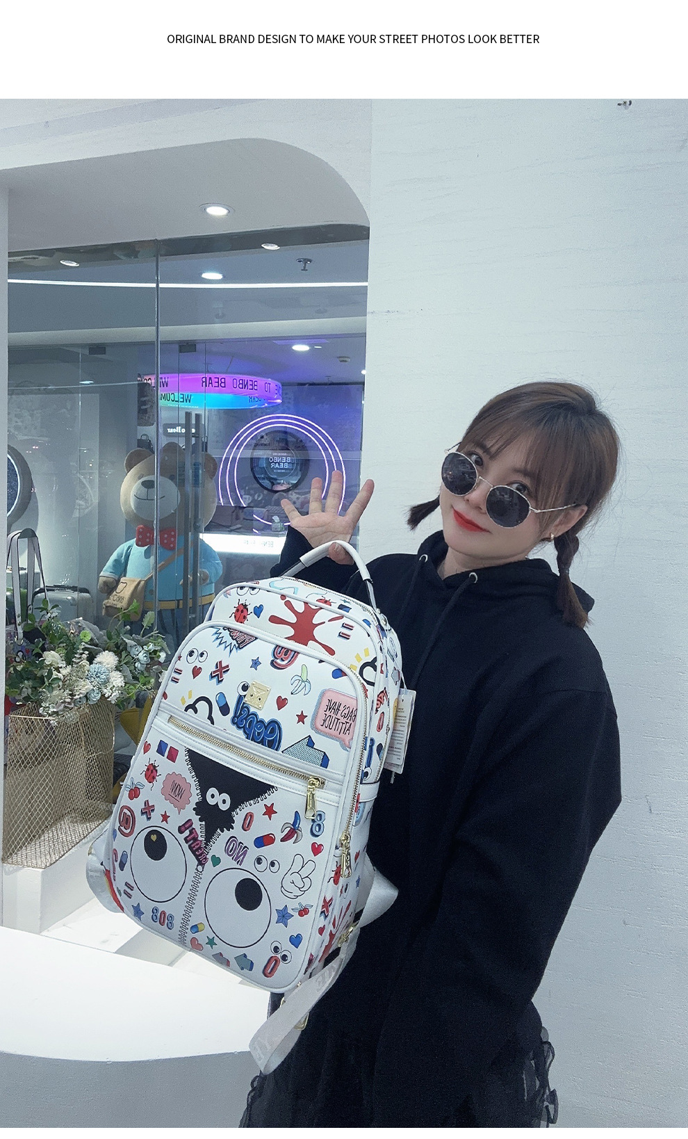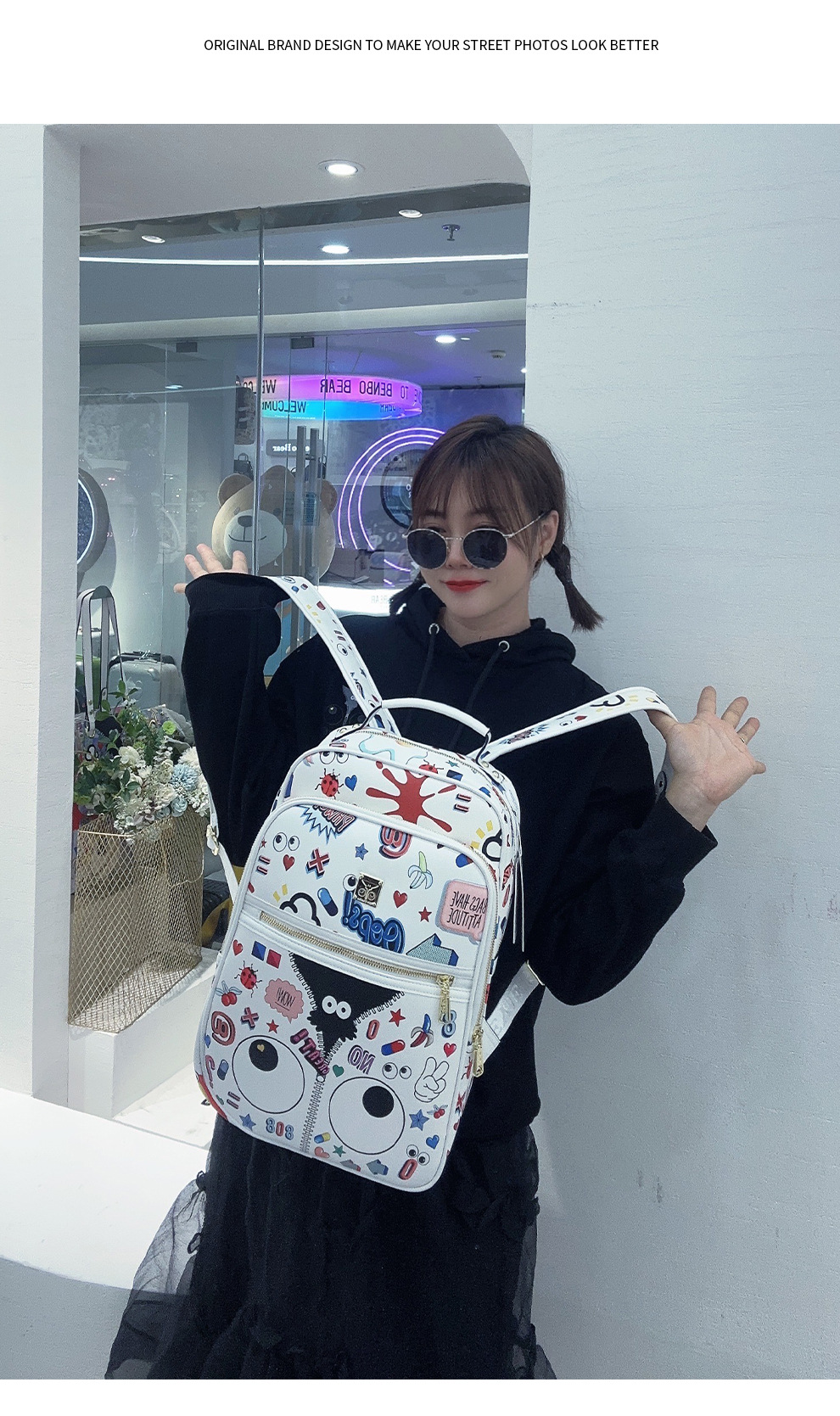 Viajes de gran capacidad de almacenamiento de hombro trasero PU impresión de moda moda cremallera bolsas escolares de estudiantes graffiti #2553