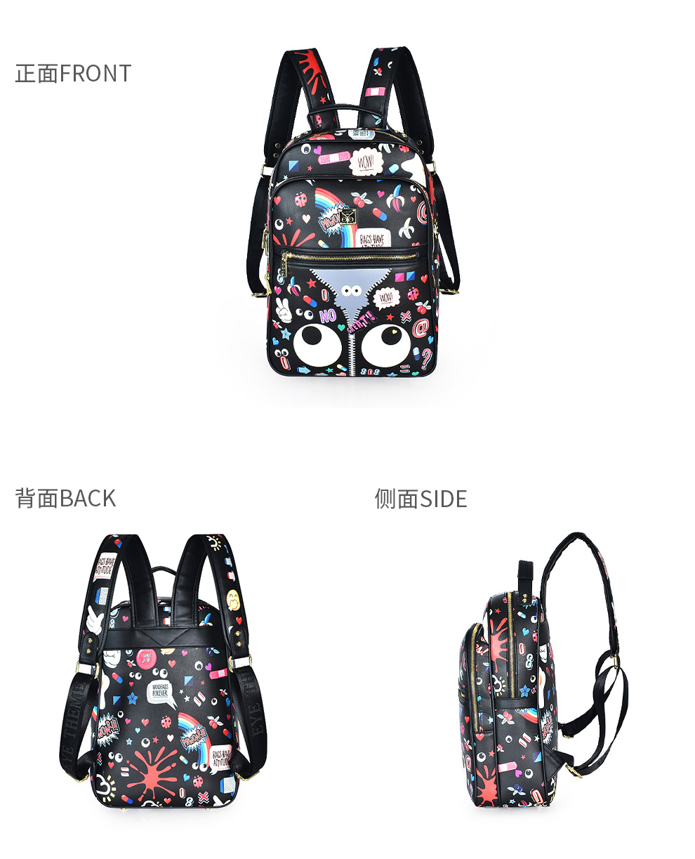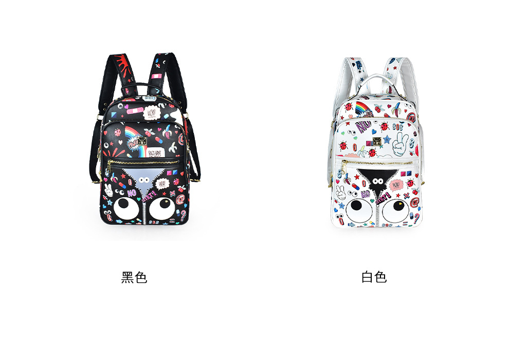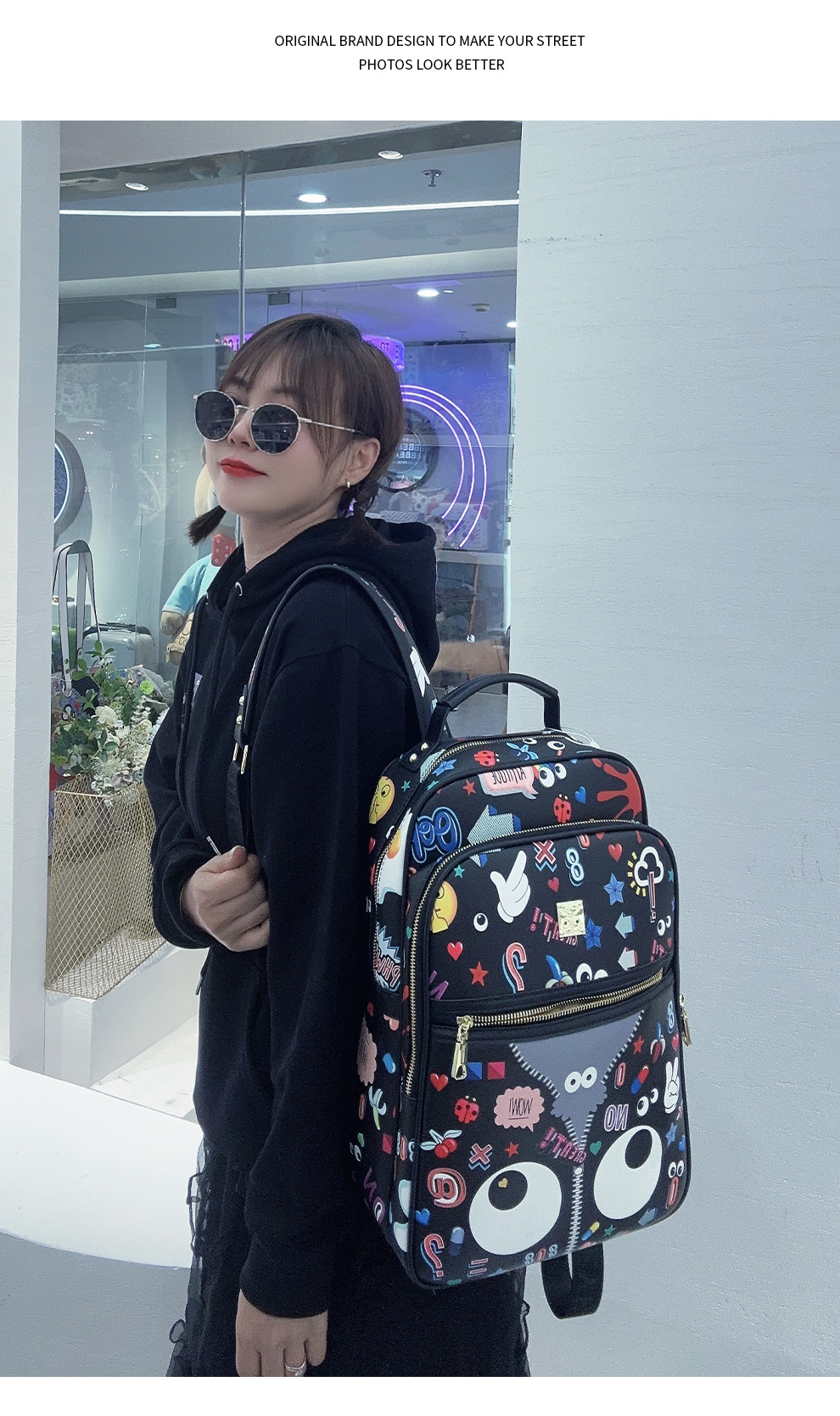 Viajes de gran capacidad de almacenamiento de hombro trasero PU impresión de moda moda cremallera bolsas escolares de estudiantes graffiti #2553