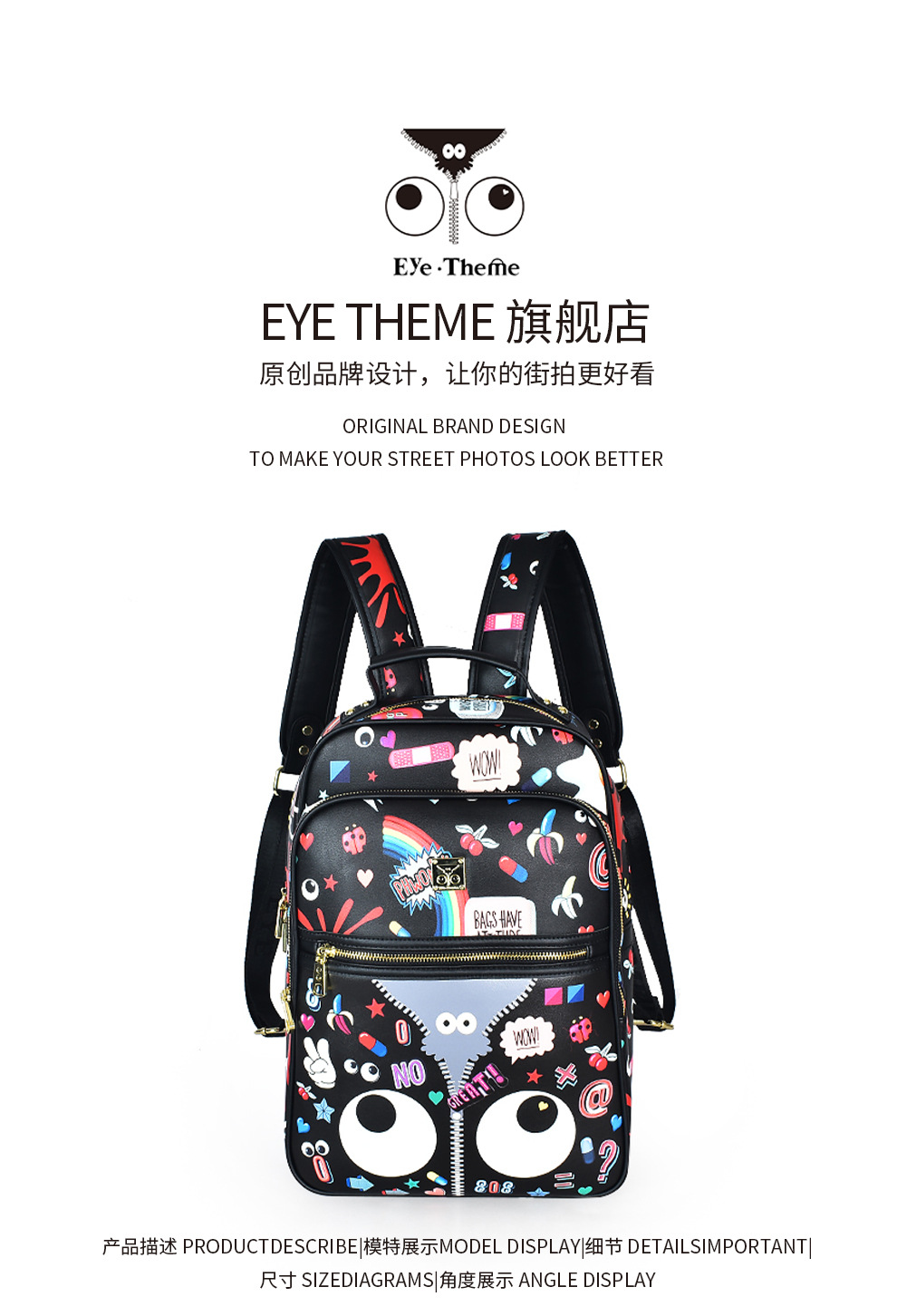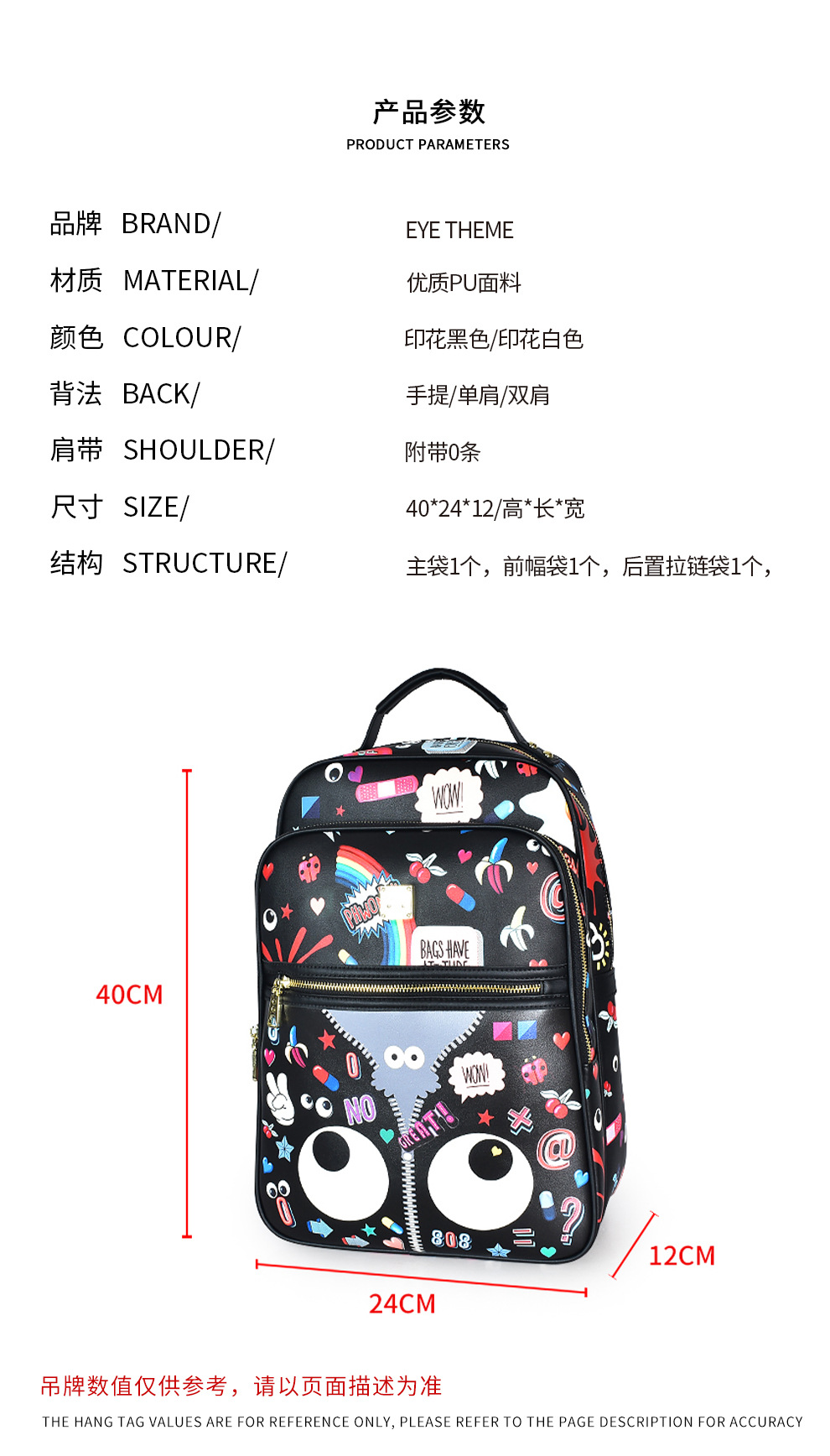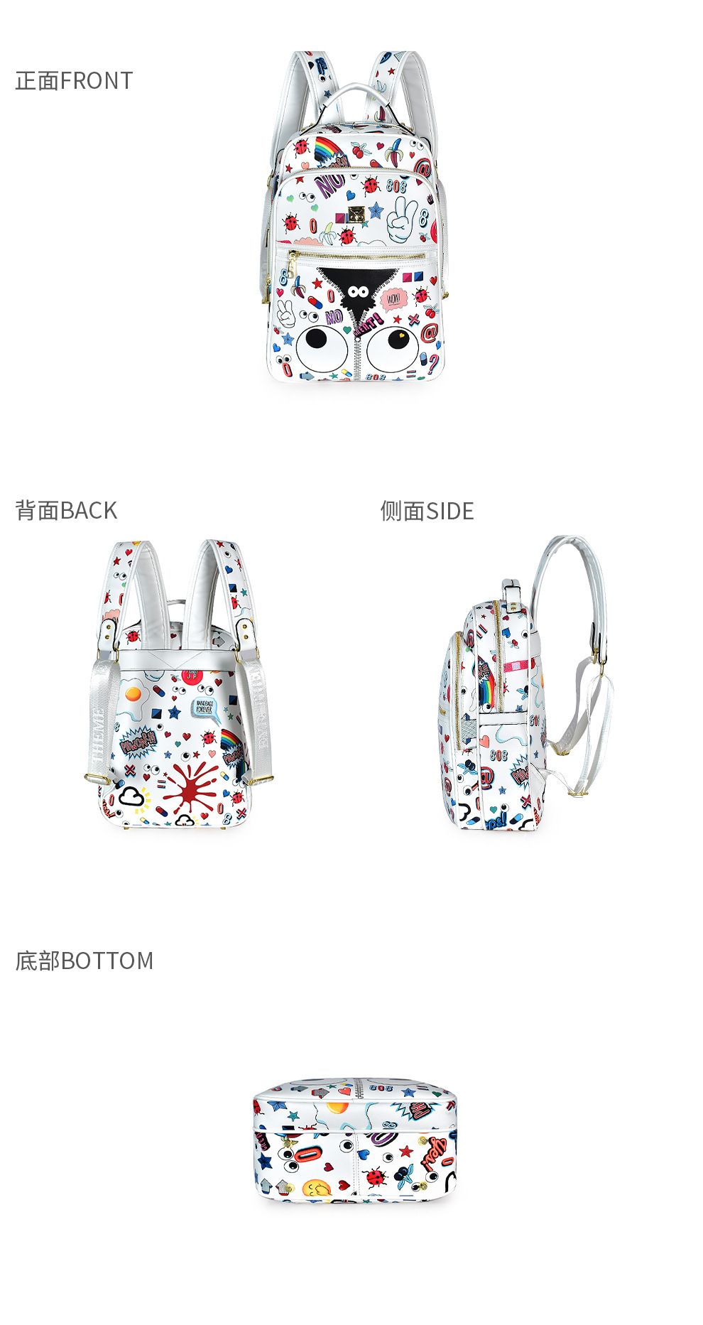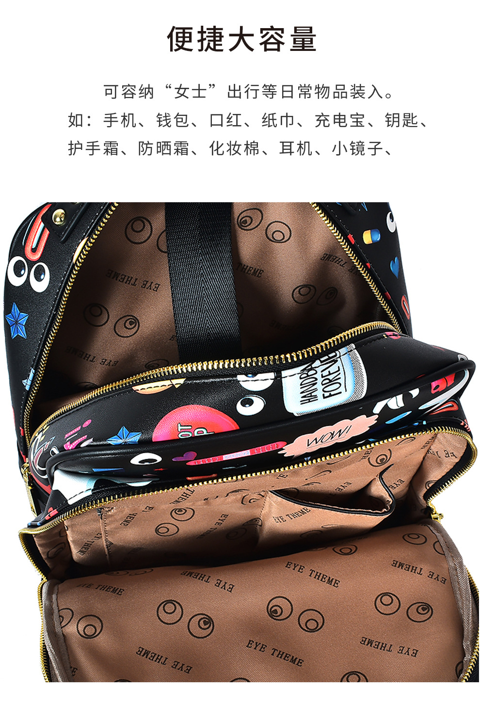Viajes de gran capacidad de almacenamiento de hombro trasero PU impresión de moda moda cremallera bolsas escolares de estudiantes graffiti #2553