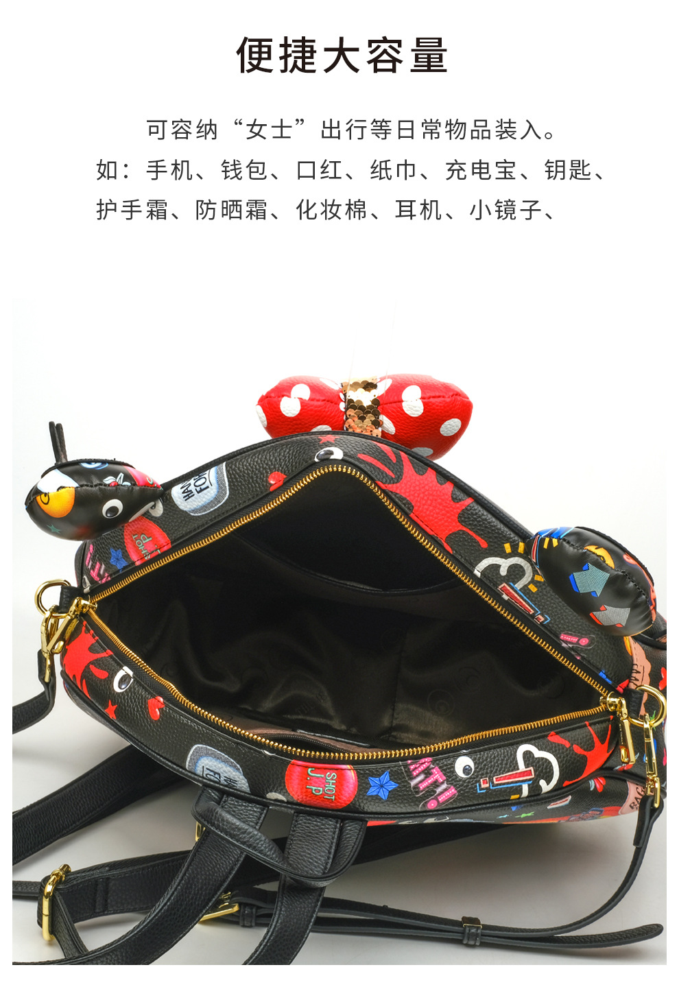 Mujeres de gran capacidad de banca encantadora cartoon zipper lichi mochila multipropósito 2677 - 1 #