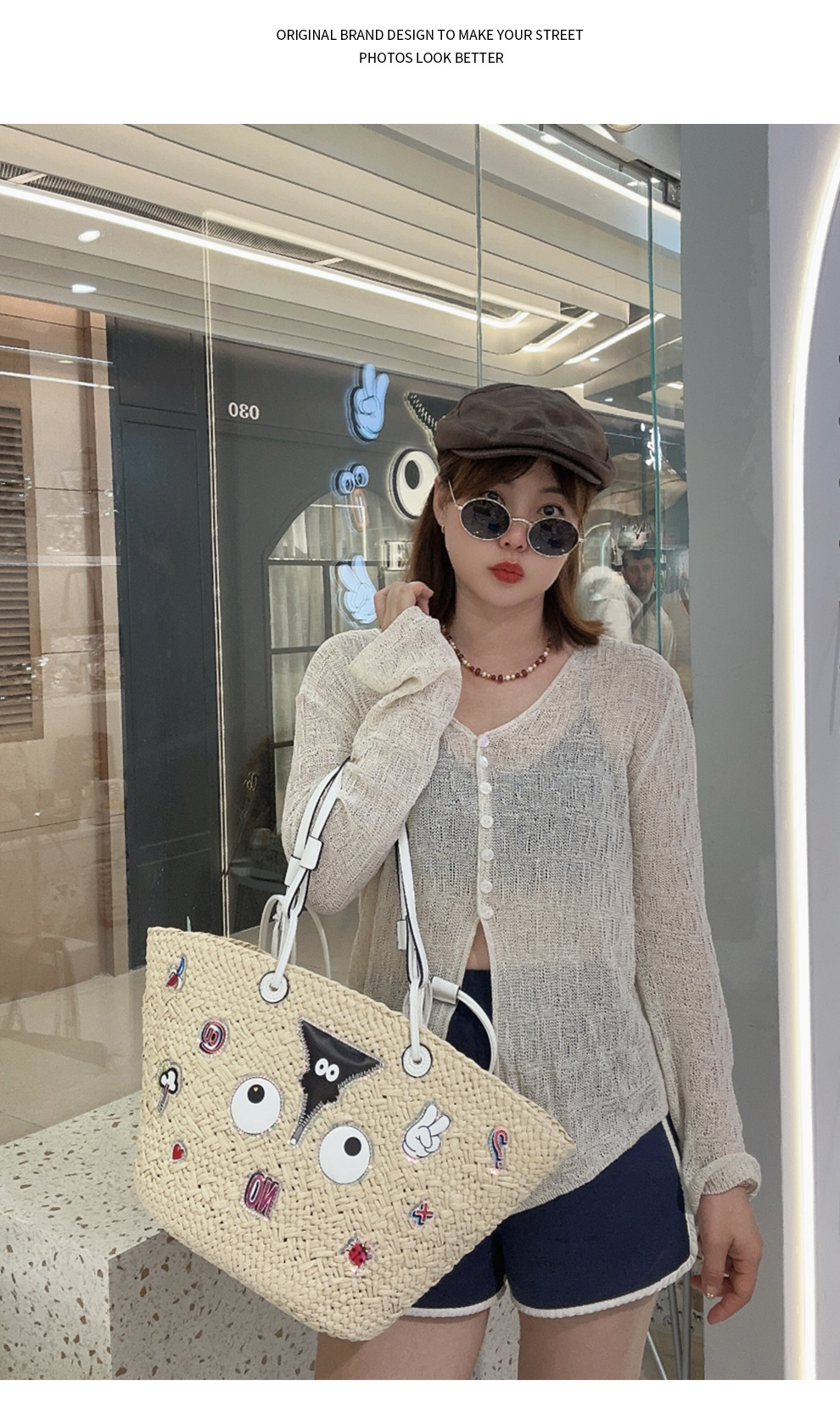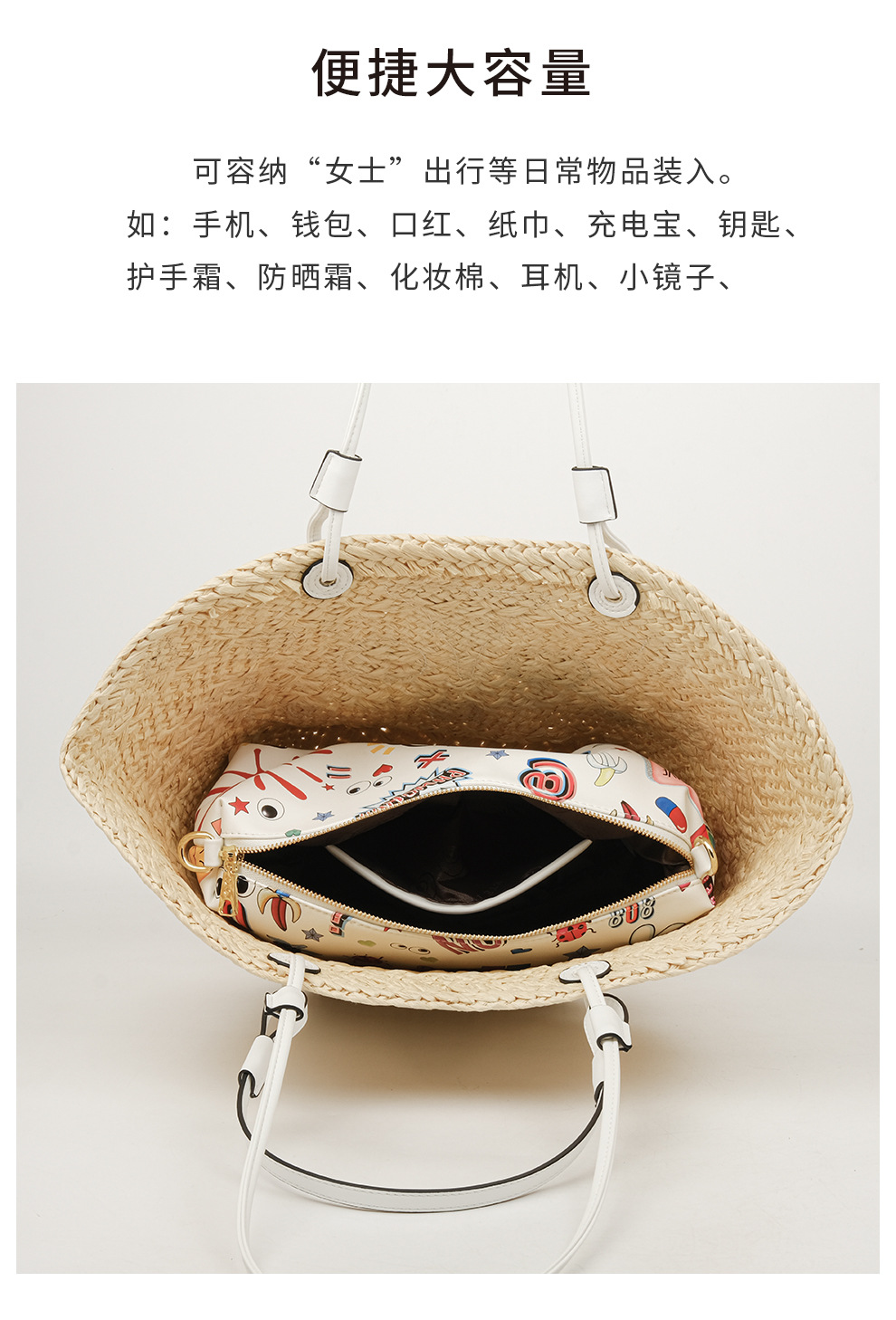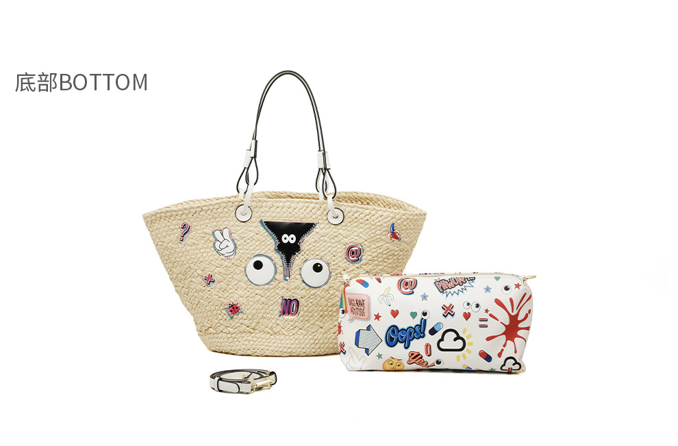 Bolsas de almacenamiento de gran capacidad de tela de paja personalidad de moda bolsas de impresión de dibujos animados en bolsas 2826 #