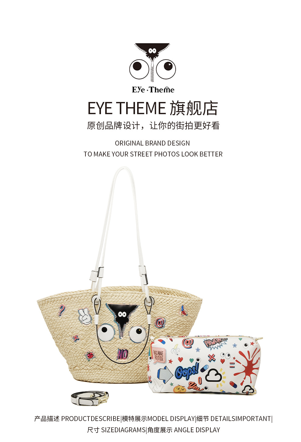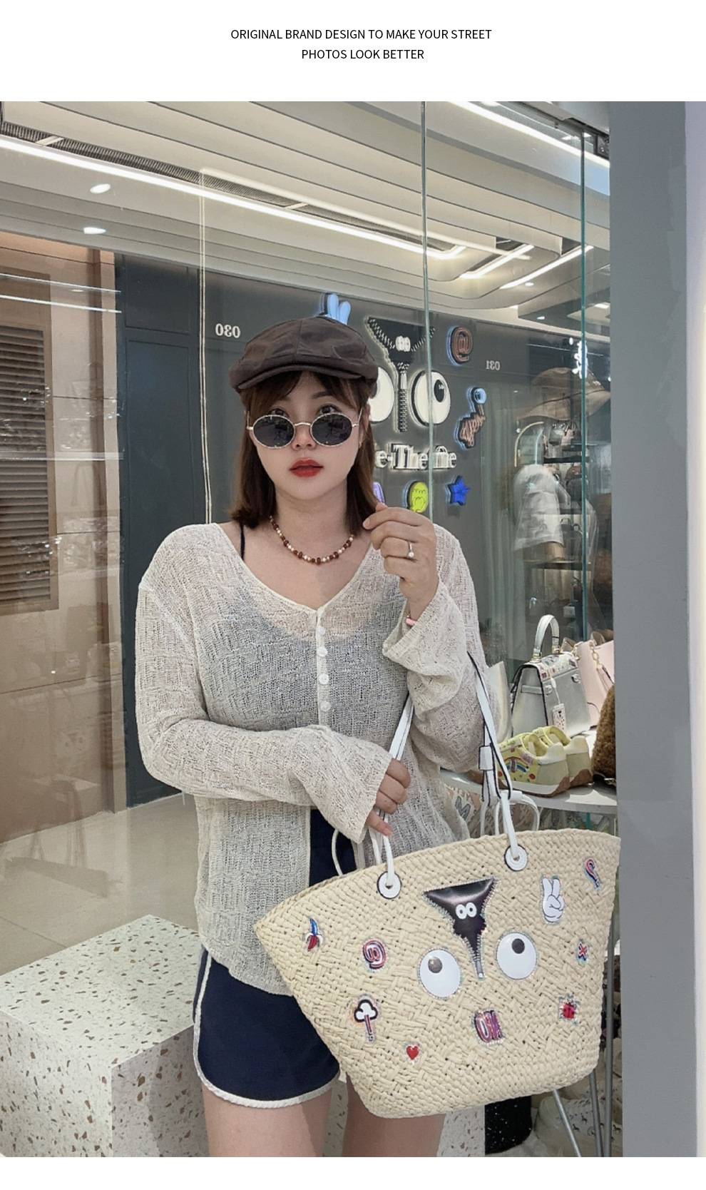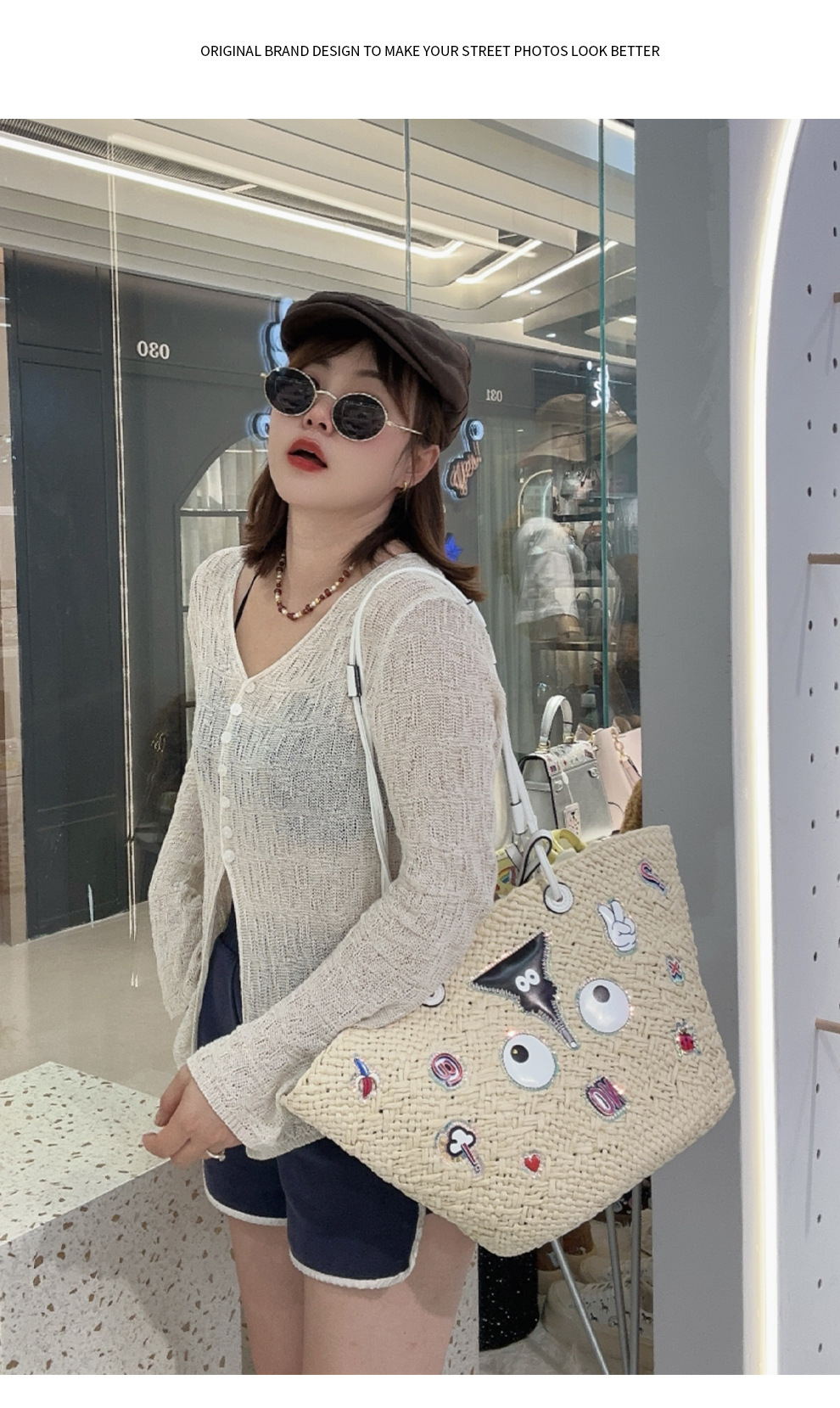 Bolsas de almacenamiento de gran capacidad de tela de paja personalidad de moda bolsas de impresión de dibujos animados en bolsas 2826 #