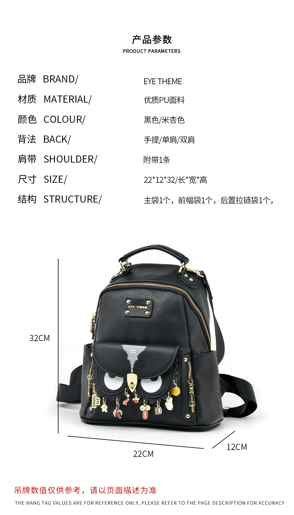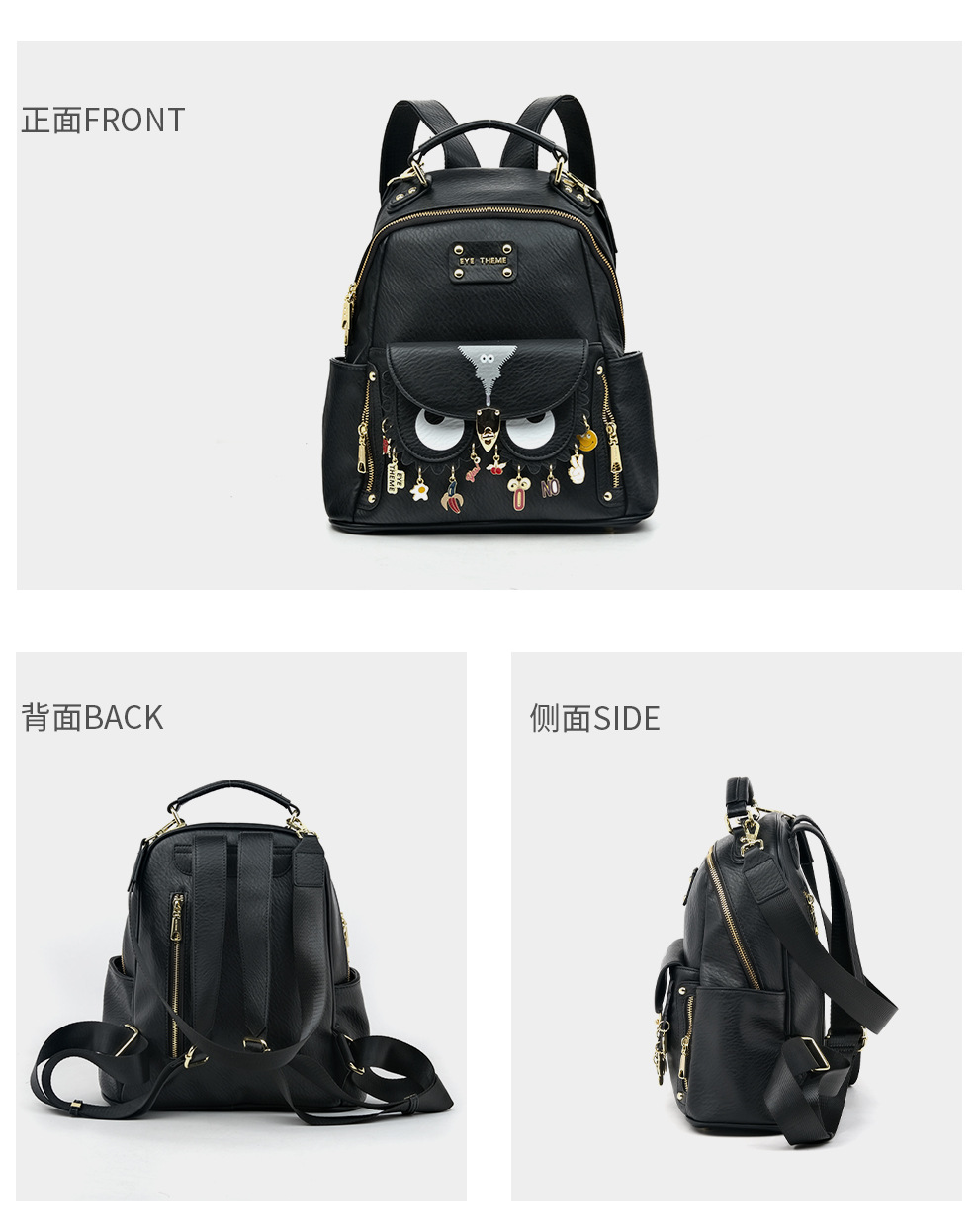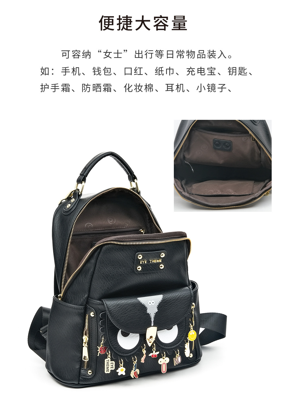 Mujeres de gran capacidad suave PU mochila de viaje práctico sentido de diseño de nicho unisex neutro 2795 #
