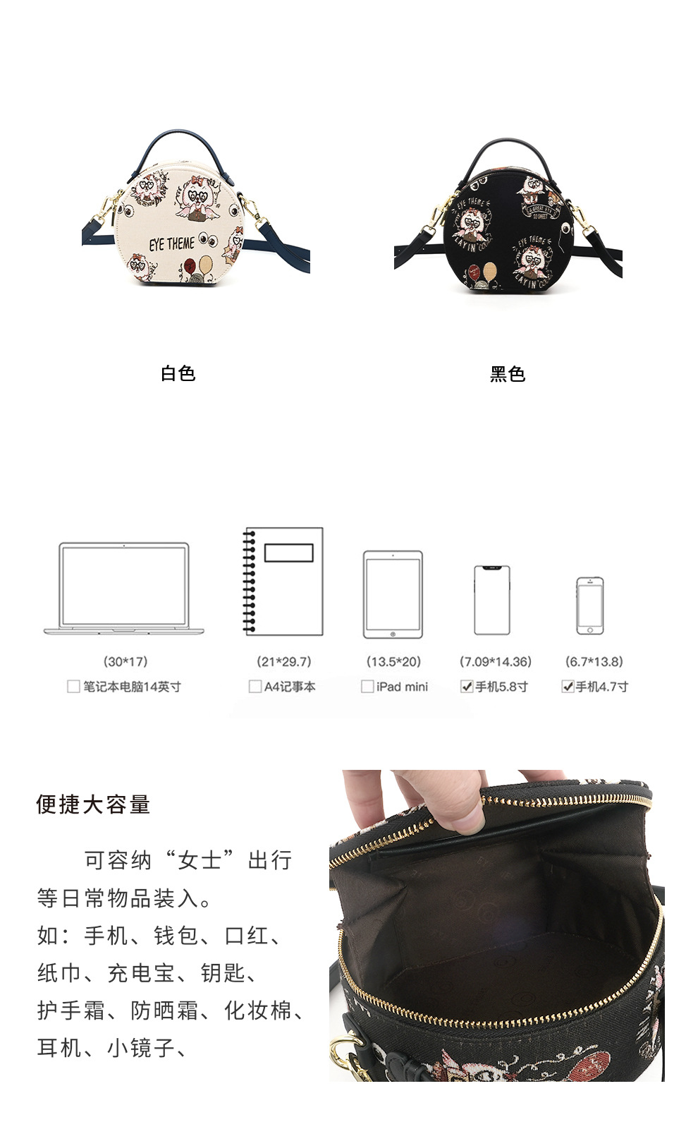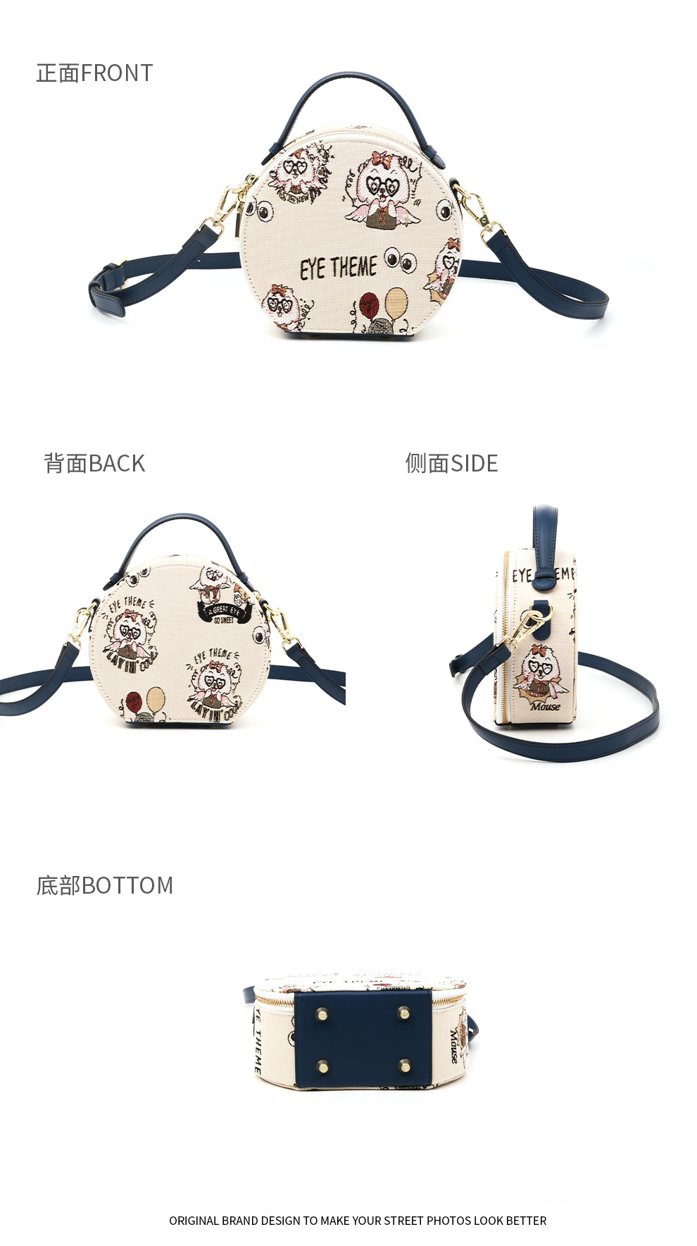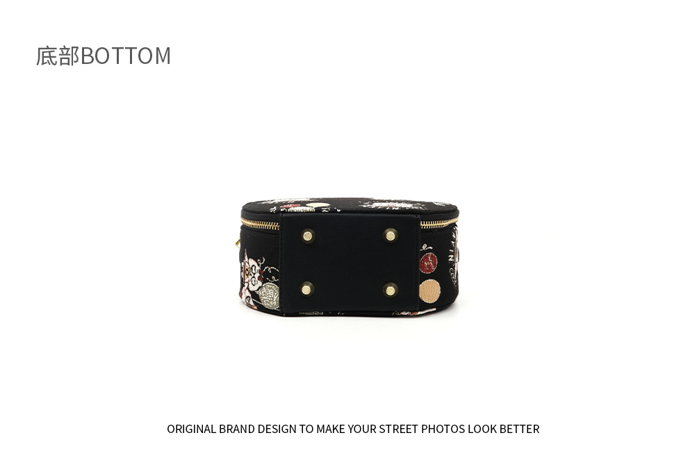 Mujeres bordadas Xiaoyuanbao portátil encantador diseño de cremallera de viento bolso de lona caricatura bolso de dama 2706 #