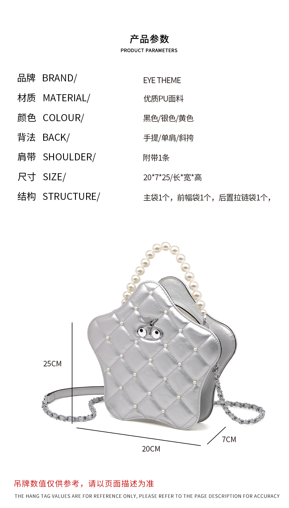 Nuevo bolso de mujer de estilo PU bordado perla de alta gama estereotipado lindo bolso de cadena pequeño bordado de estrellas 2773 #