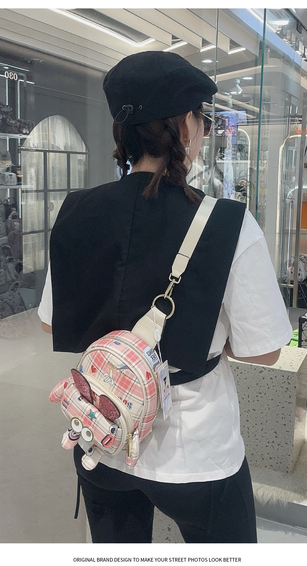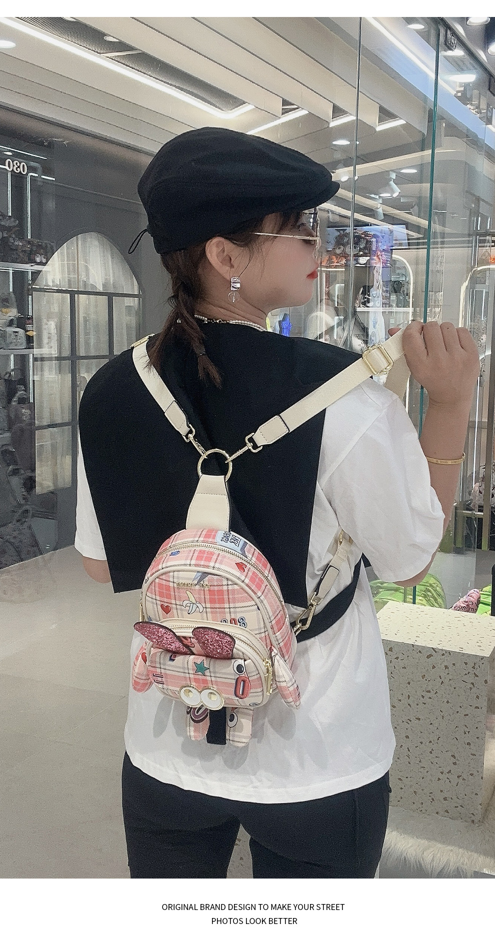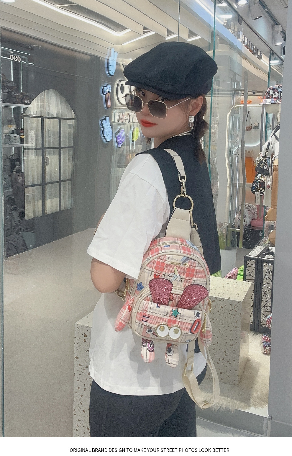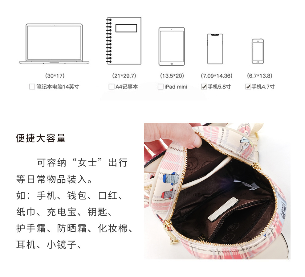 Mujer multipropósito diseño rosa mochila mini encantadora impresión bolsa de pecho cambiante 2688 #