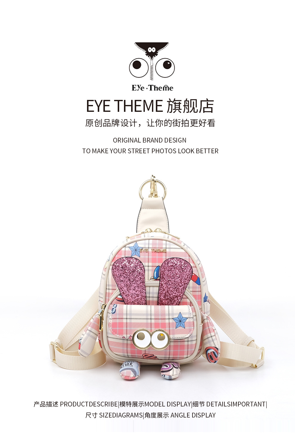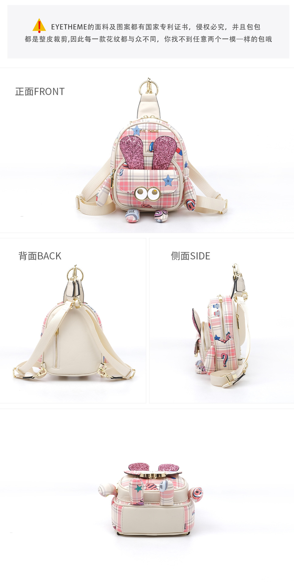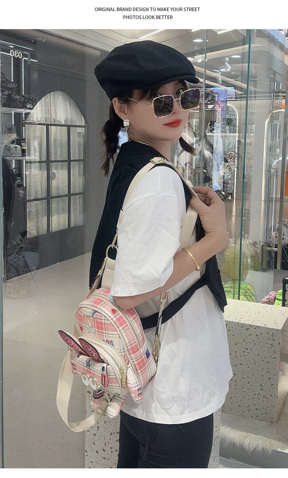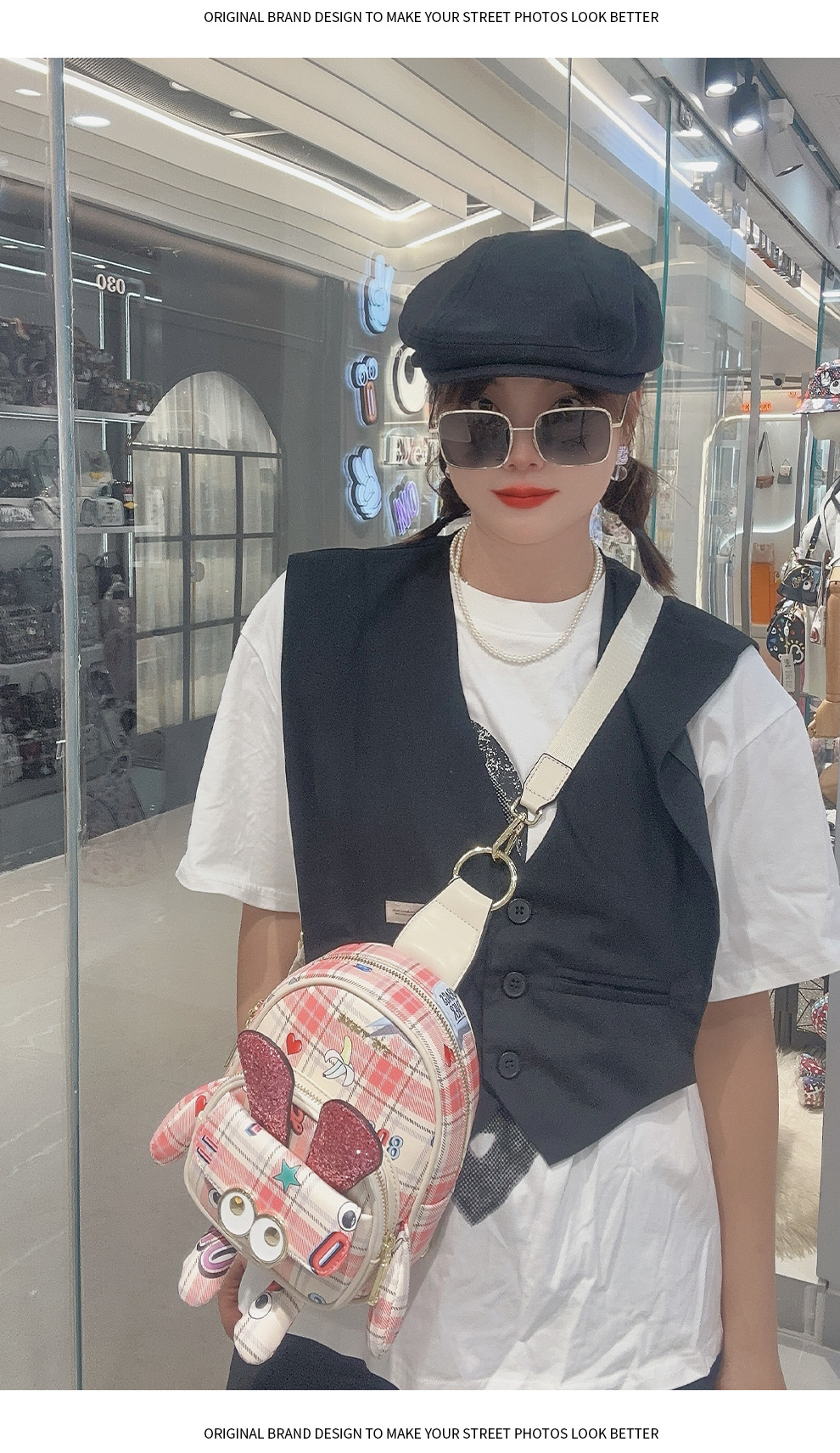 Mujer multipropósito diseño rosa mochila mini encantadora impresión bolsa de pecho cambiante 2688 #