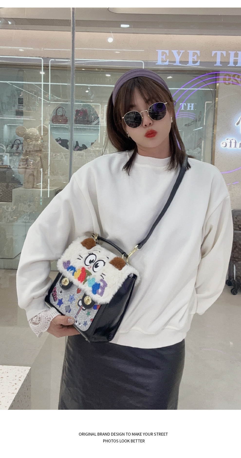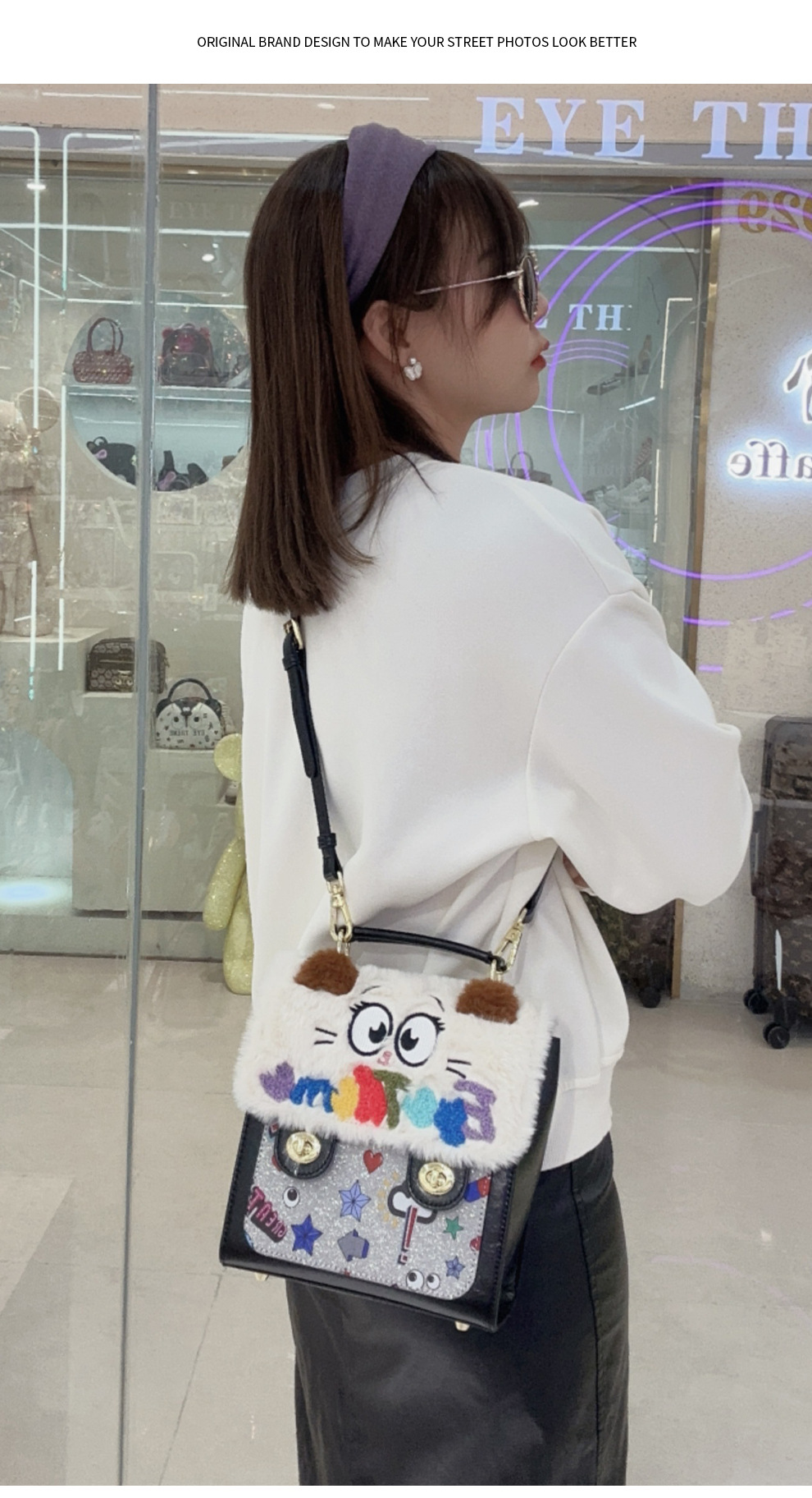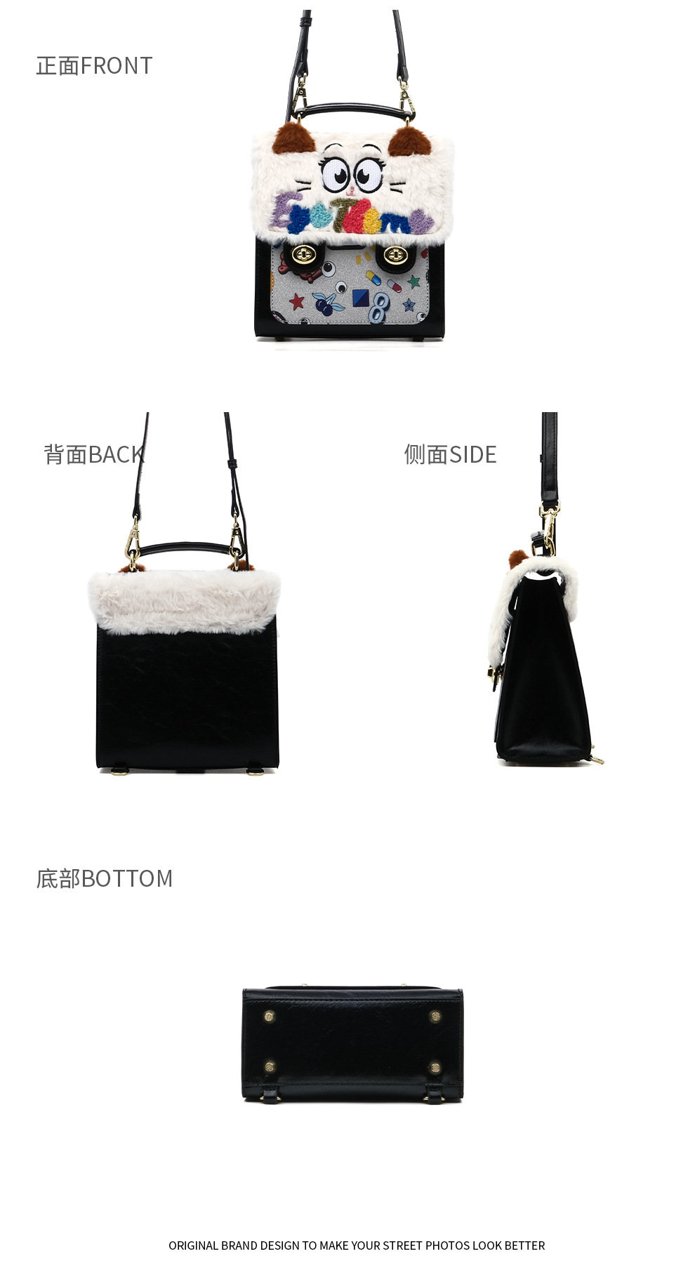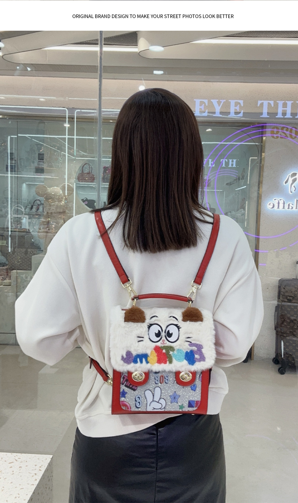 Otoño y invierno de peluche bordado lindo bolso cuadrado damas con tapa de flip color contraste diseño nicho mochila 2756 #