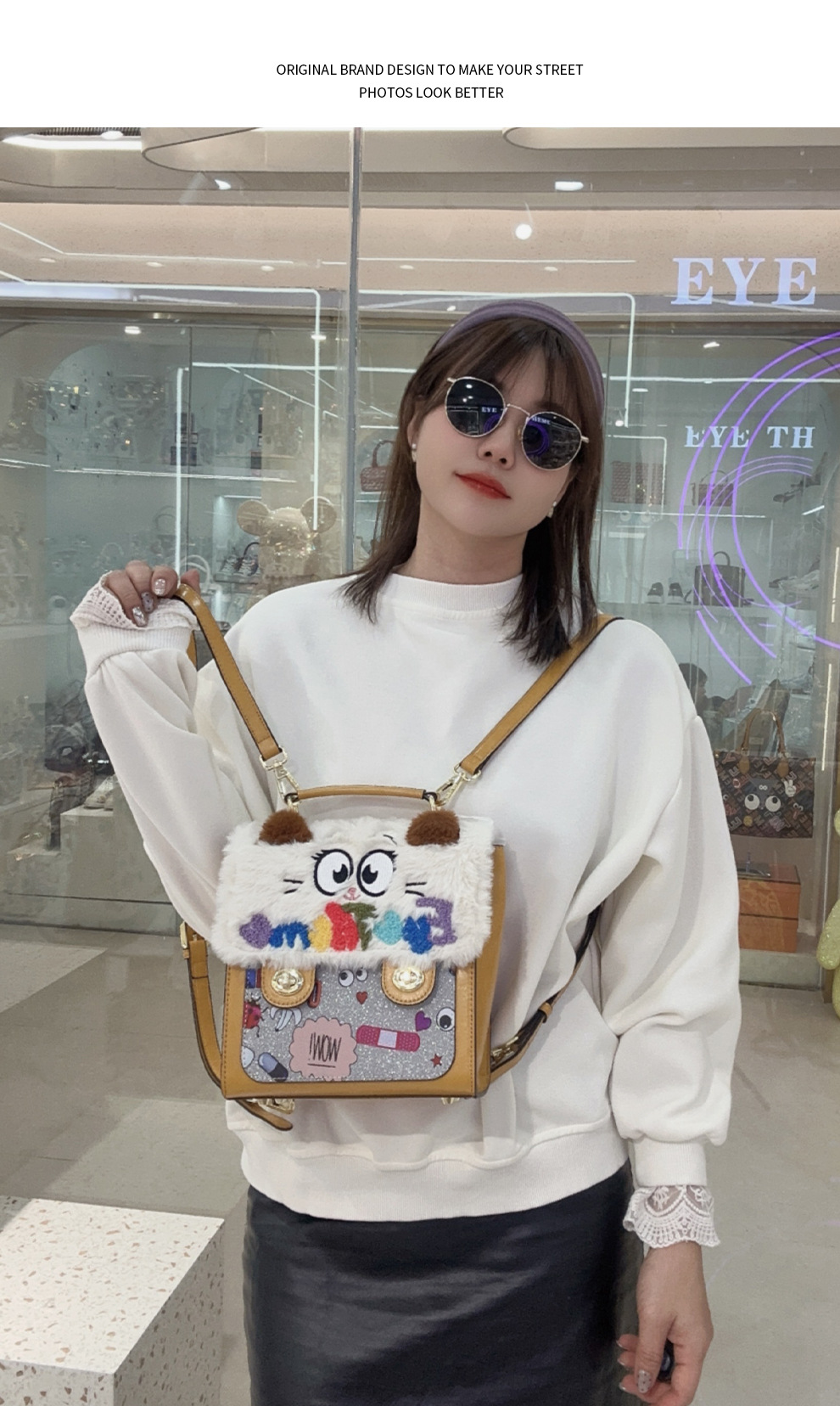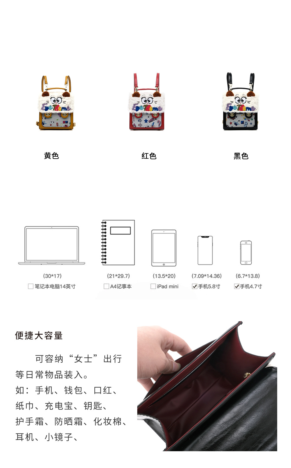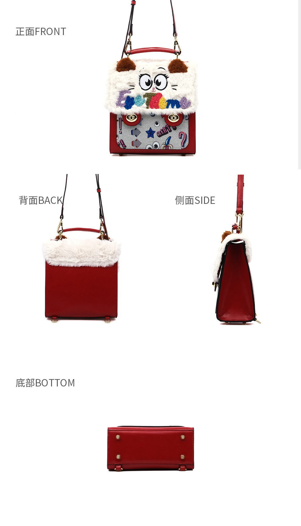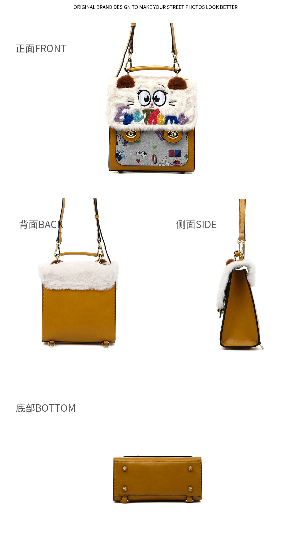 Otoño y invierno de peluche bordado lindo bolso cuadrado damas con tapa de flip color contraste diseño nicho mochila 2756 #