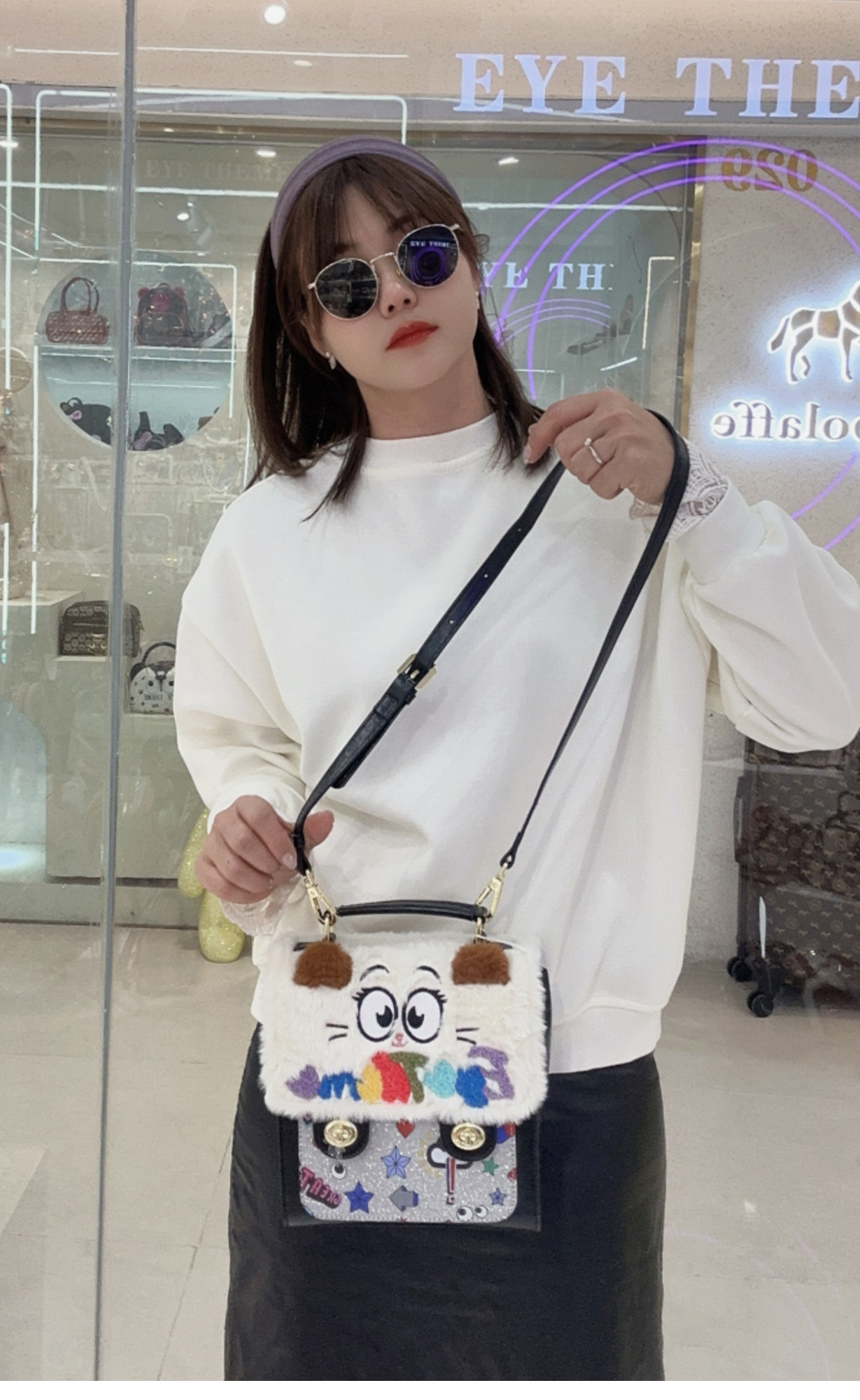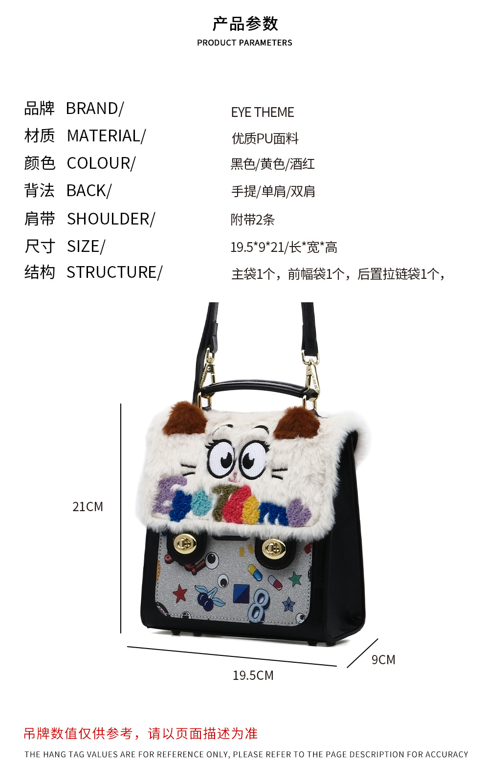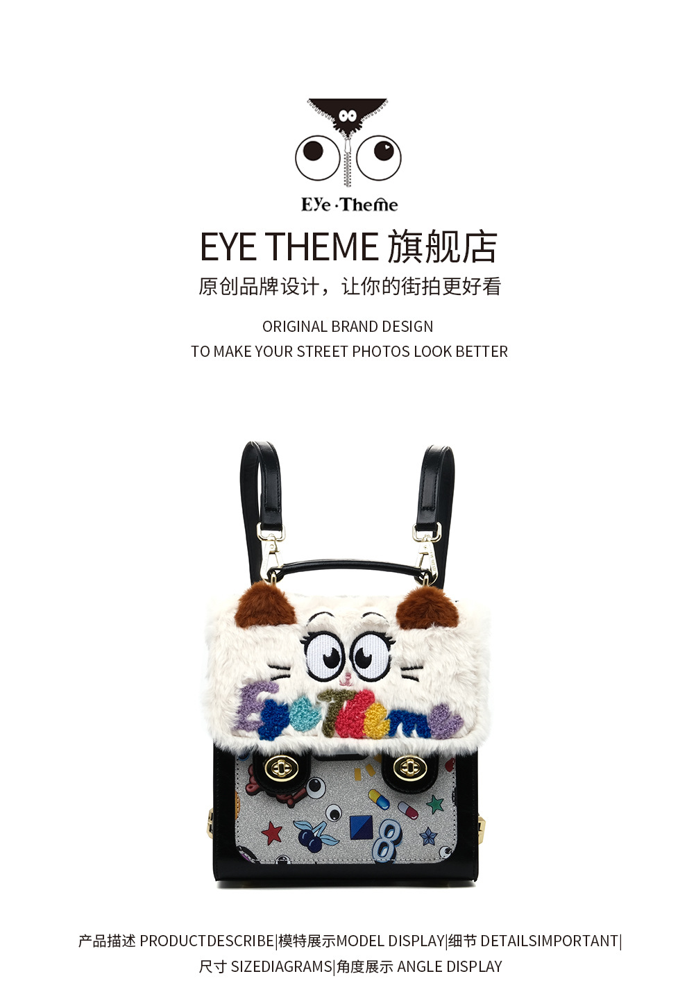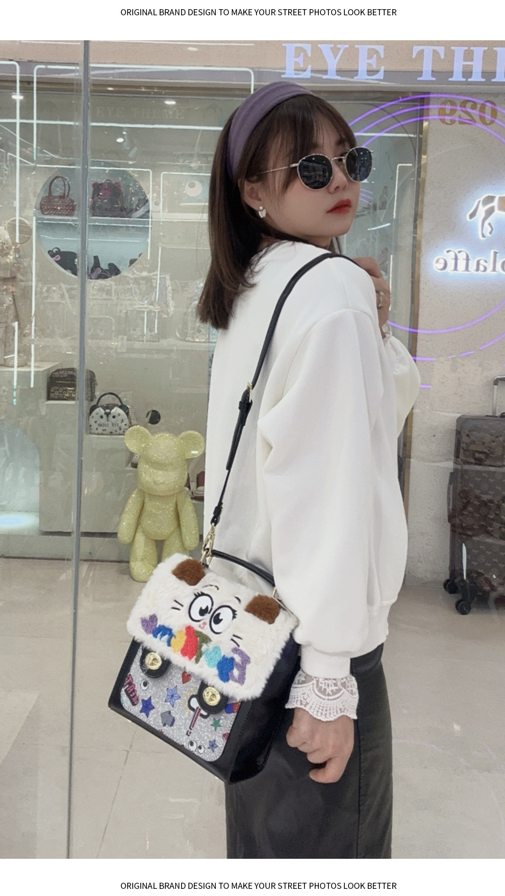 Otoño y invierno de peluche bordado lindo bolso cuadrado damas con tapa de flip color contraste diseño nicho mochila 2756 #