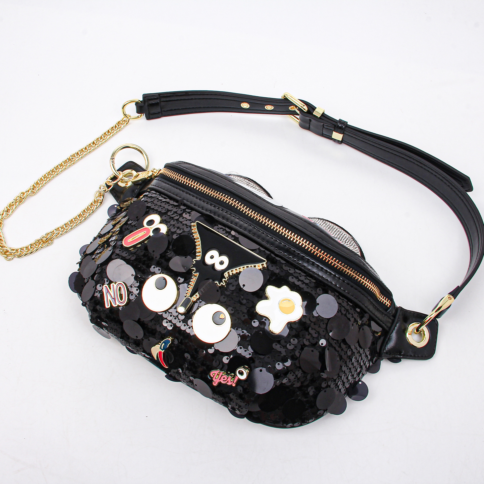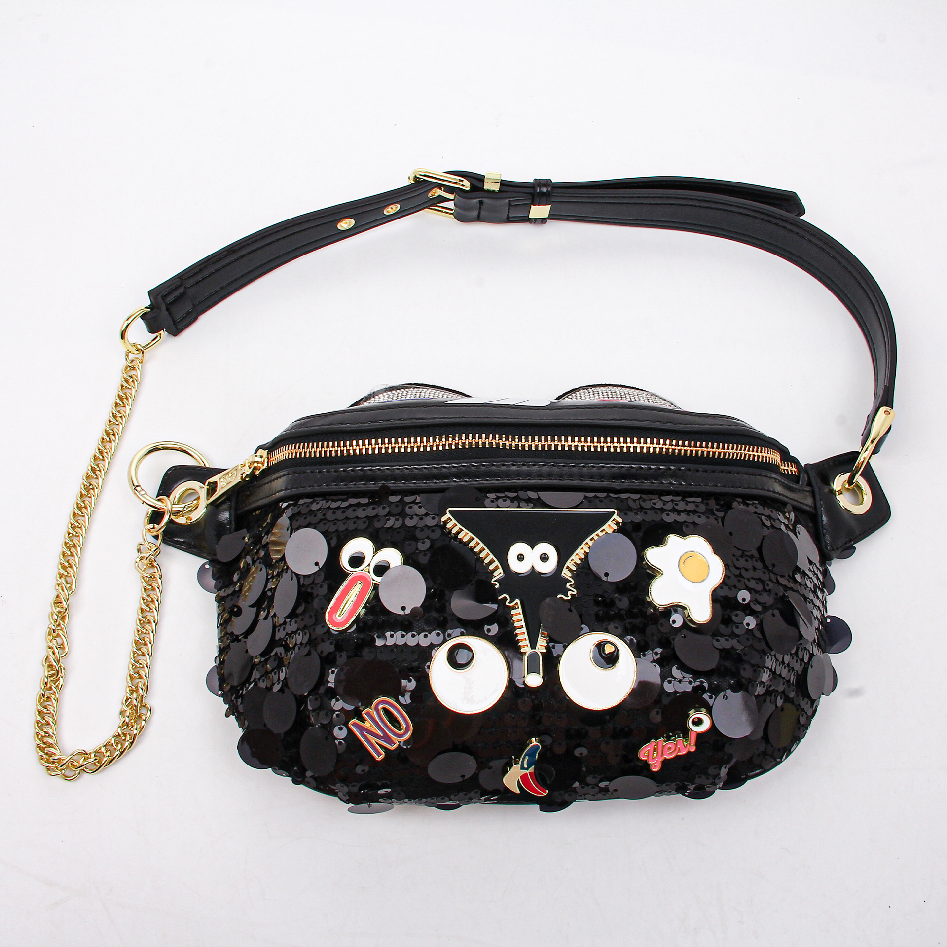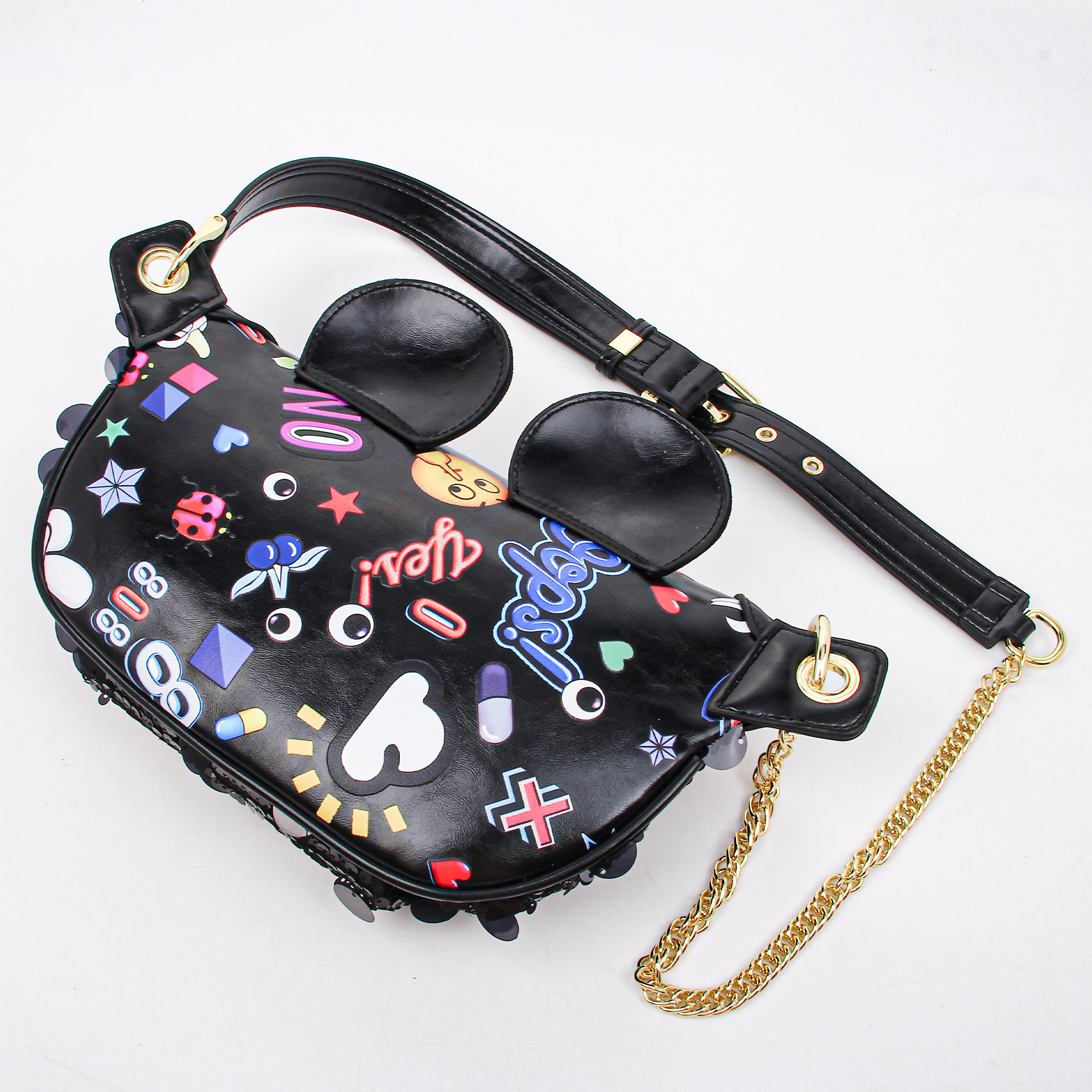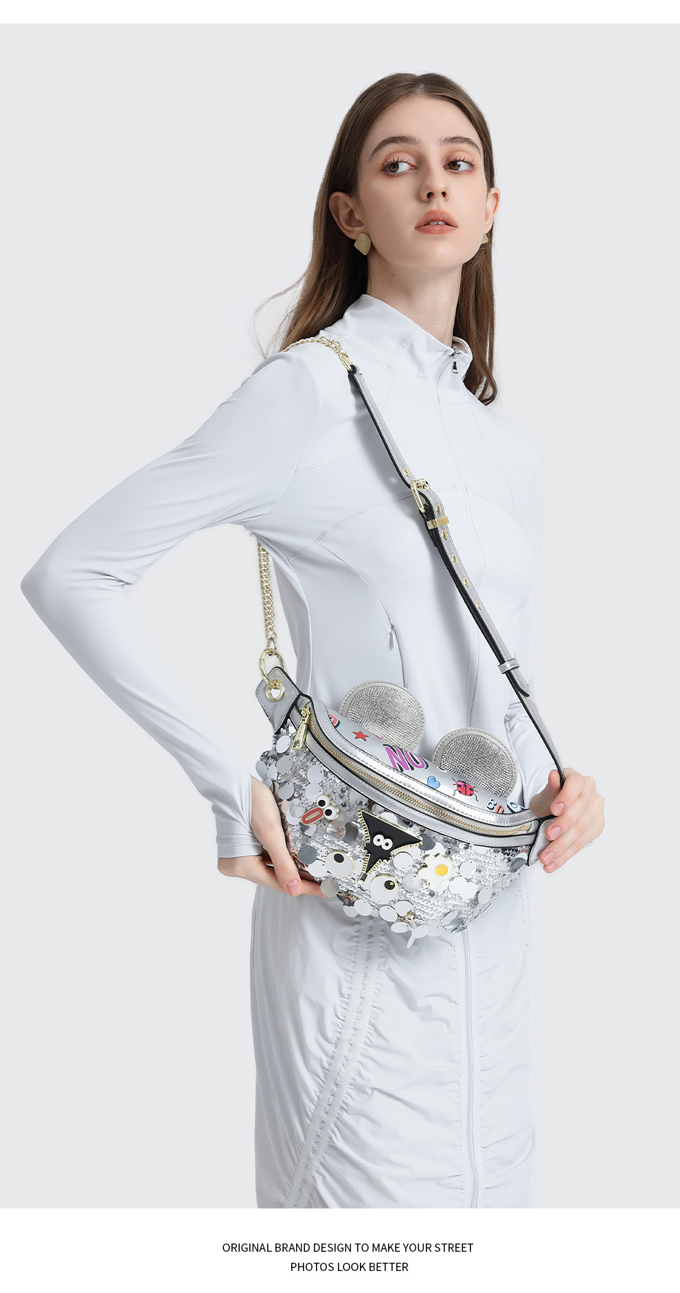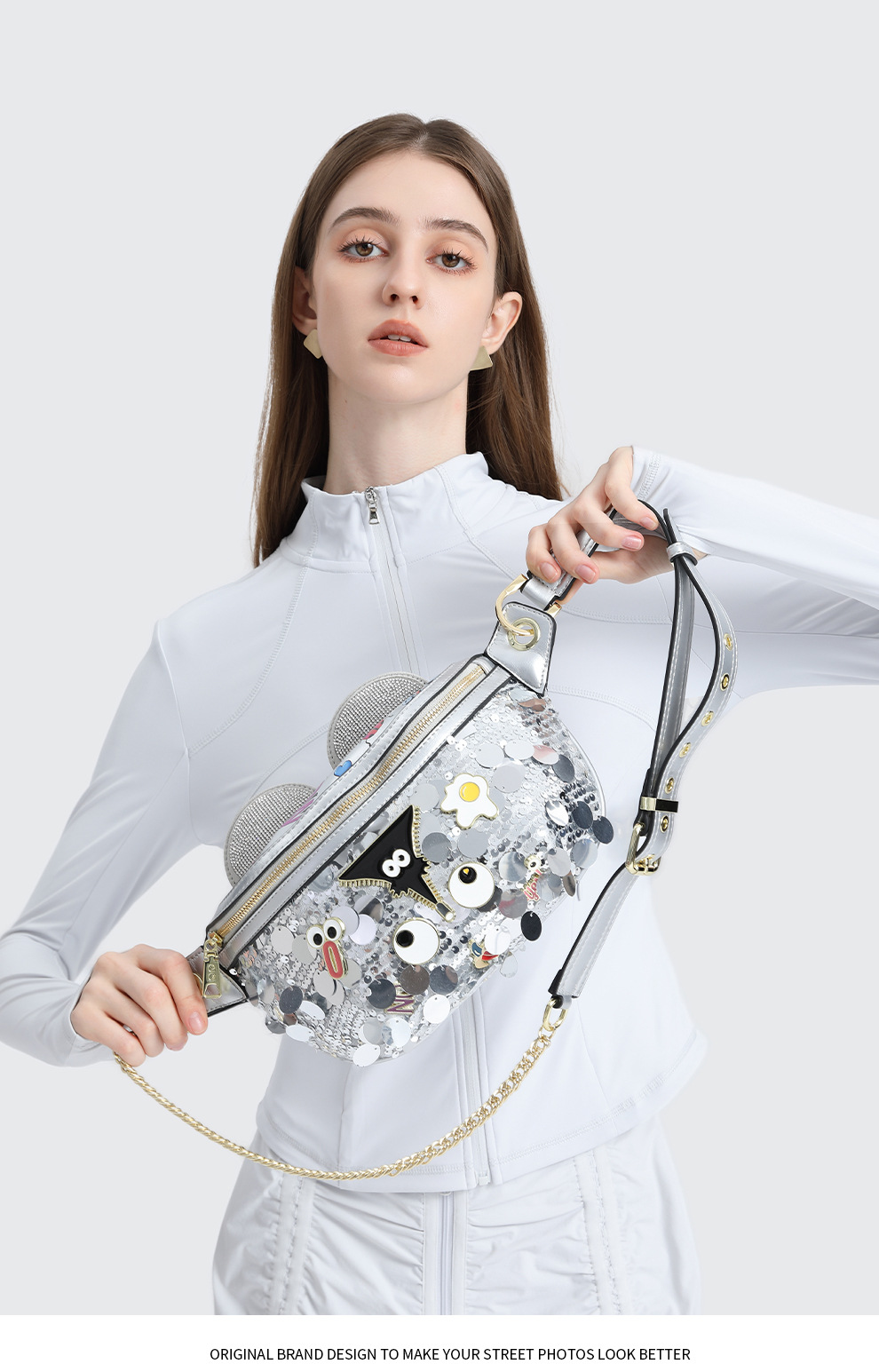 Bolso de pecho de cadena de tendencia unisex para mujer Bolso de impresión de un solo hombro con diseño de lenta de dibujos animados lindo 2607 #