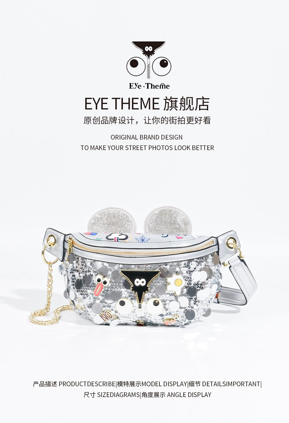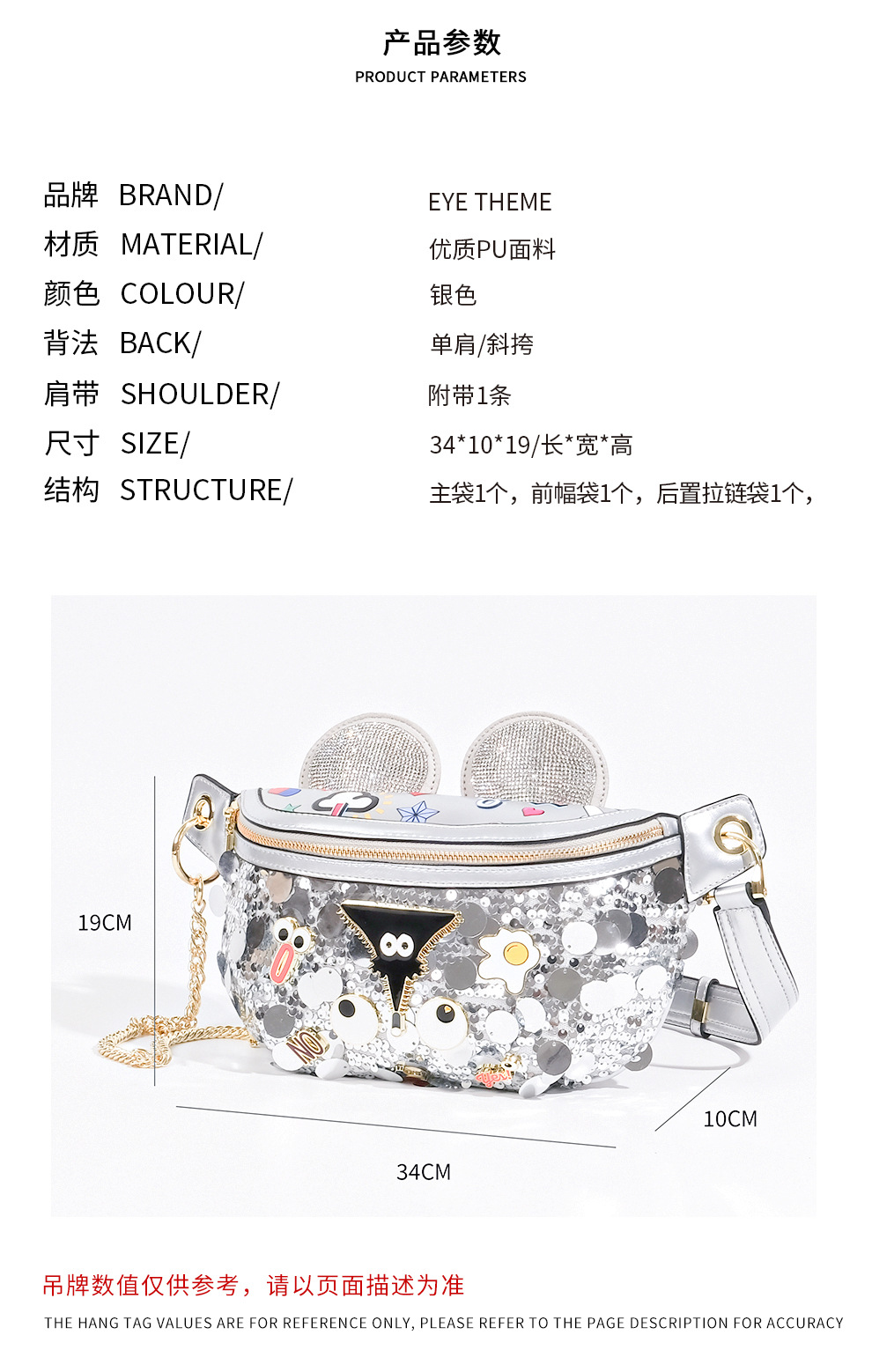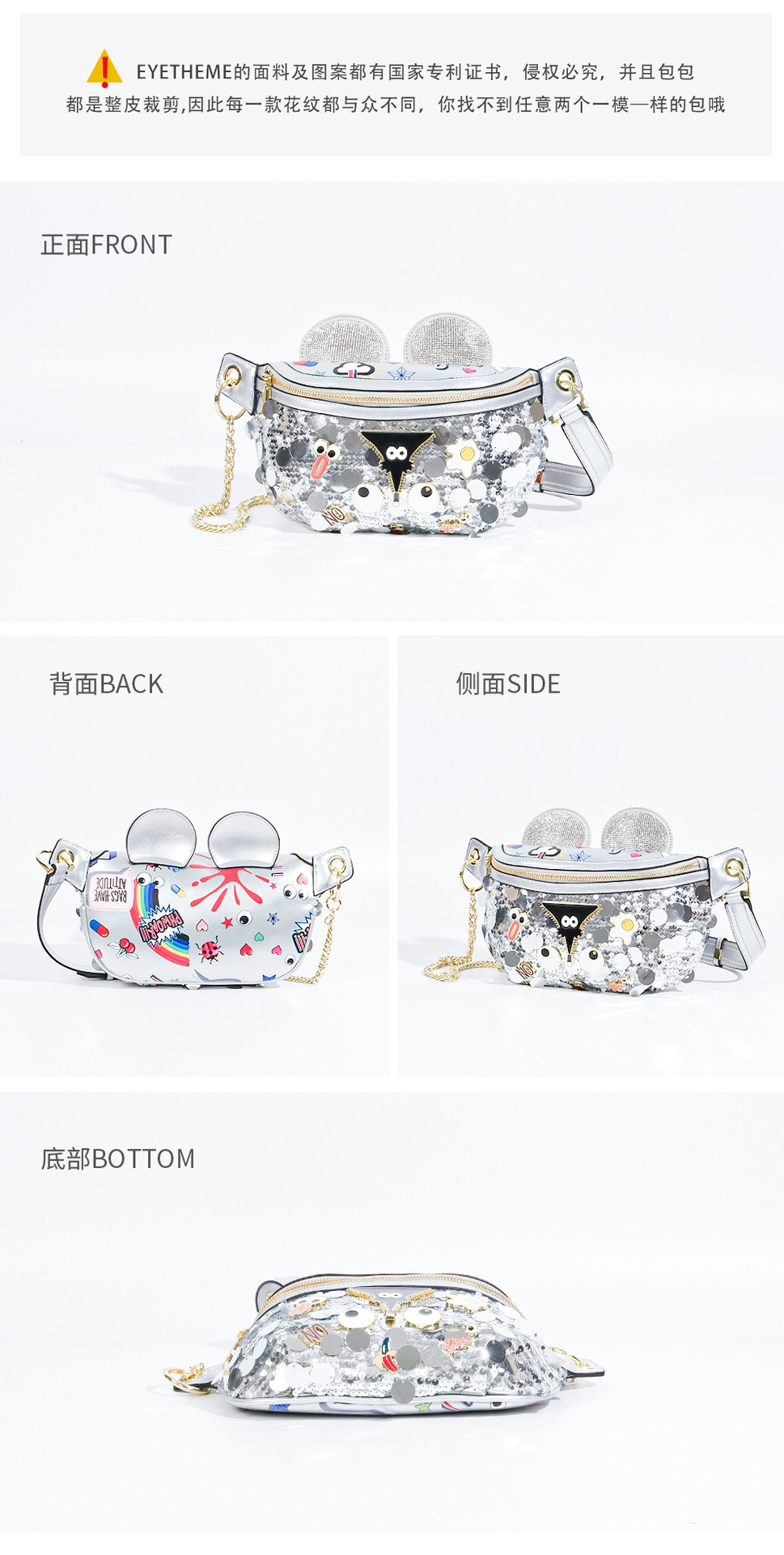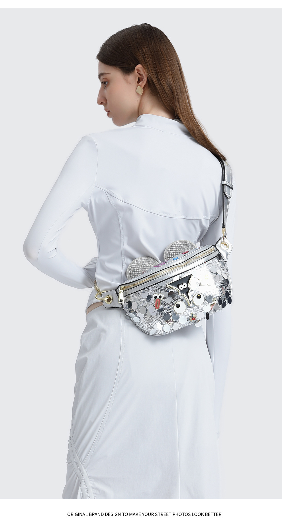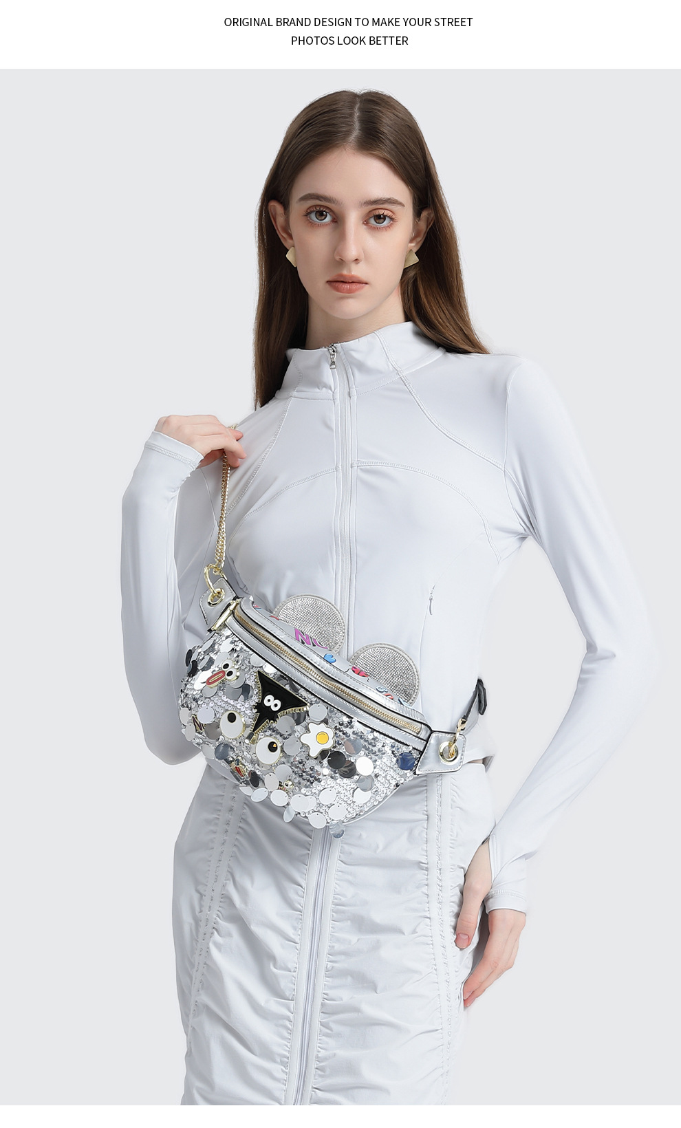 Bolso de pecho de cadena de tendencia unisex para mujer Bolso de impresión de un solo hombro con diseño de lenta de dibujos animados lindo 2607 #