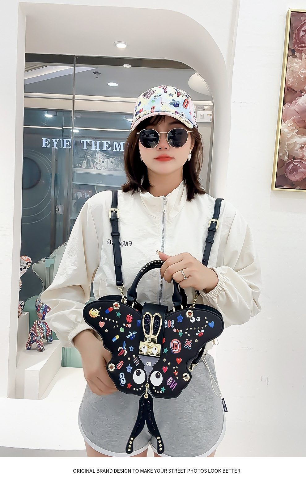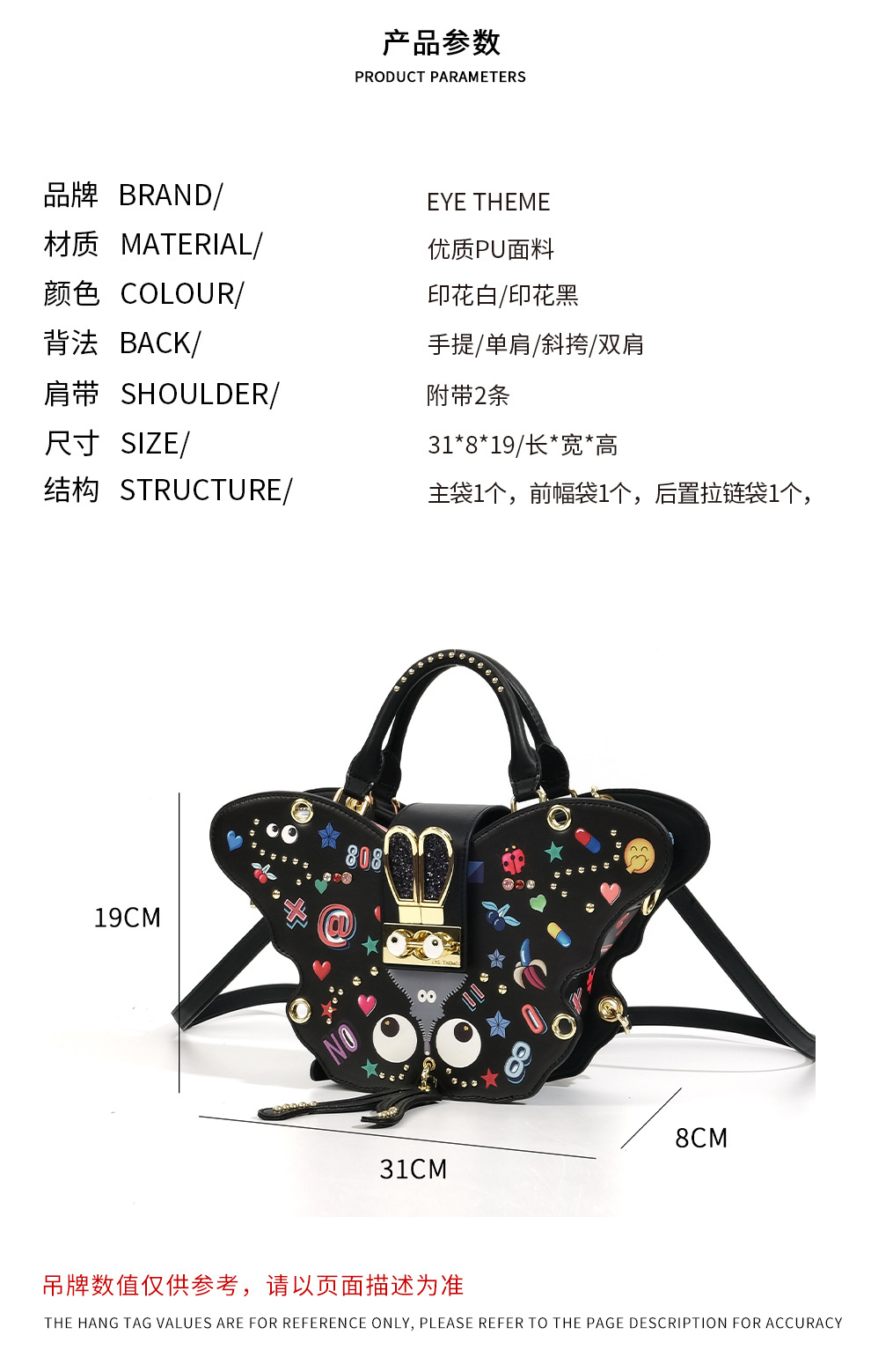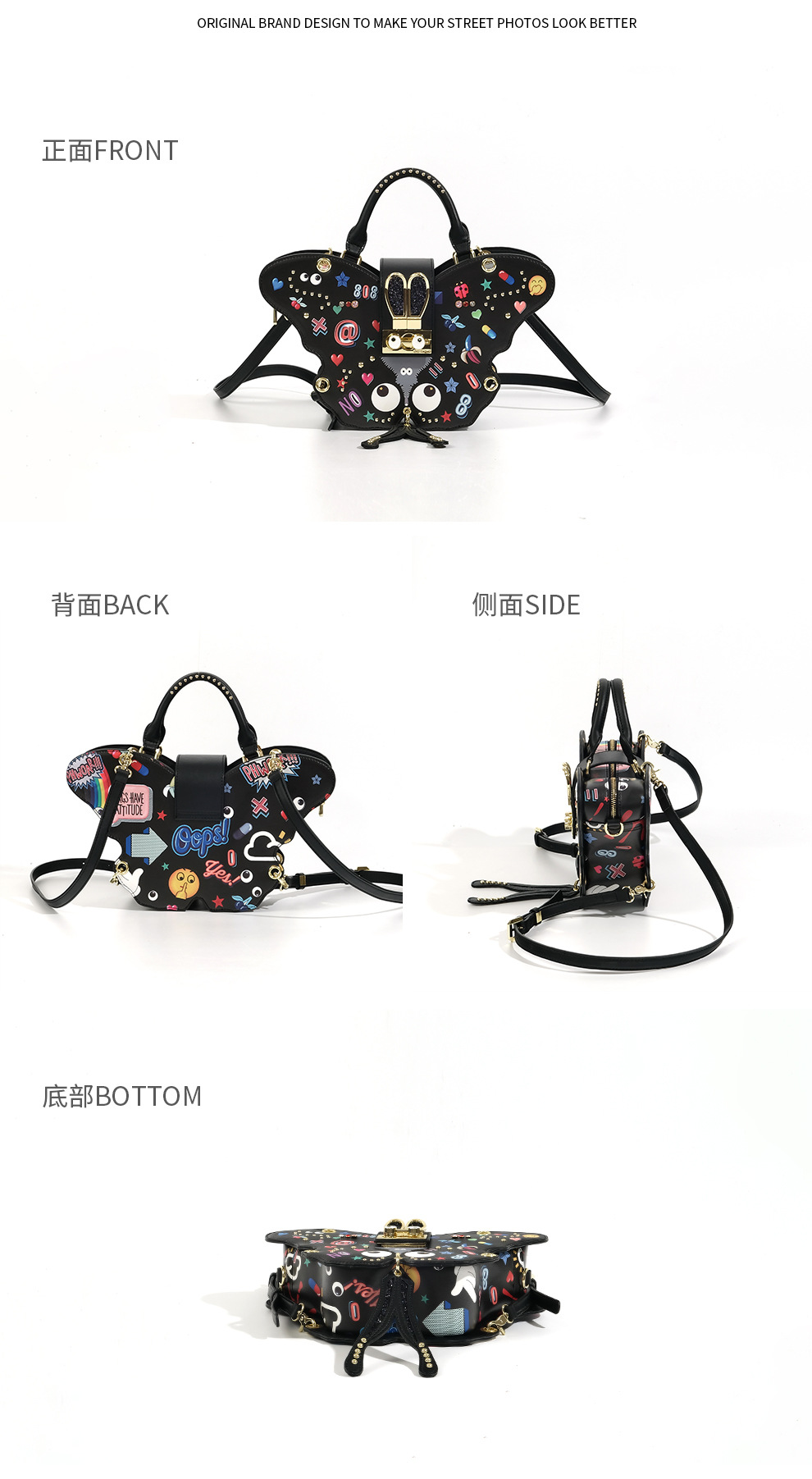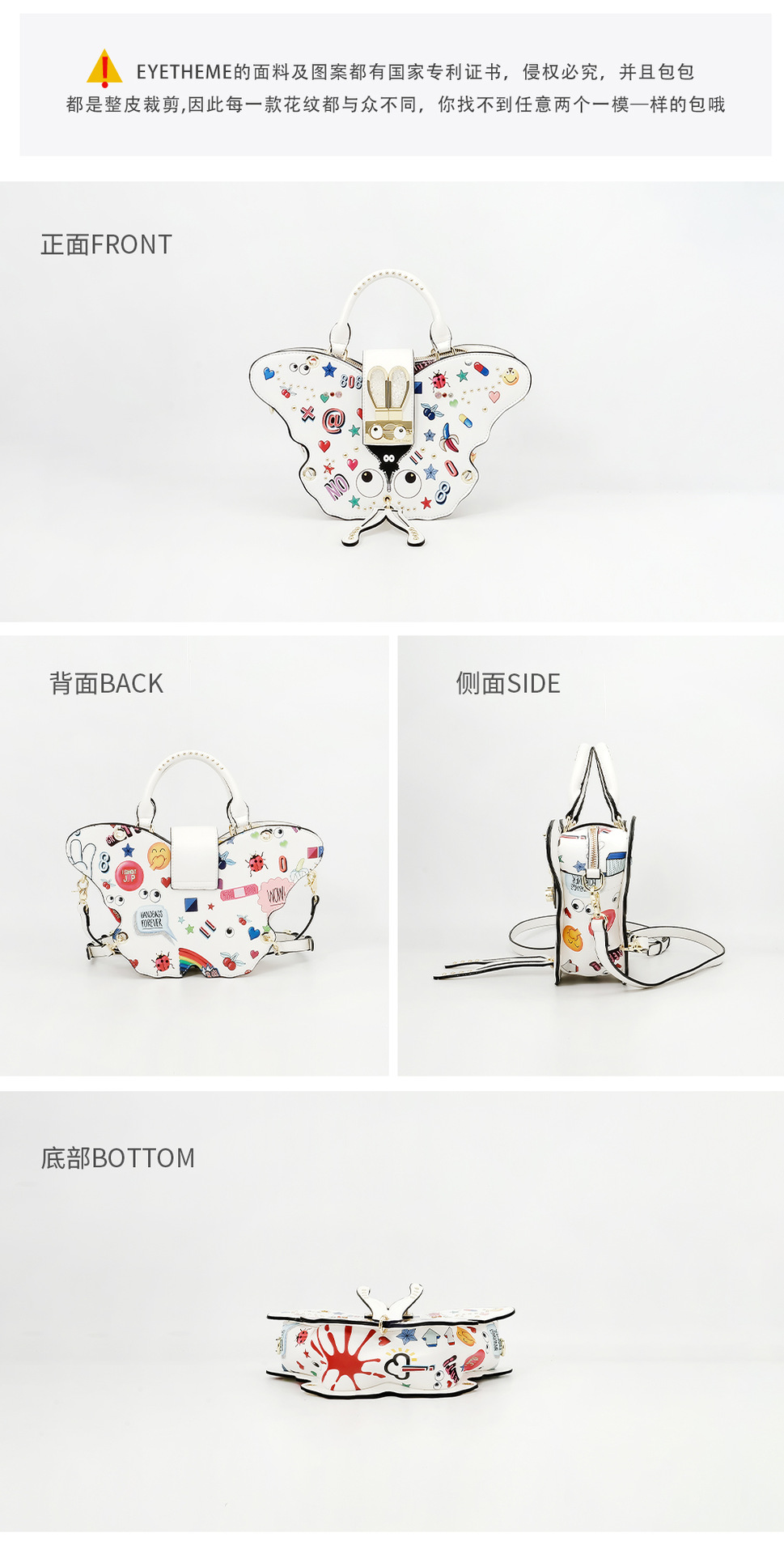 Diseño noble de mujer mariposa impresa bolsa de bloqueo diosa bolso de doble clic multipropósito 2642 #