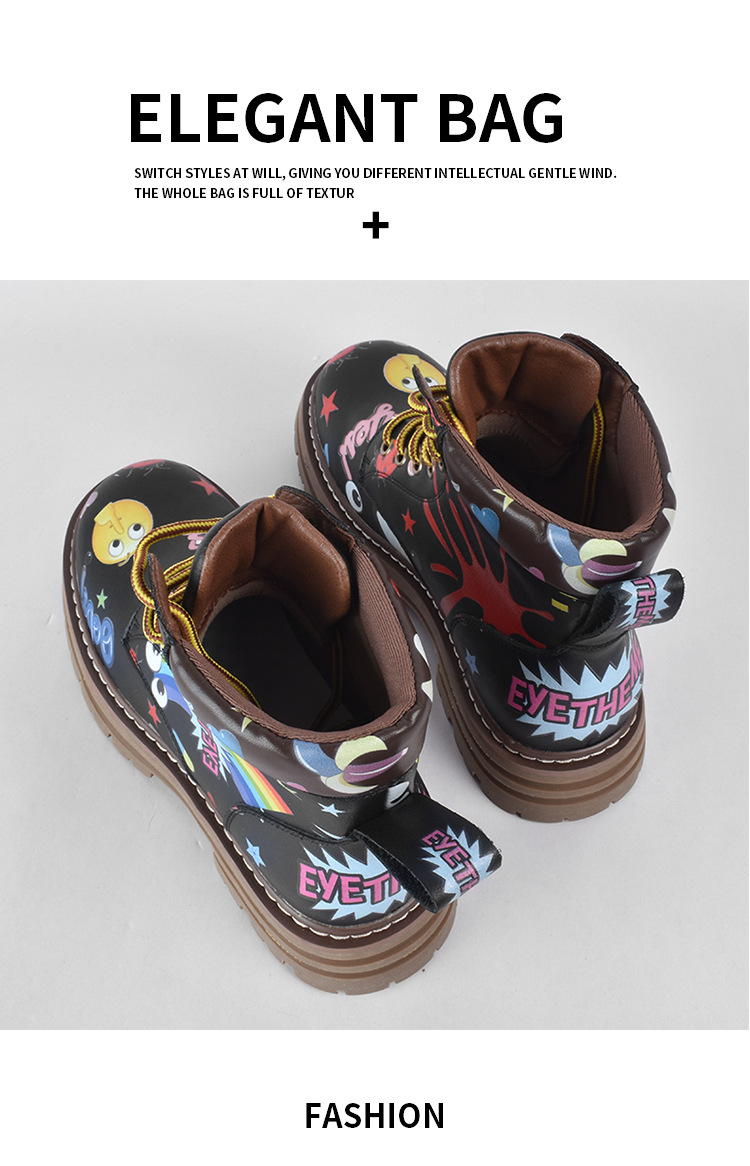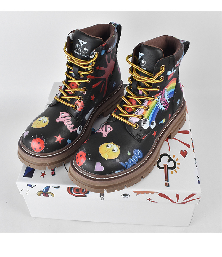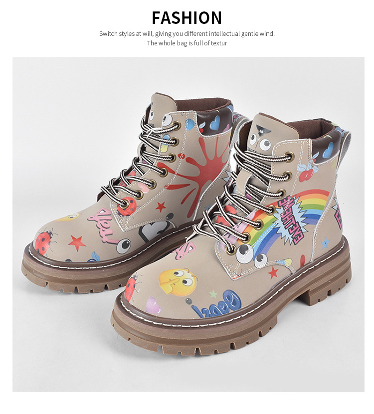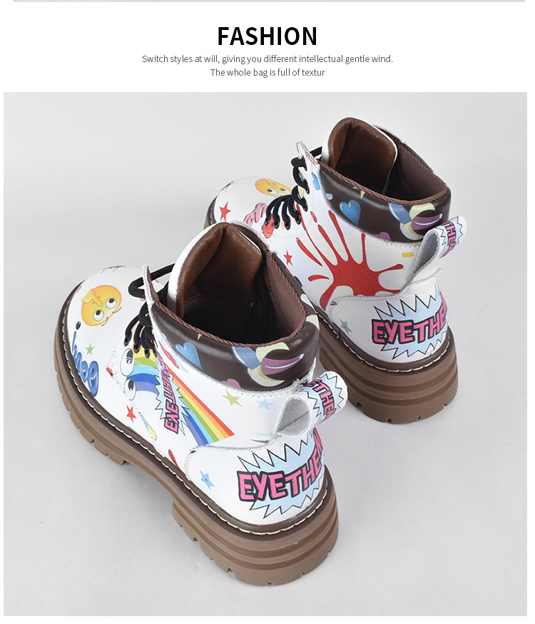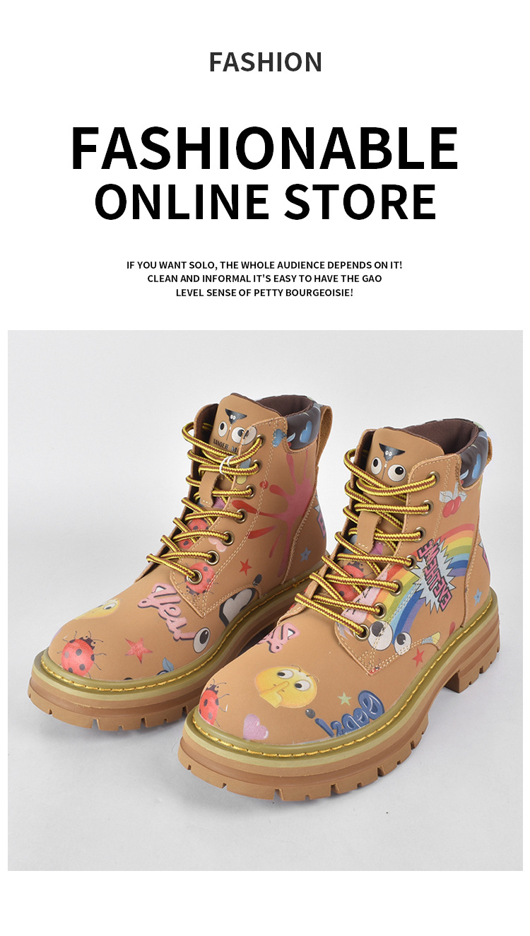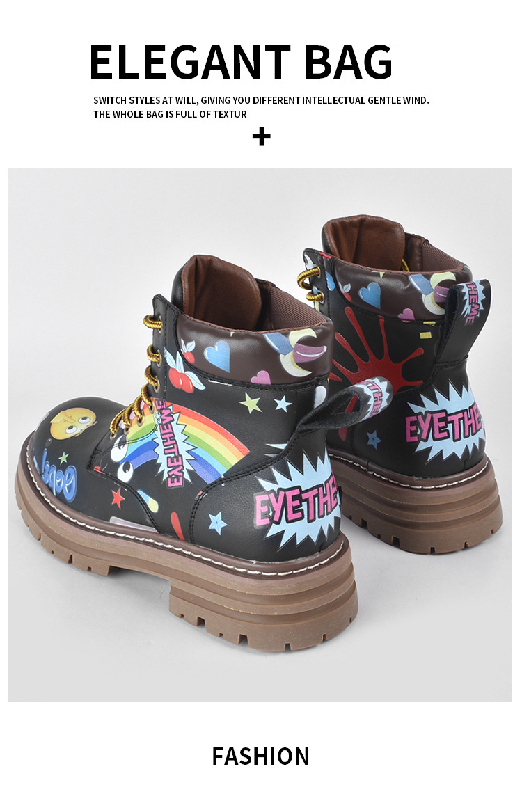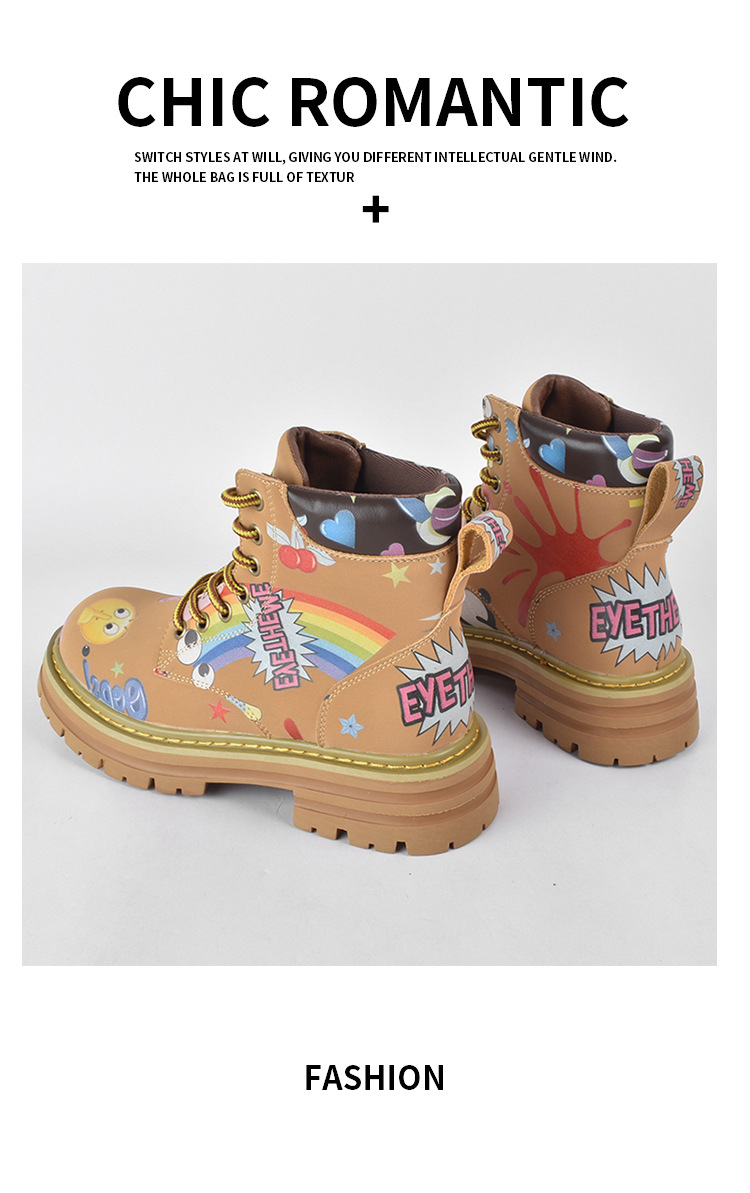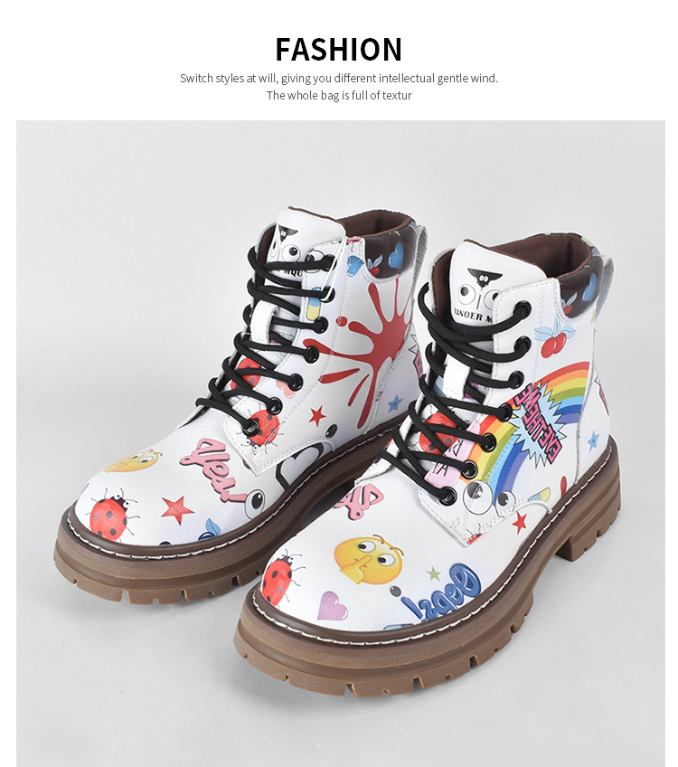 Zapatos altos de las mujeres europeas y americanas Martin botas 2023 nuevo nicho graffiti Otoño e Invierno zapatos casuales suela gruesa altura creciente botines