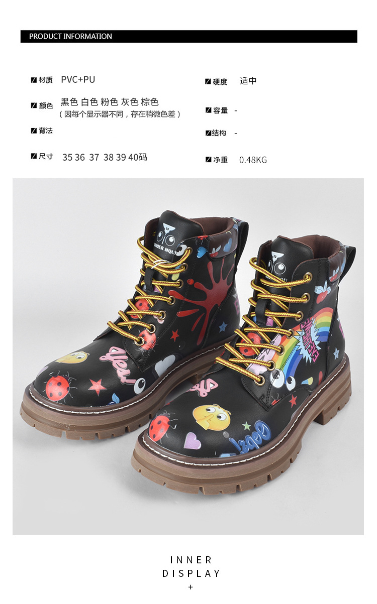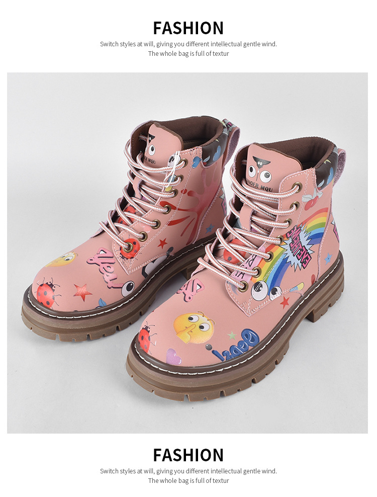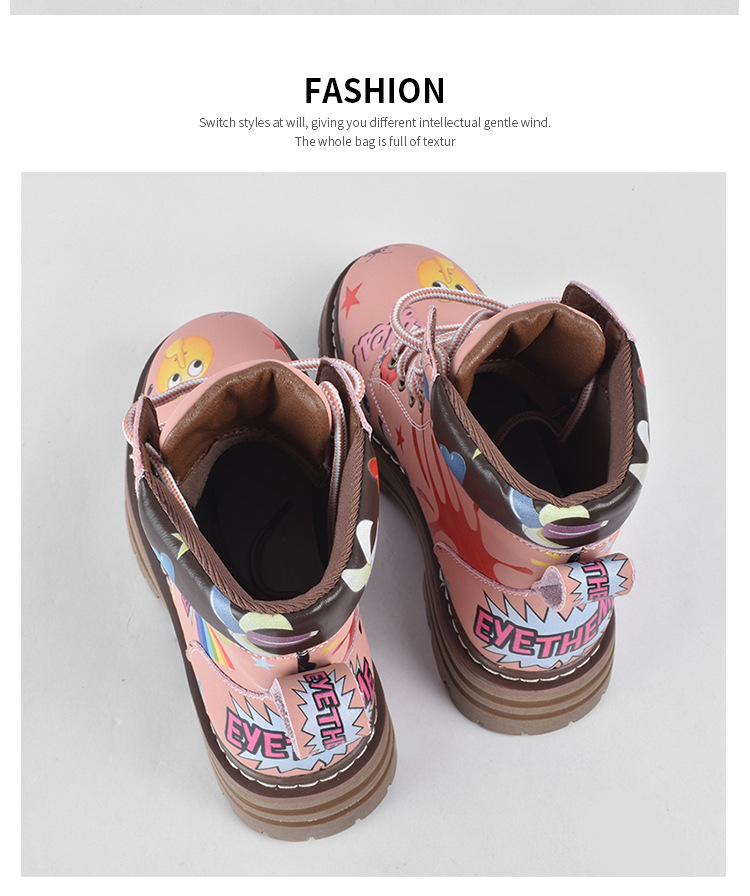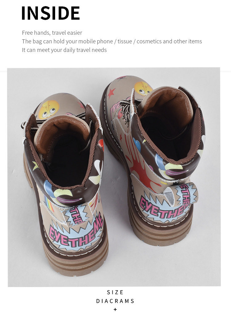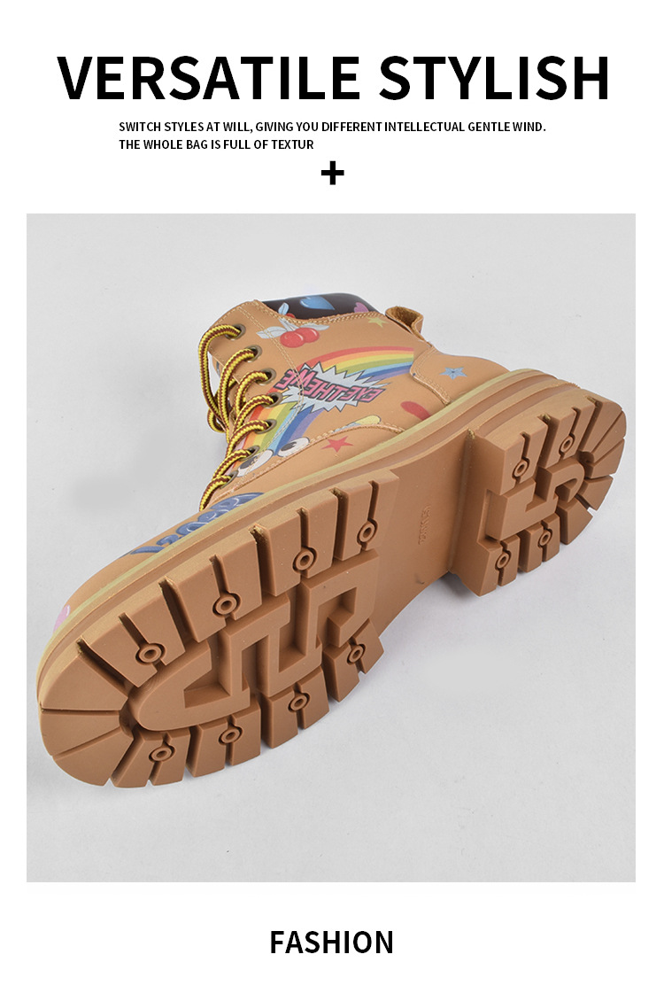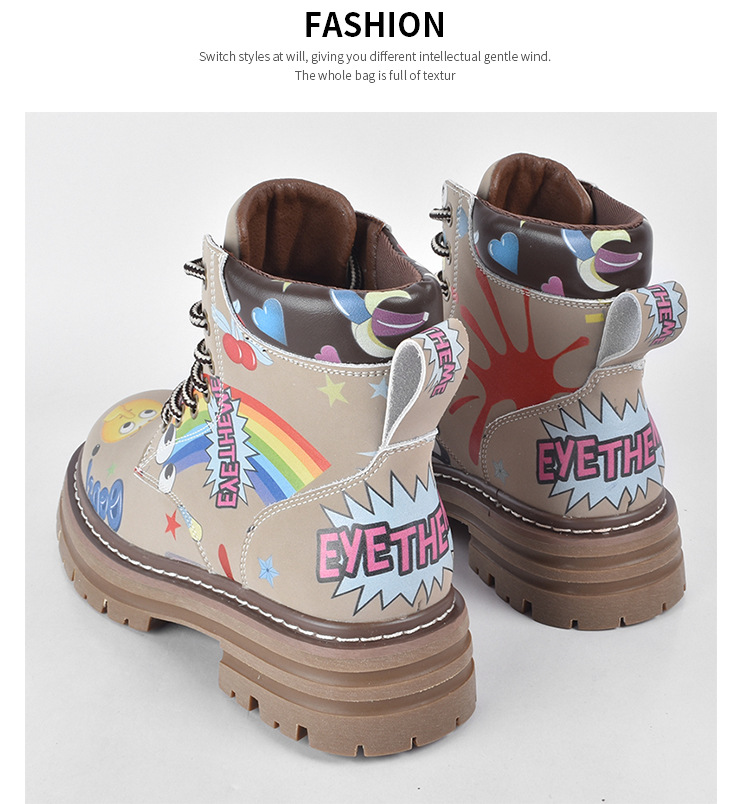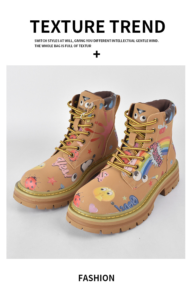 Zapatos altos de las mujeres europeas y americanas Martin botas 2023 nuevo nicho graffiti Otoño e Invierno zapatos casuales suela gruesa altura creciente botines