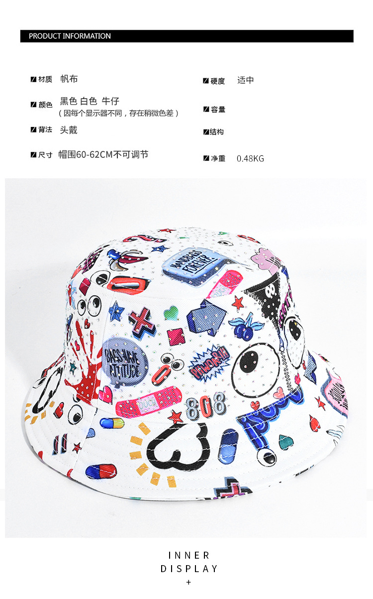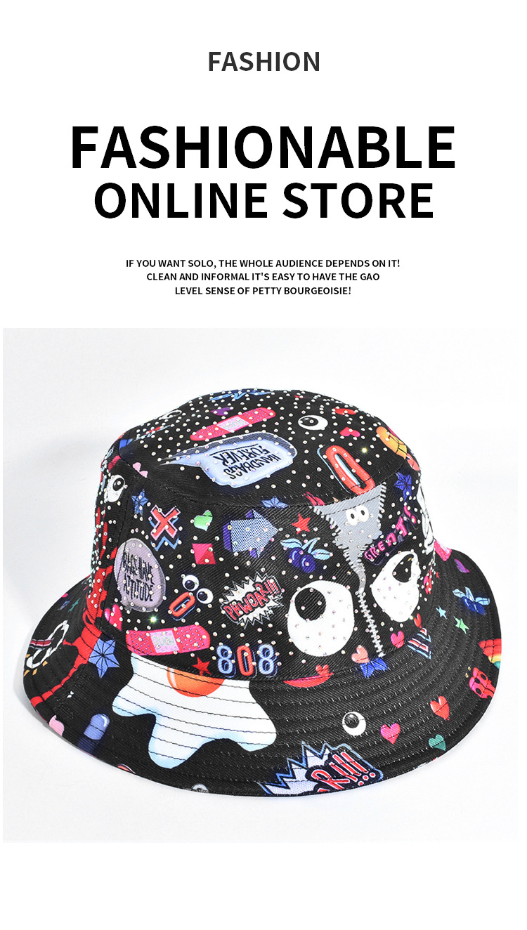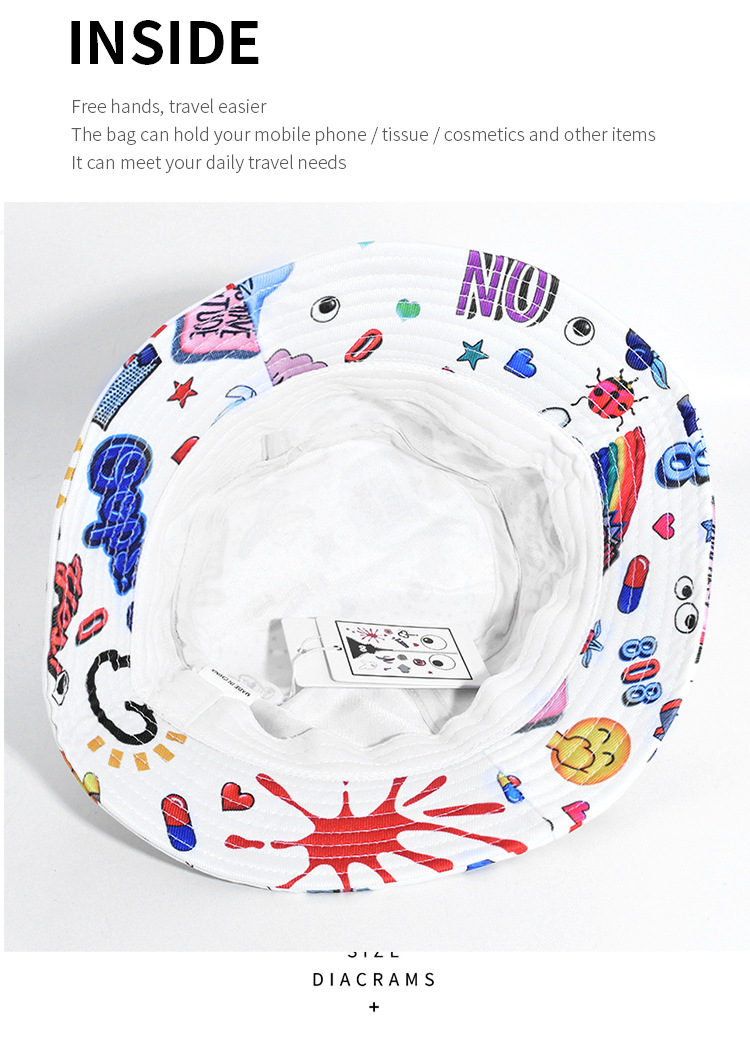 Impreso graffiti sombrero femenino verano protección solar UV pescador sombrero cara cubierta sol sombrero grande