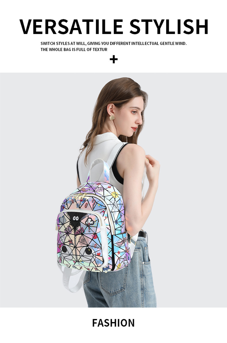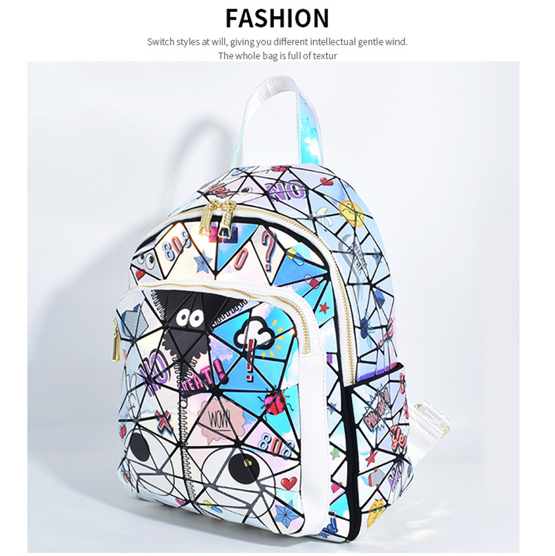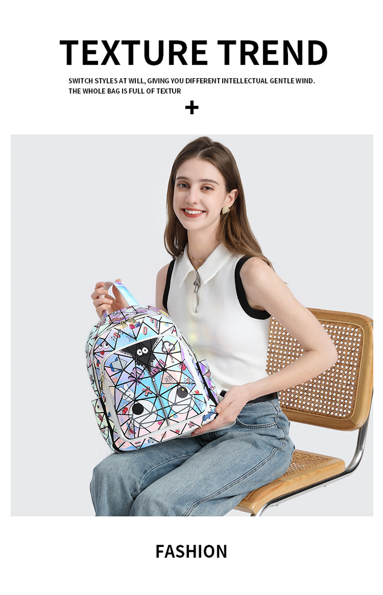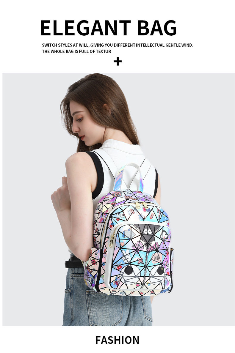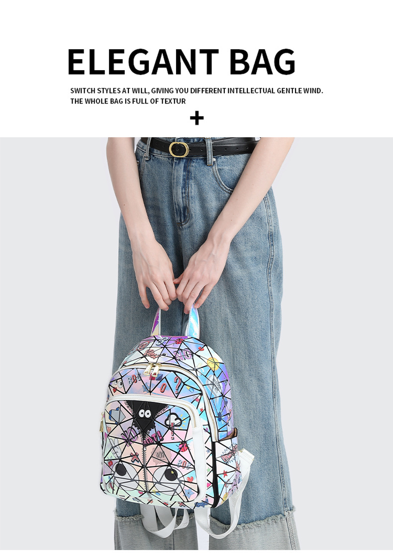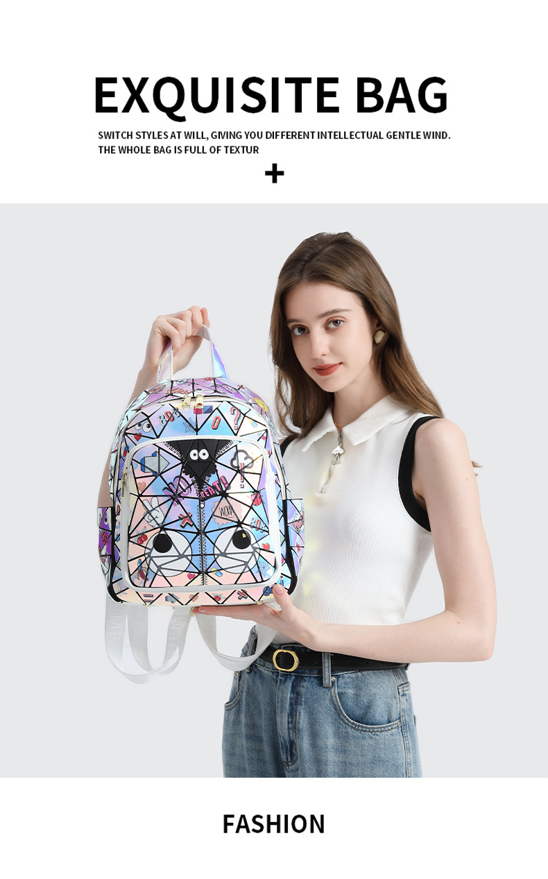 Diseño francés, nueva mochila cuadrada acolchada con láser, bolso escolar, bolsa de almacenamiento de viaje con cremallera 2394 #