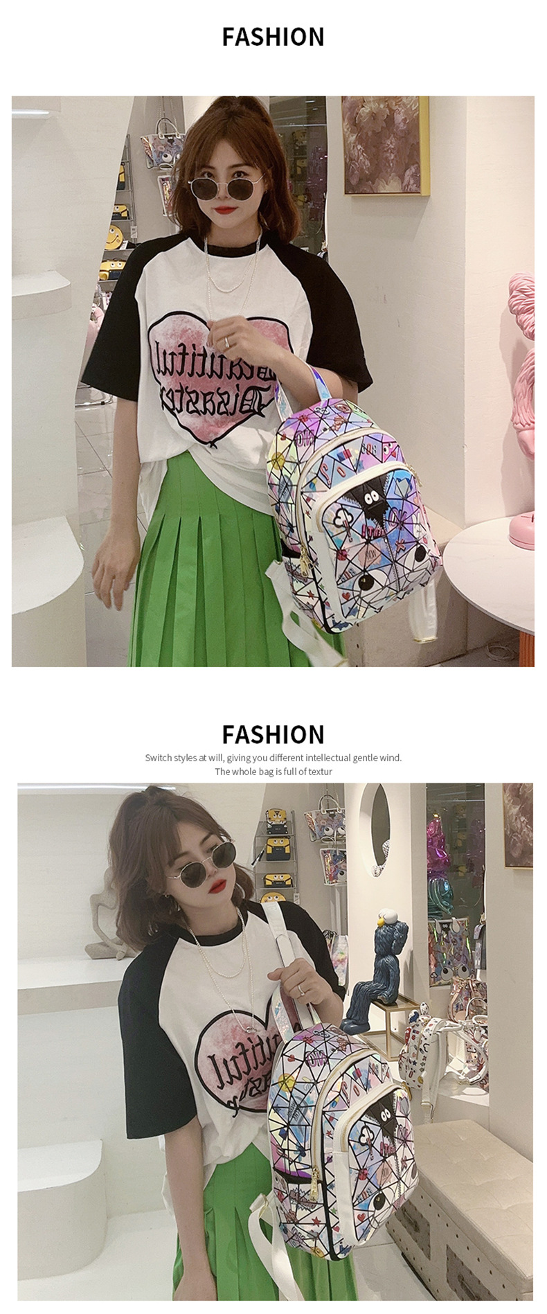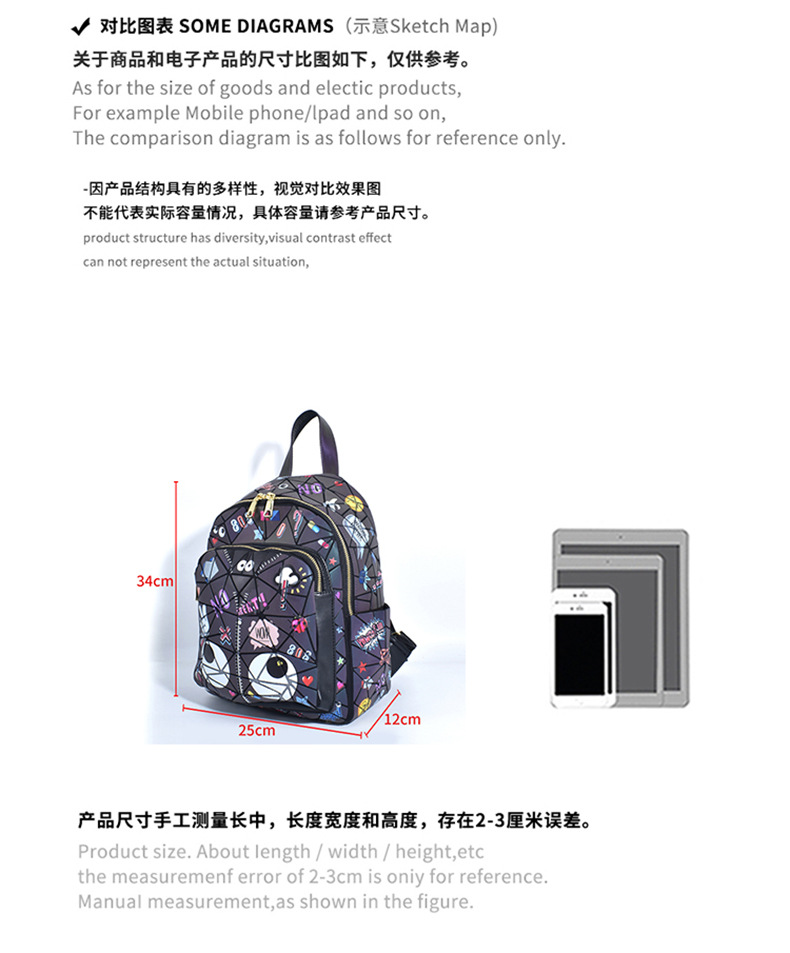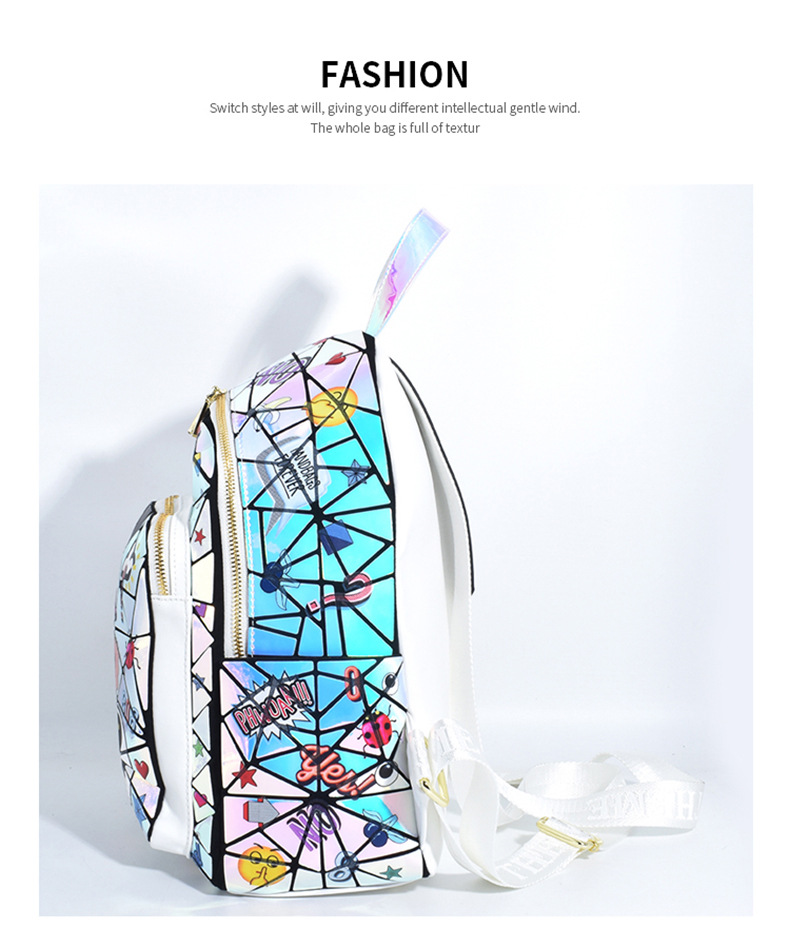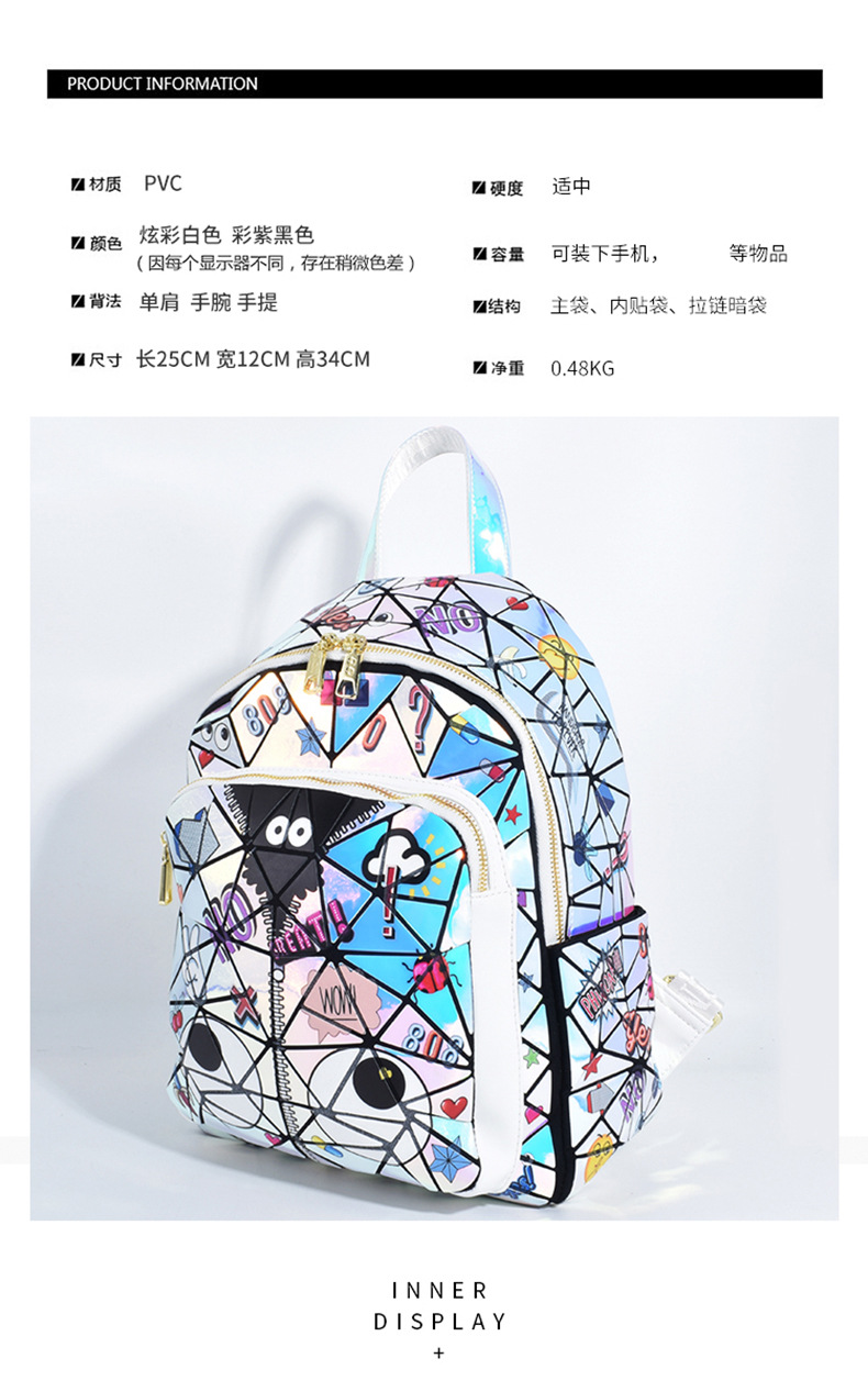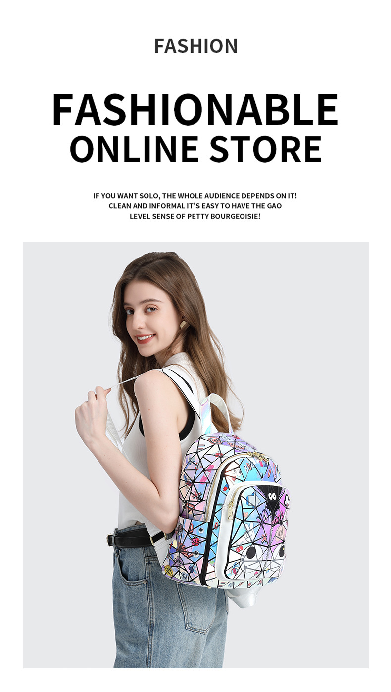 Diseño francés, nueva mochila cuadrada acolchada con láser, bolso escolar, bolsa de almacenamiento de viaje con cremallera 2394 #