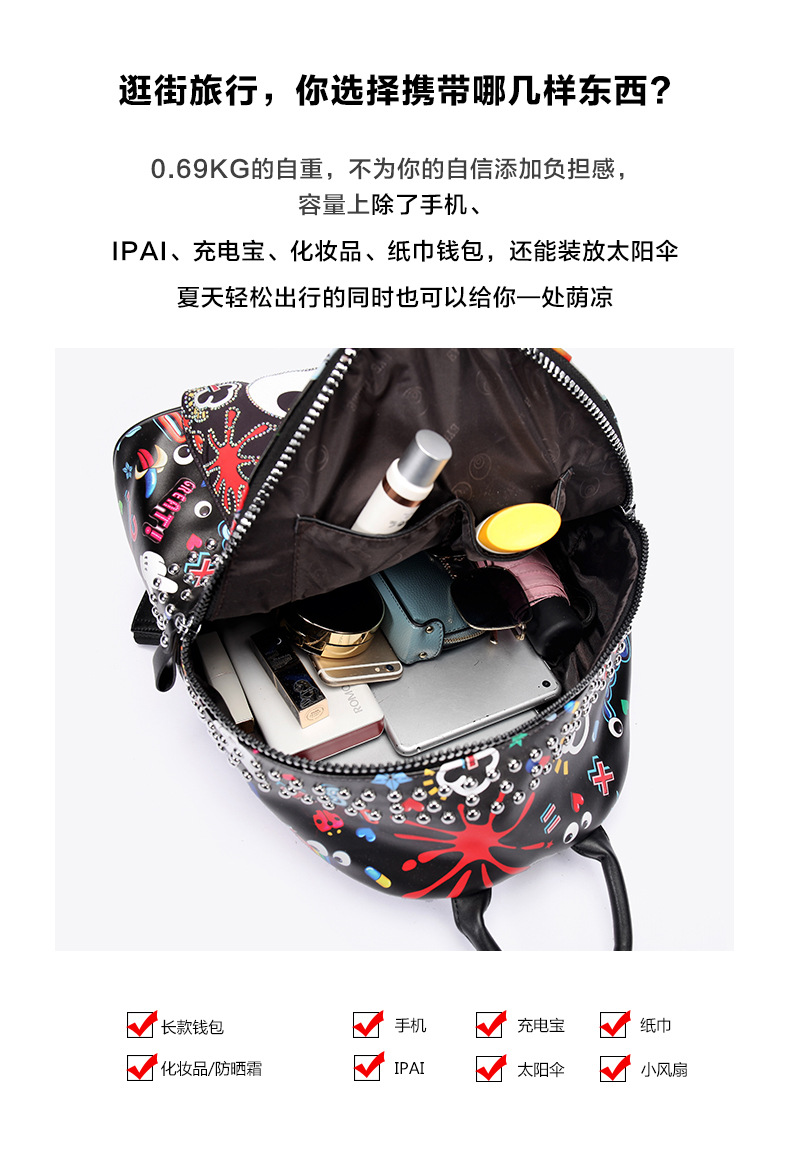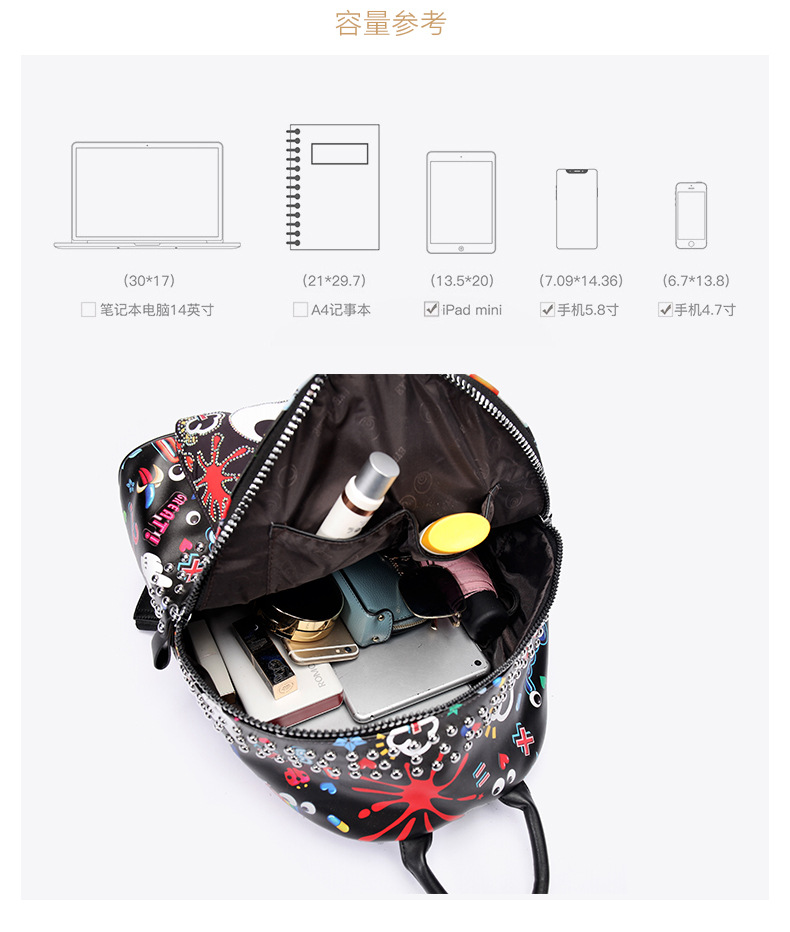 Bolsos para mujer 2024 nuevo bolso escolar estampado para estudiantes universitarios mochila pequeña de viaje de moda de gran capacidad 1745