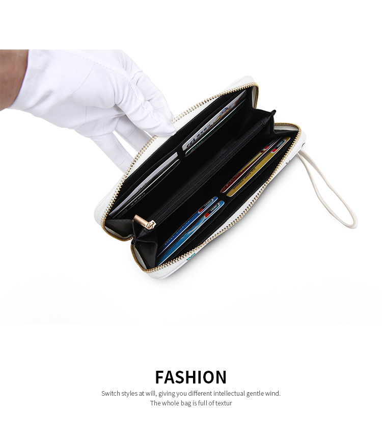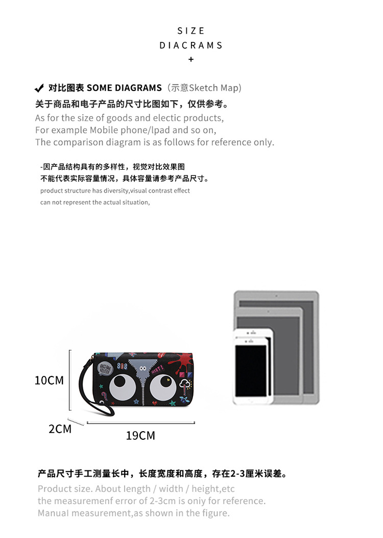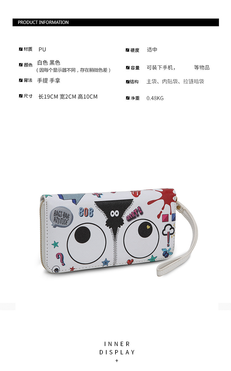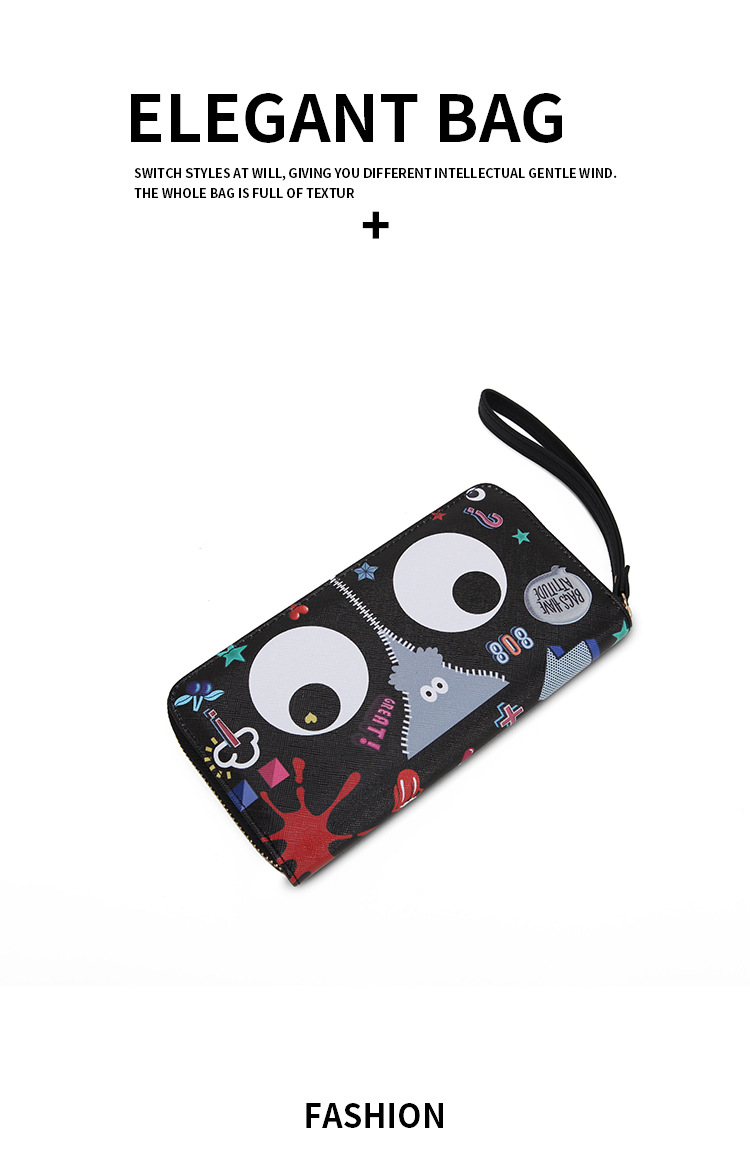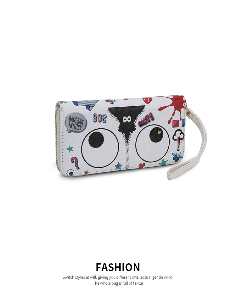 Ojos grandes largo embrague cremallera compartimento de las mujeres monedero titular la tarjeta ID bolsa