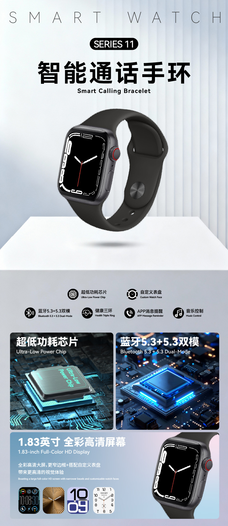Huaqiang Bei S11 reloj inteligente Bluetooth llamadas de alta definición pantalla grande isla móvil de control remoto fotos mensajes empujando alarma
