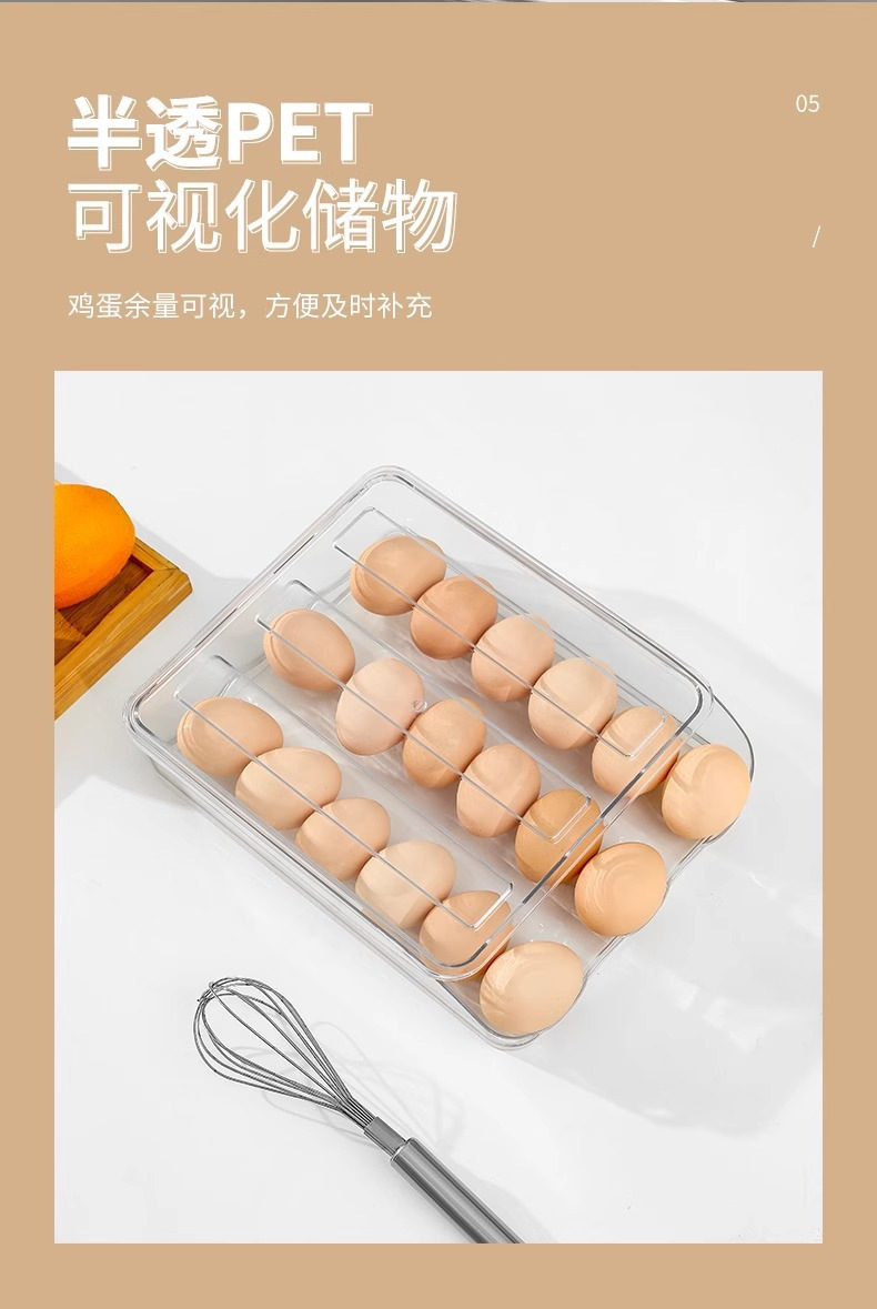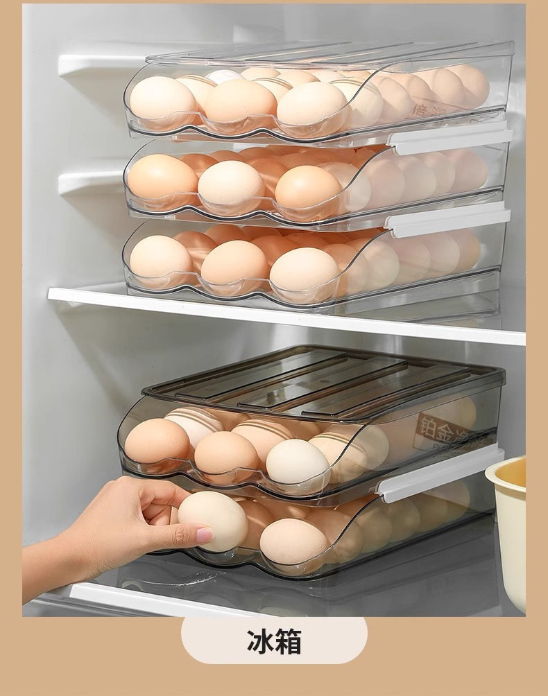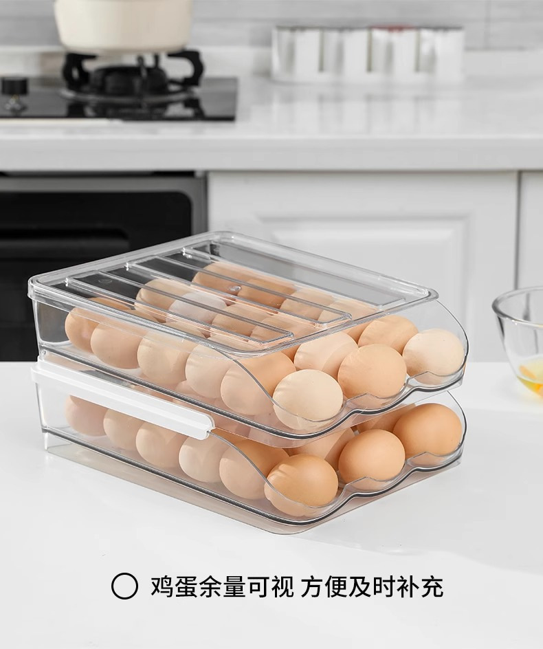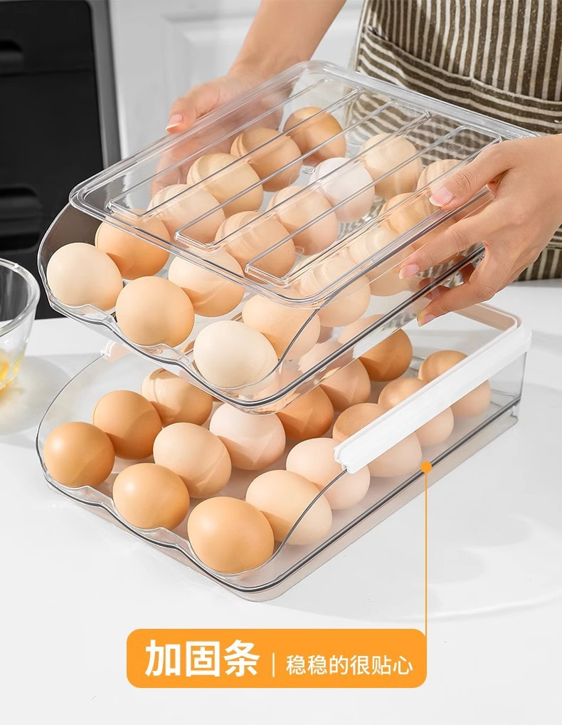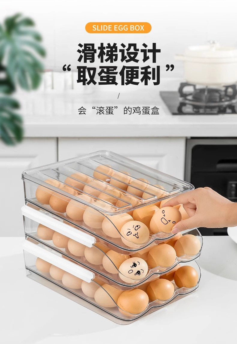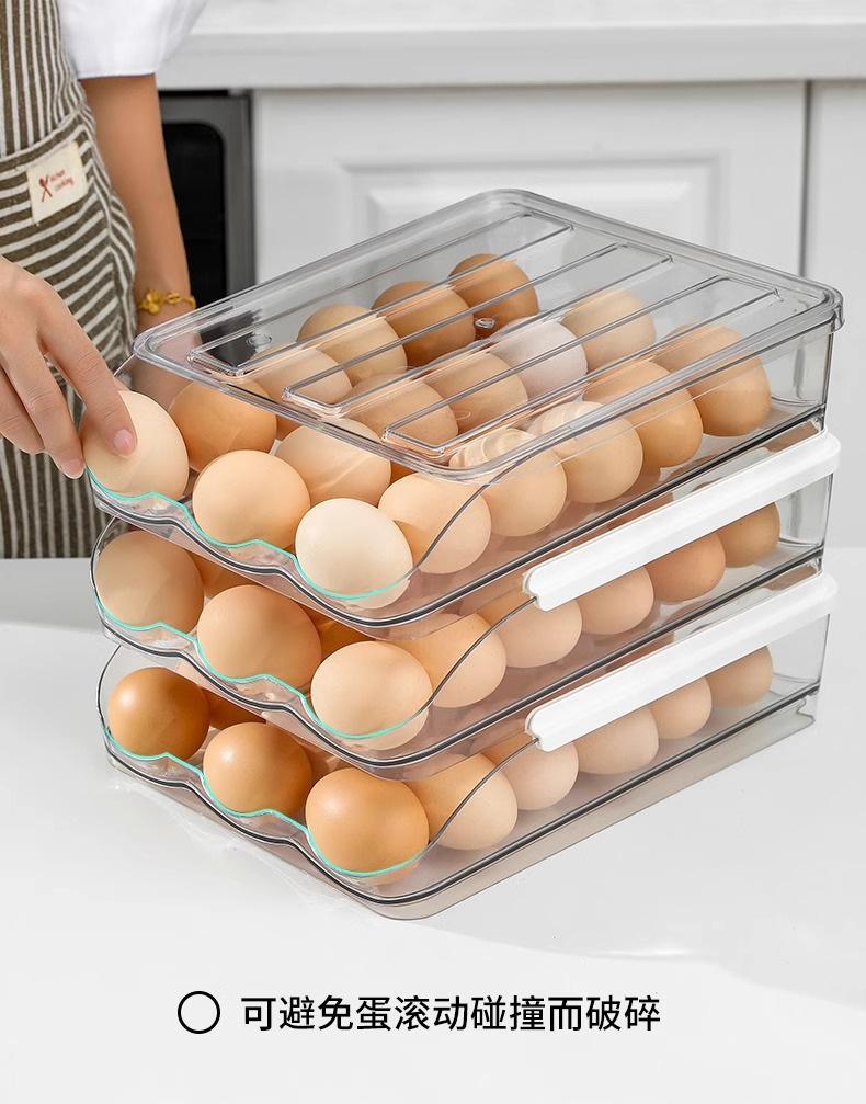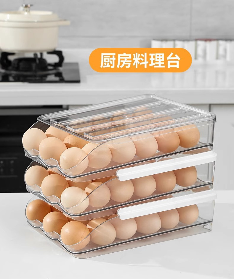 Caja de huevos de cocina doméstica refrigerador tipo deslizante huevo rodador refrigeración fresca multicapa caja de almacenamiento de huevos resistente a caídas