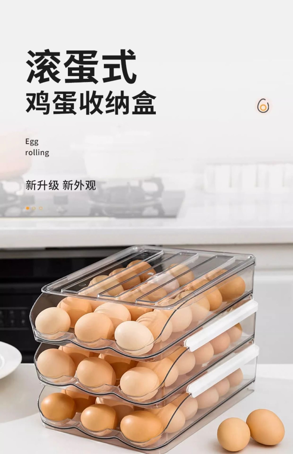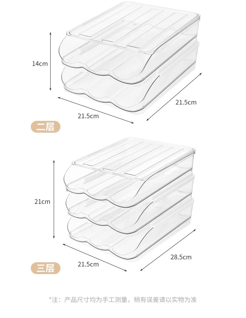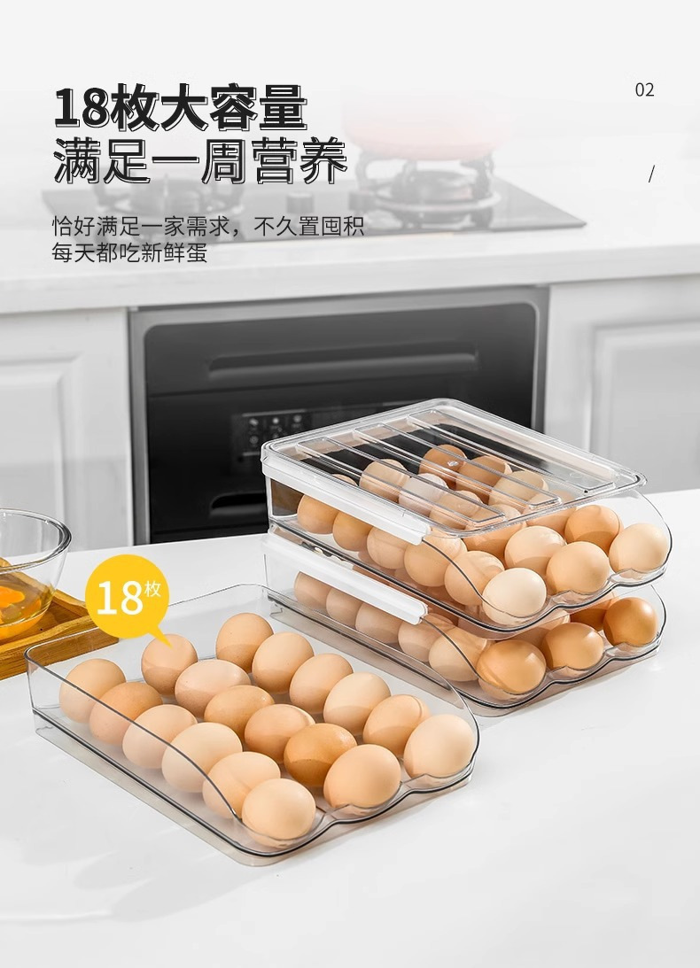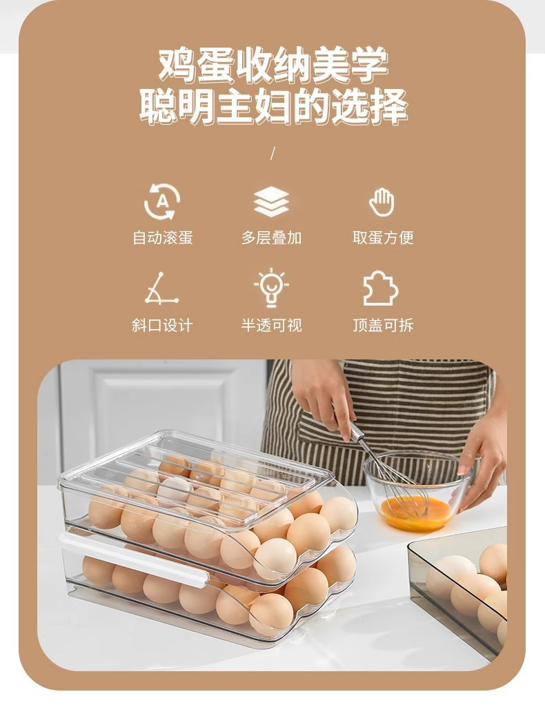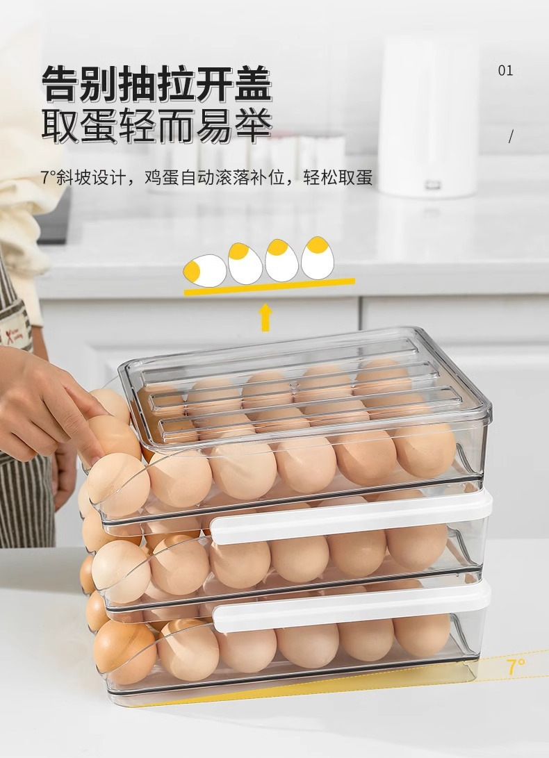 Caja de huevos de cocina doméstica refrigerador tipo deslizante huevo rodador refrigeración fresca multicapa caja de almacenamiento de huevos resistente a caídas