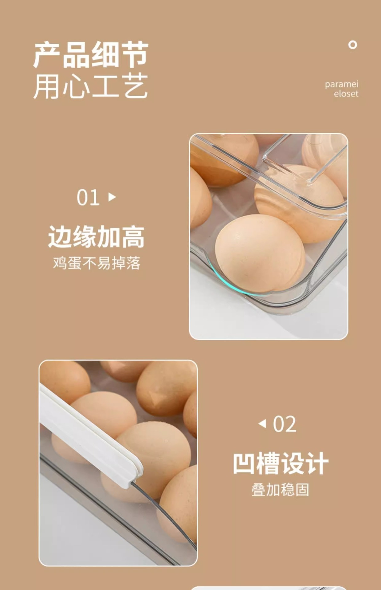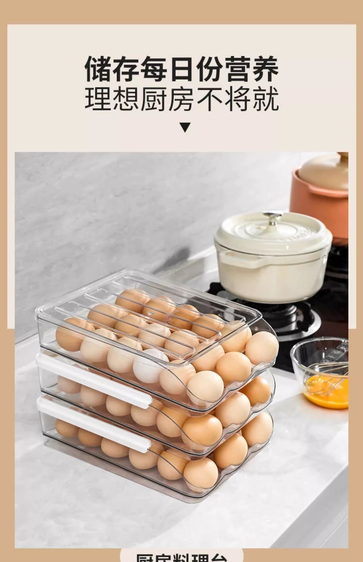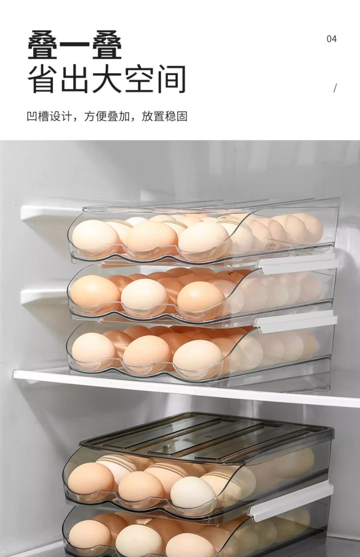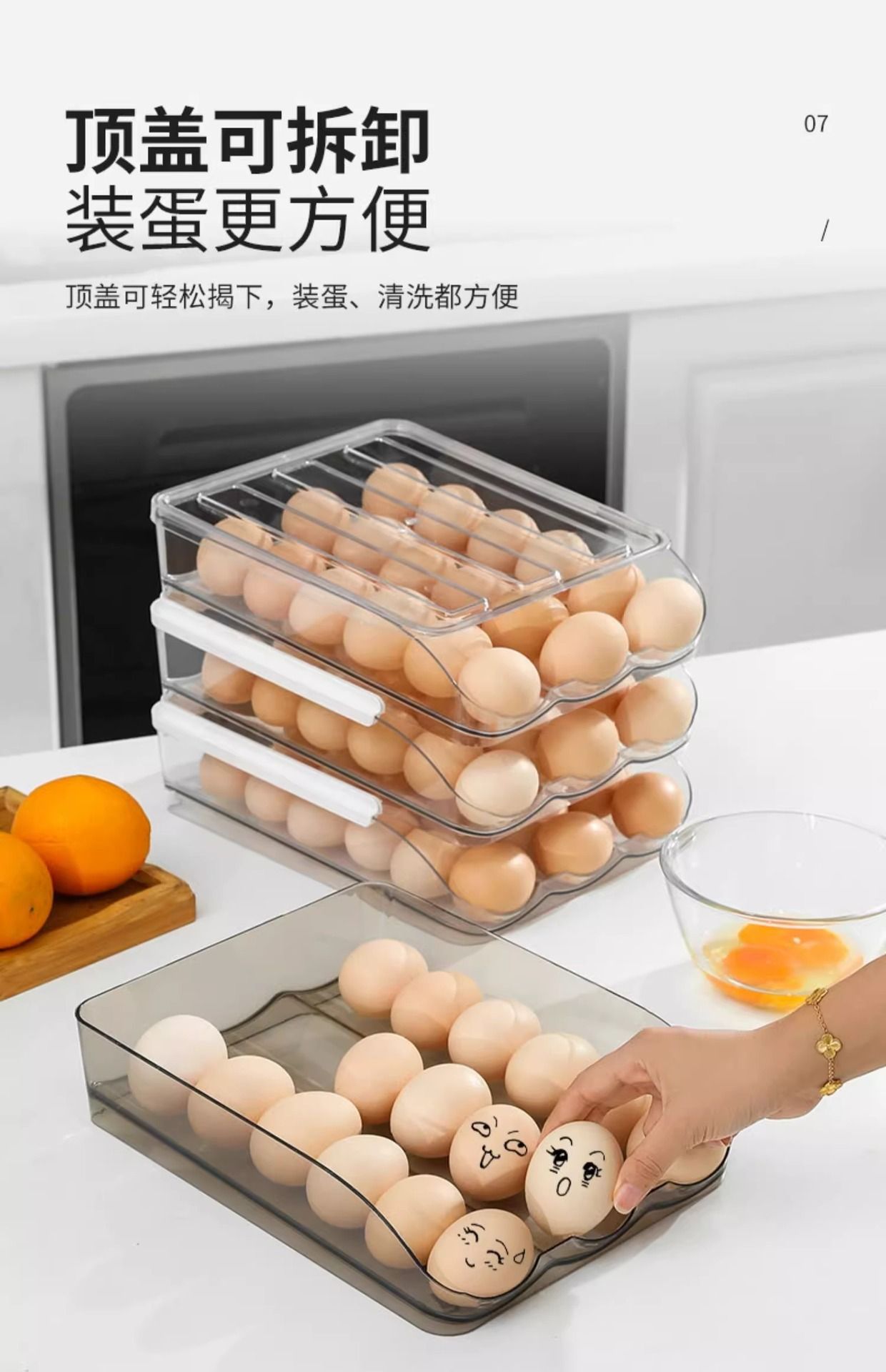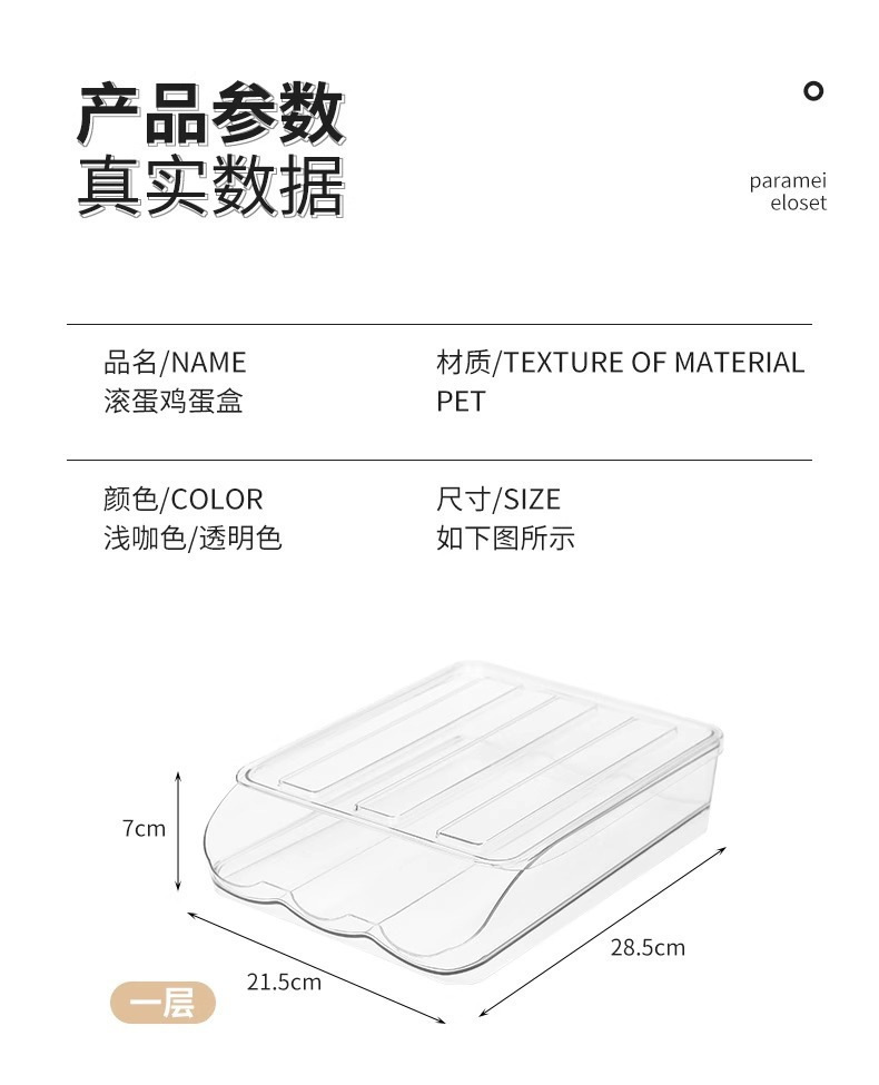 Caja de huevos de cocina doméstica refrigerador tipo deslizante huevo rodador refrigeración fresca multicapa caja de almacenamiento de huevos resistente a caídas