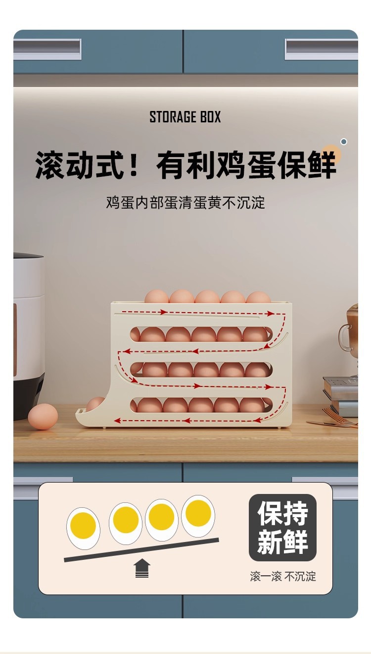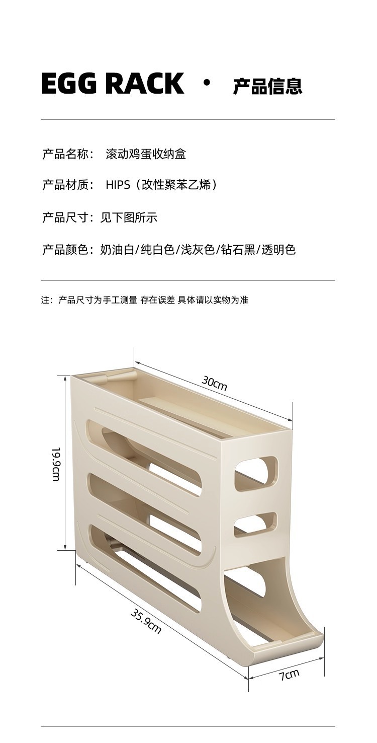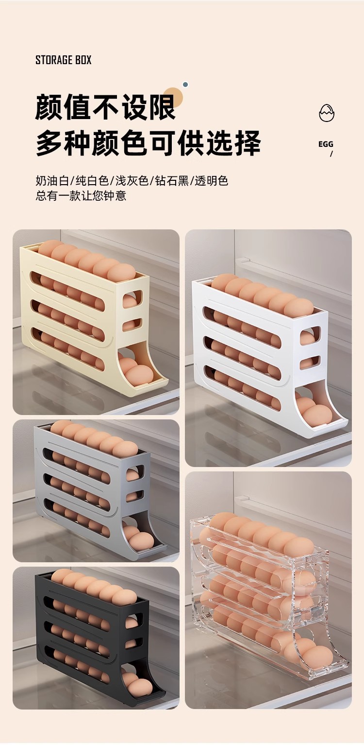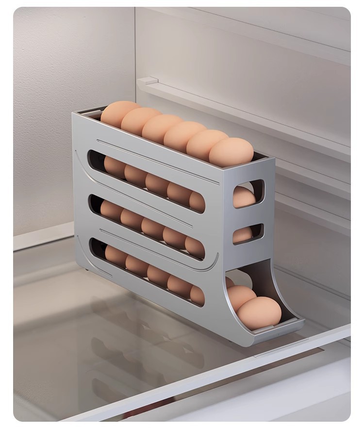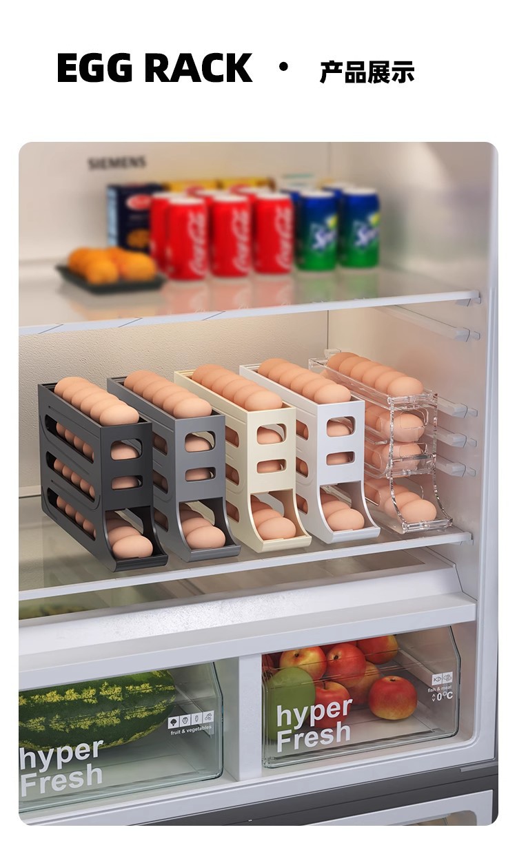 Caja de almacenamiento de huevos deslizante, caja de almacenamiento de puerta lateral del refrigerador, soporte de huevos doméstico de grado alimenticio, caja de huevos rodada automáticamente