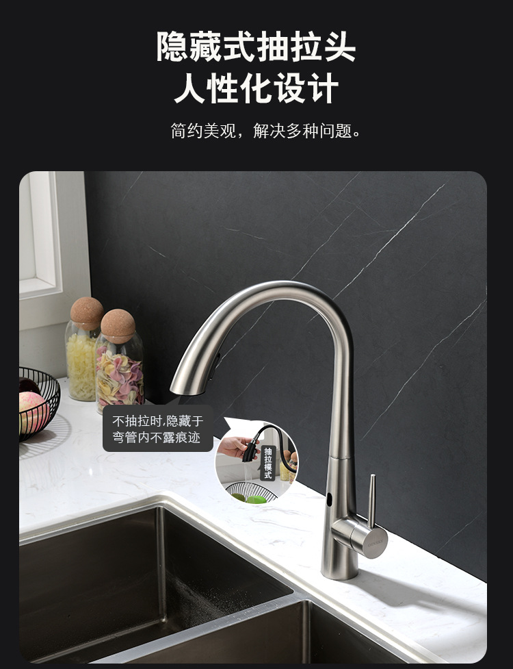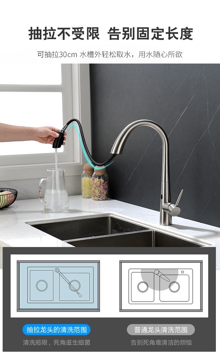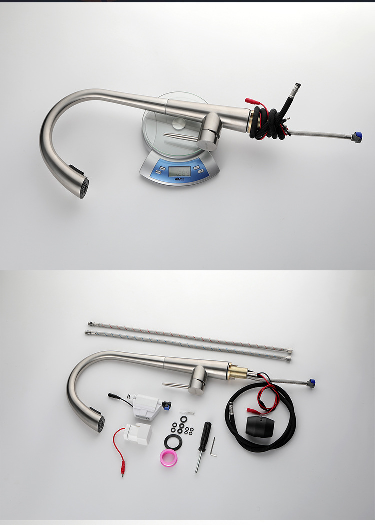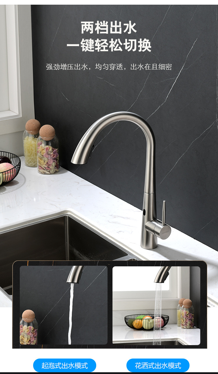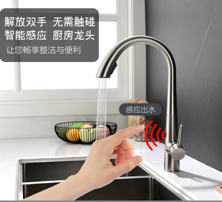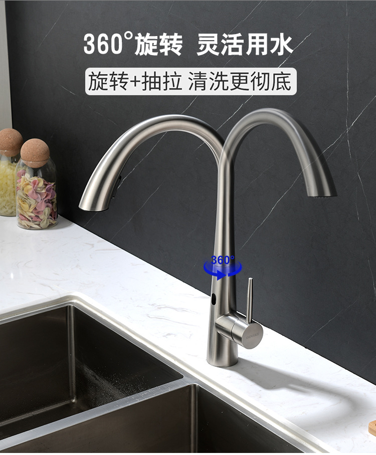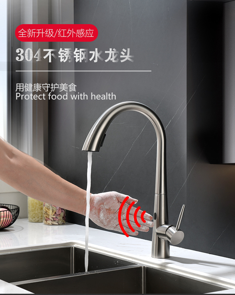 Grifos de extracción de inducción de cocina inteligente 304 sin plomo de acero inoxidable lavabo de verduras grifo de agua caliente y fría multifuncional