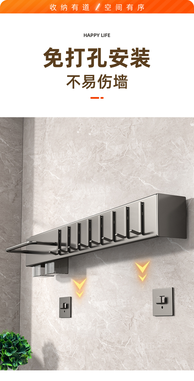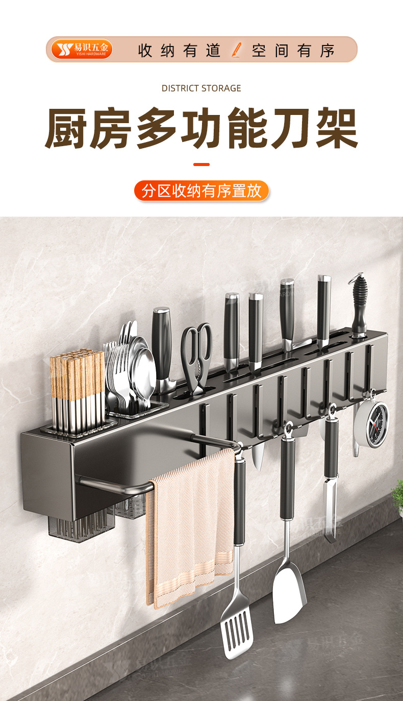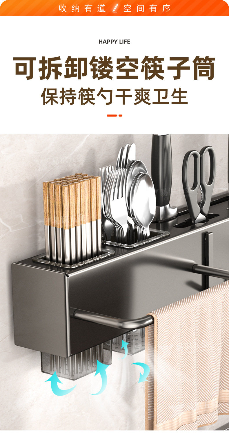 Fabricante de cuchillos de cocina sin agujeros de perforación espesación multifuncional palillos cuchillo de inserción de tubo de almacenamiento integrado pared colgante estante