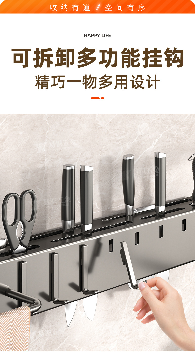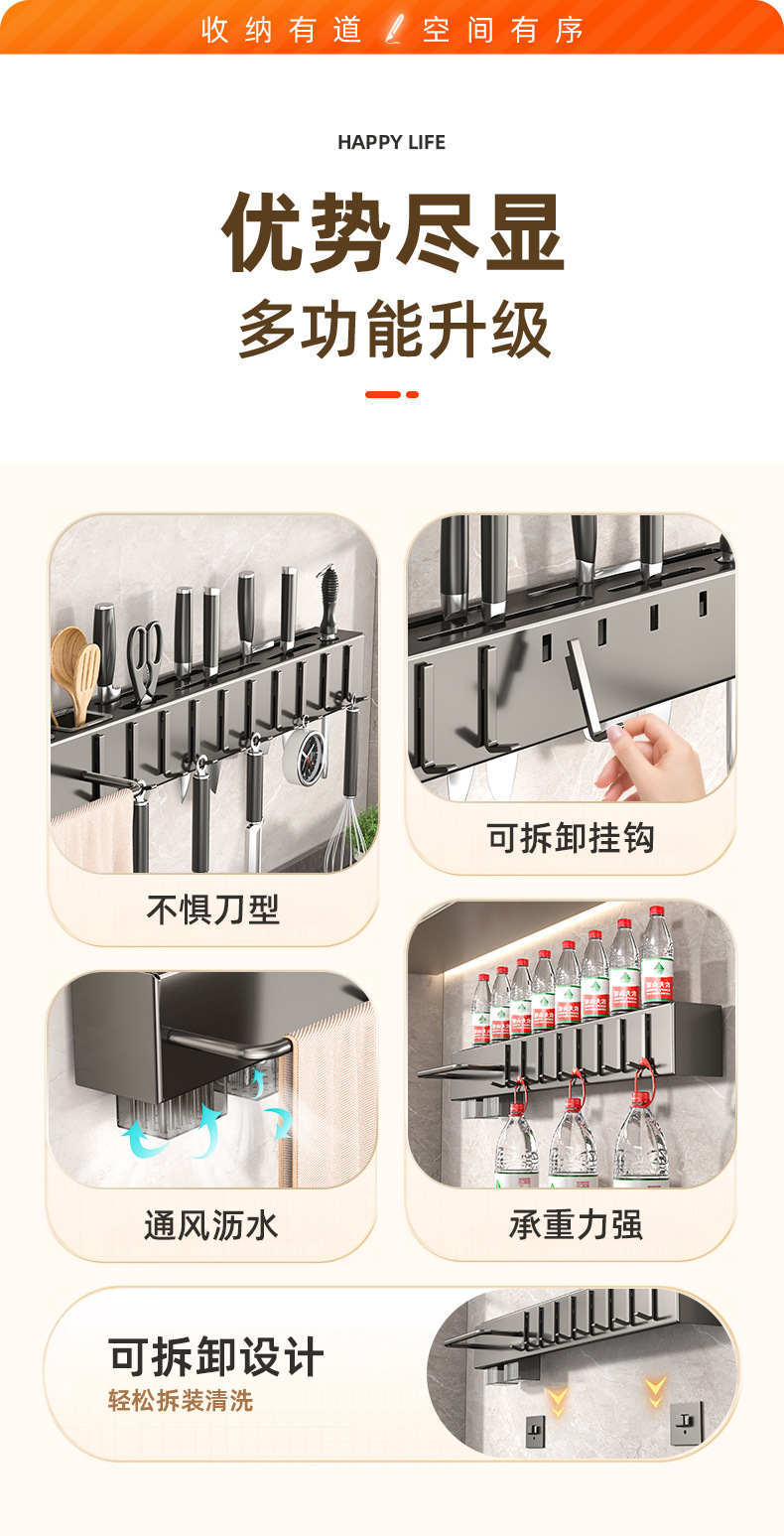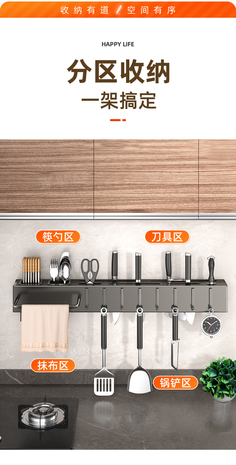 Fabricante de cuchillos de cocina sin agujeros de perforación espesación multifuncional palillos cuchillo de inserción de tubo de almacenamiento integrado pared colgante estante