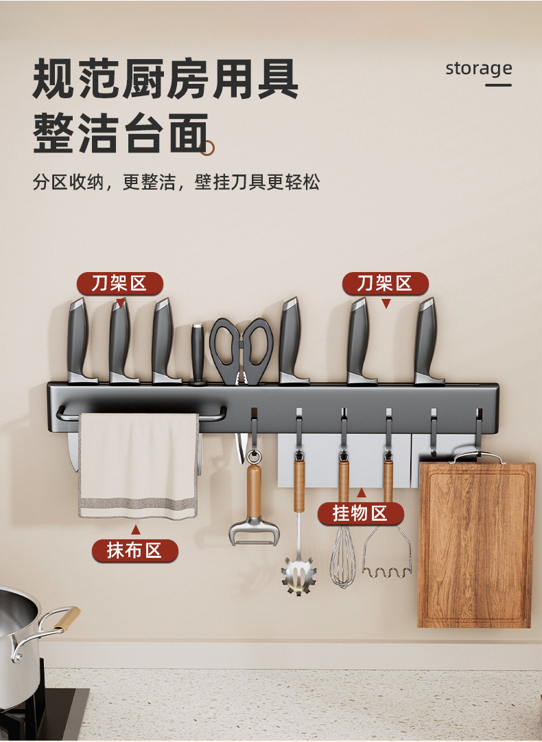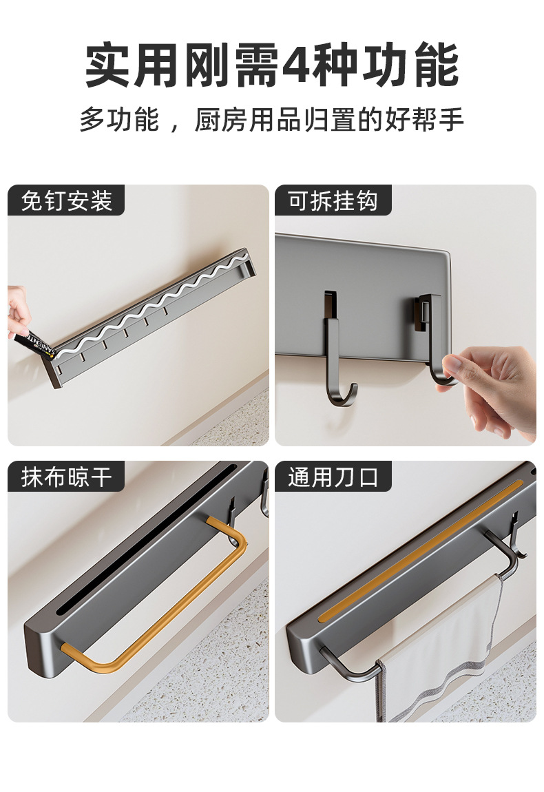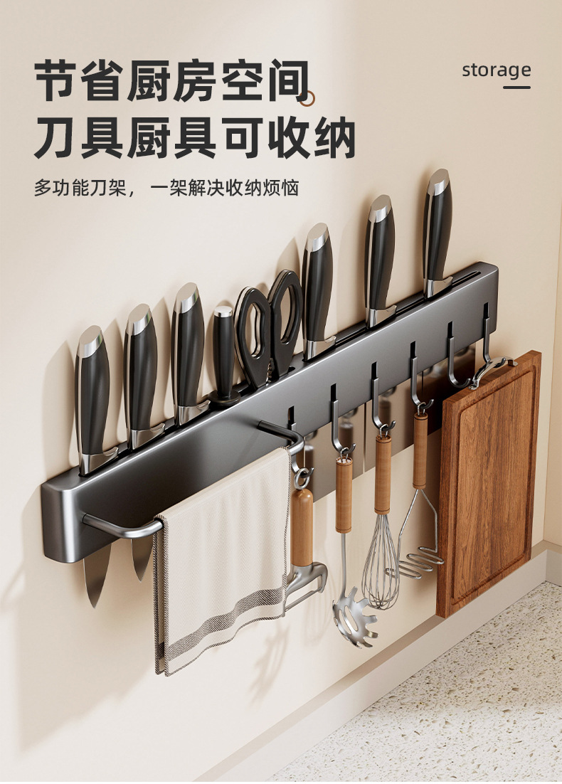 Fabricante de suministro sin perforación de soporte de cuchillos de almacenamiento de artículos de cocina multifuncional de almacenamiento de herramientas de pared