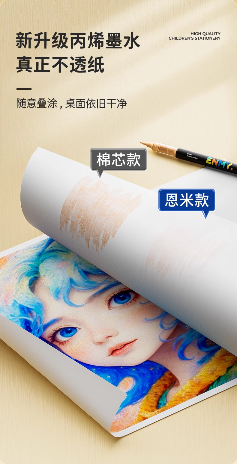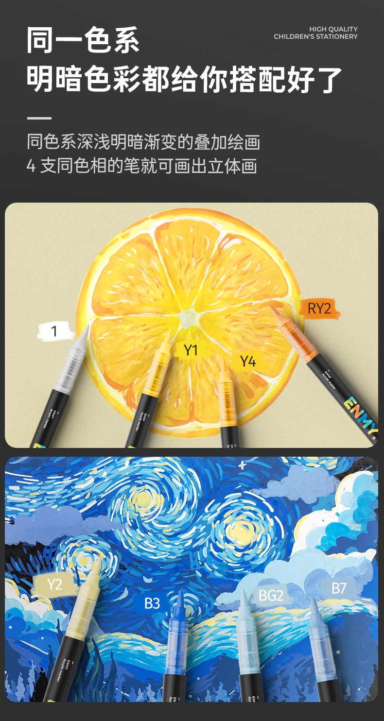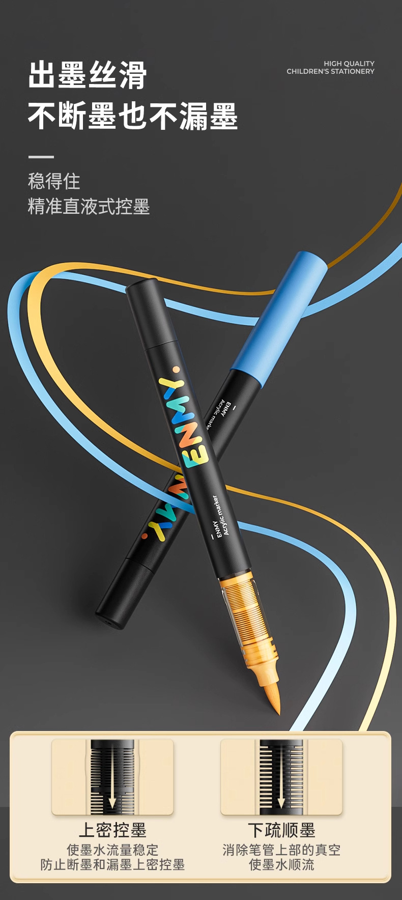 Enmi pequeño bolígrafo acrílico de caja negra, bolígrafo de acuarela especial para arte de pintura de cabeza suave, bolígrafo no tóxico lavable