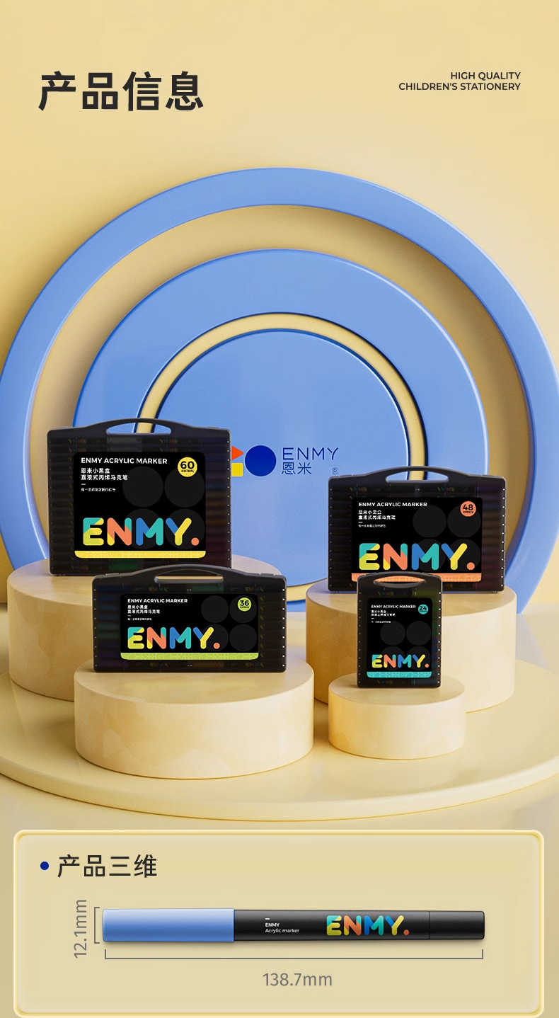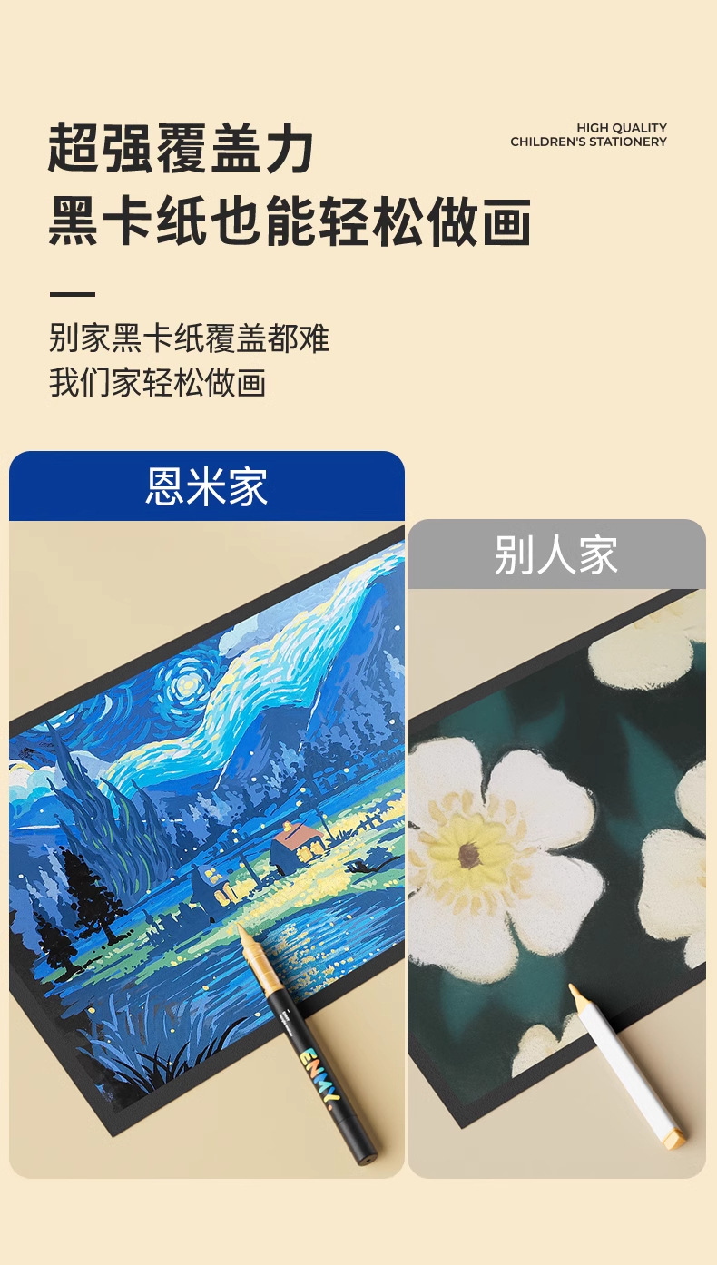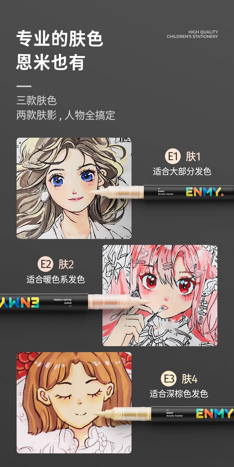Enmi pequeño bolígrafo acrílico de caja negra, bolígrafo de acuarela especial para arte de pintura de cabeza suave, bolígrafo no tóxico lavable