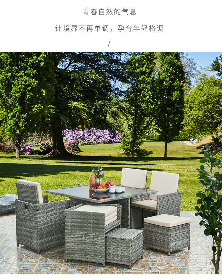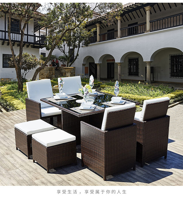 Mesa y silla al aire libre de caña silla mayorista balcón ocio de cinco piezas patio muebles al aire libre de caña combinación de mesa y silla
