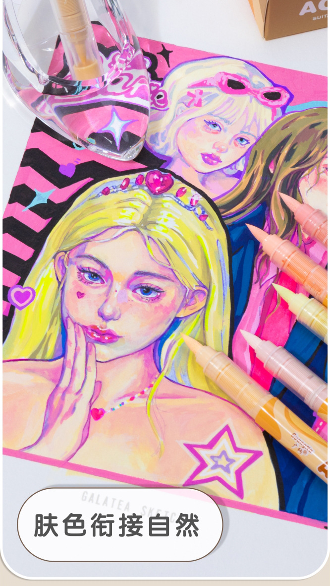 Guangna 8201 color de piel líquido directo acrílico marcador bolígrafo de cabeza suave estudiantes de arte personajes animados diy pintura a mano