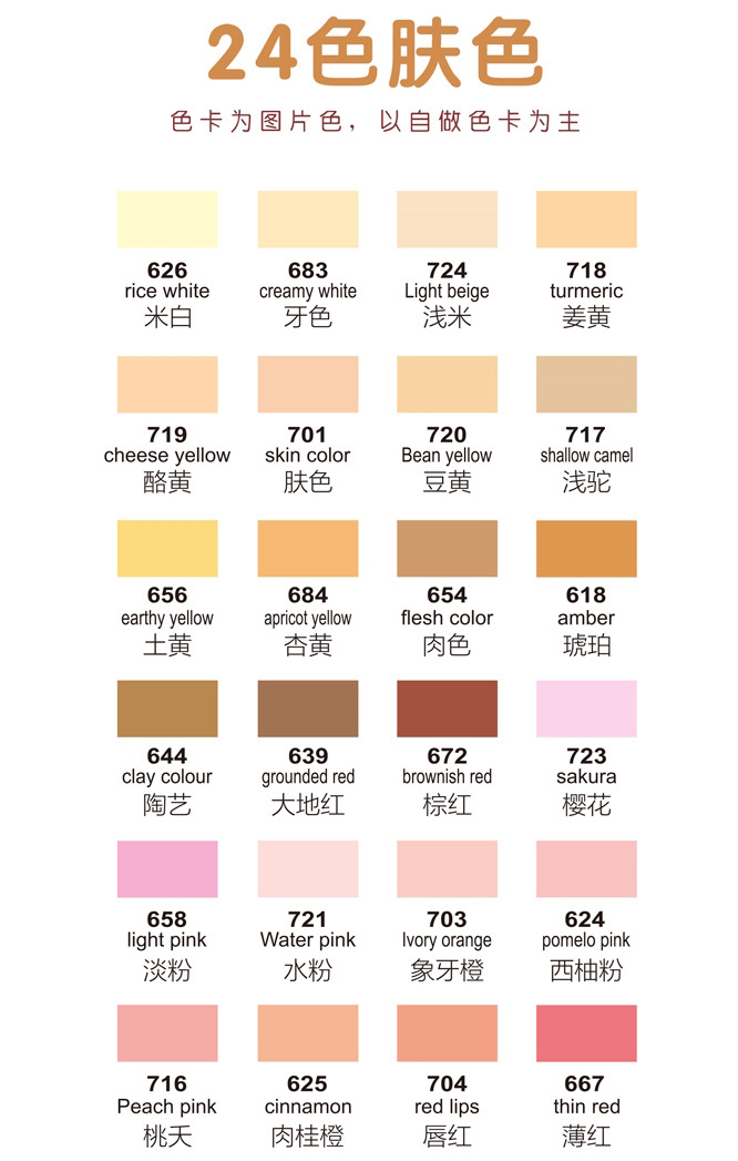 | Especificaciones | Serie de color de piel 24 juegos de colores, serie de piel clara 12 juegos de colores, serie de piel rosa 12 juegos de colores, serie de 12 juegos de colores marrón rojo, serie de 12 juegos de colores marrón, serie de 12 juegos de colores macaron E, serie de 12 juegos de colores macaron H |