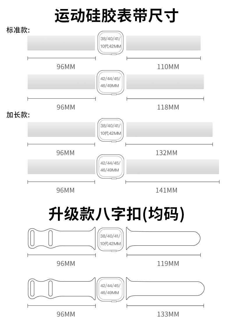 | Especificaciones | El modelo estándar es aplicable al iwatch1-11 / se [38/40/41/10 generación 42mm], el modelo estándar es aplicable al iwatch1-11 generación / se [42/44/45/46/49mm], el modelo extendido es aplicable al iwatch1-11 / se [38/40/41/10 generación 42mm], el modelo extendido es aplicable al iwatch1-11 generación / se [42/44/45/46/49mm] |