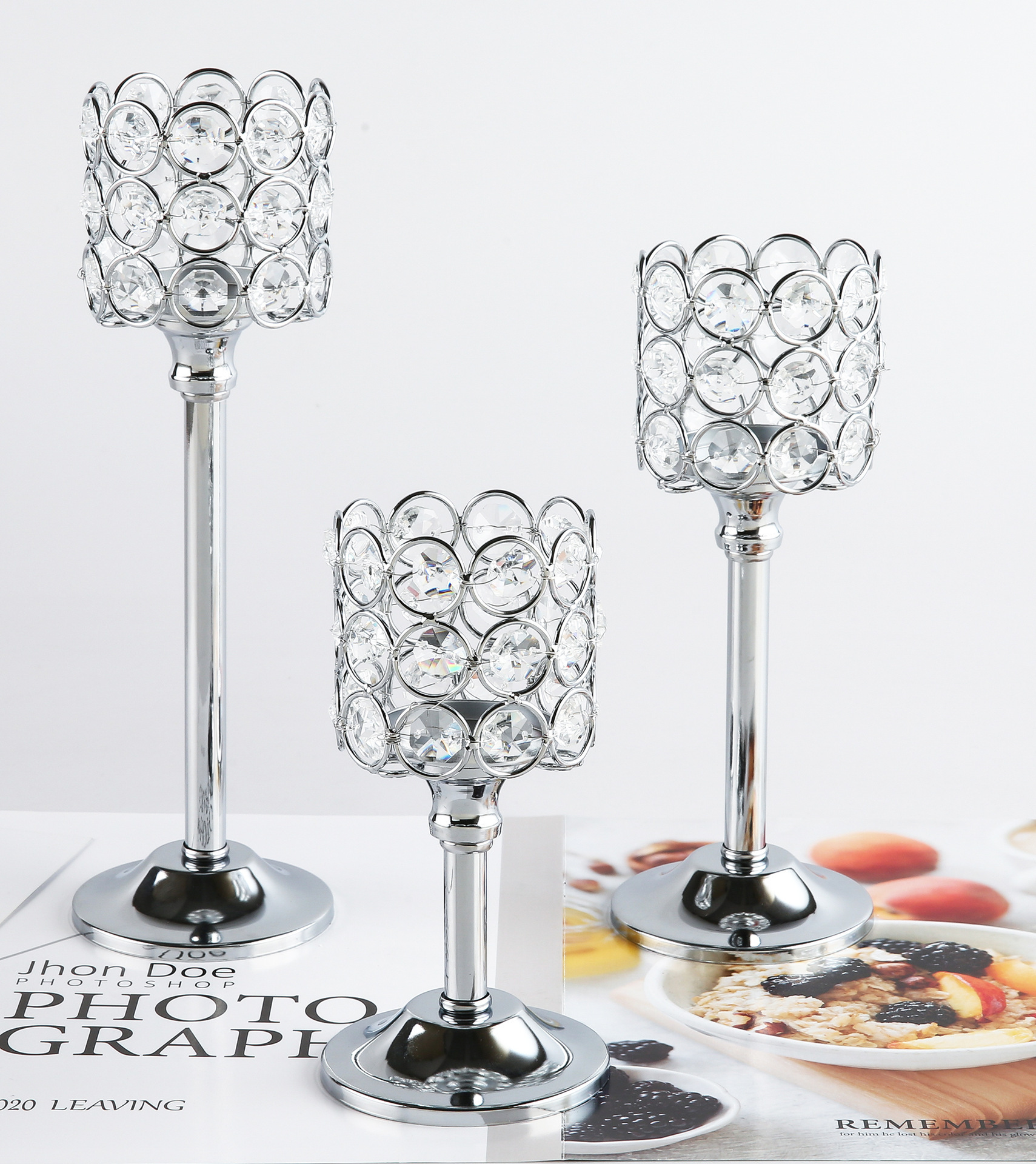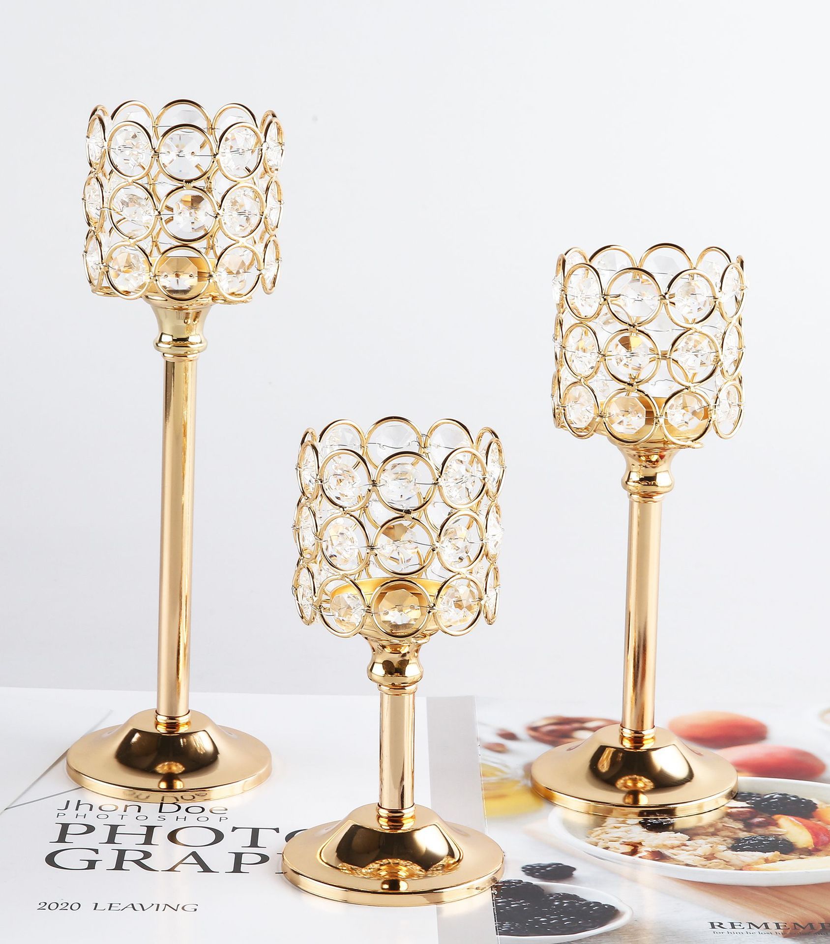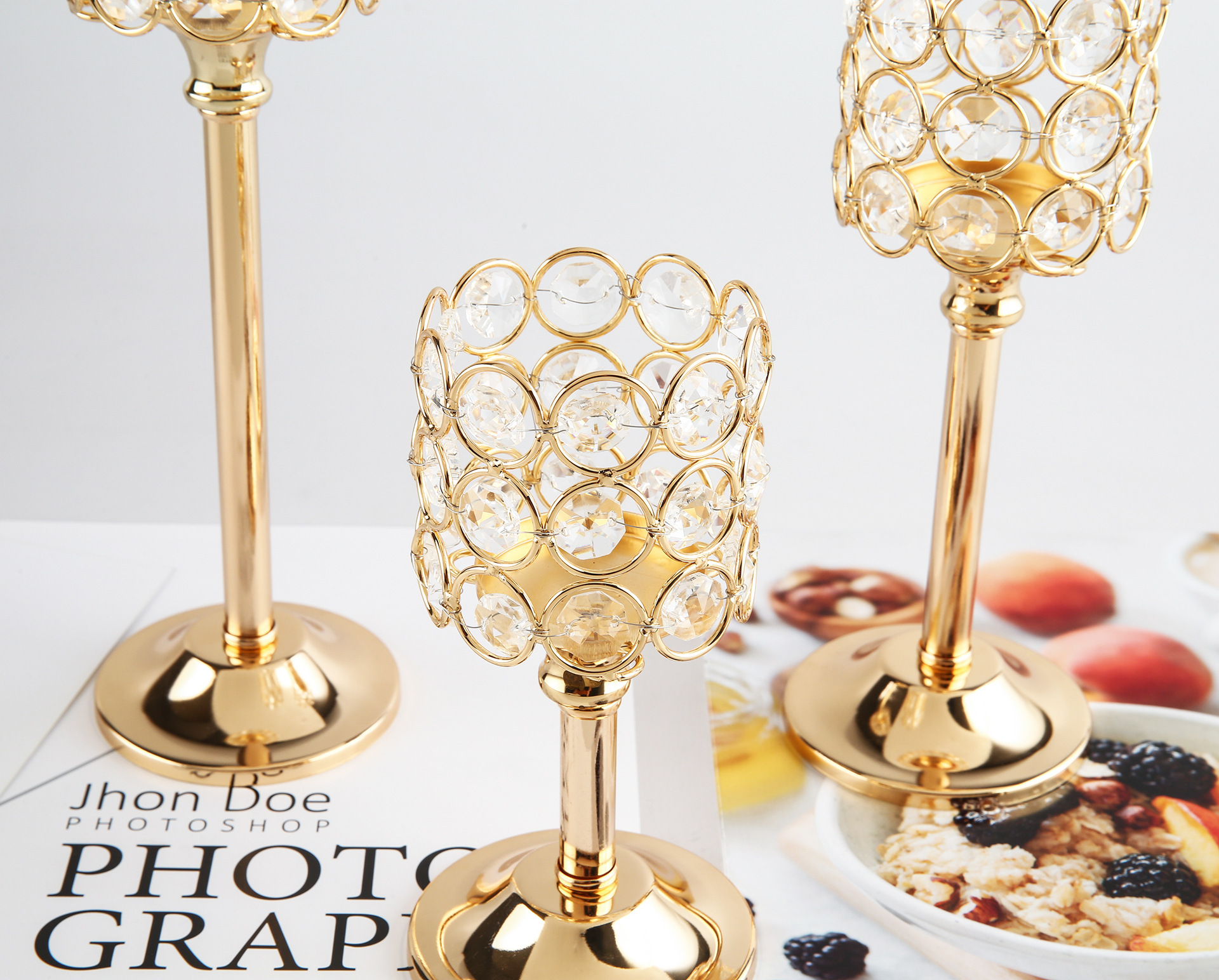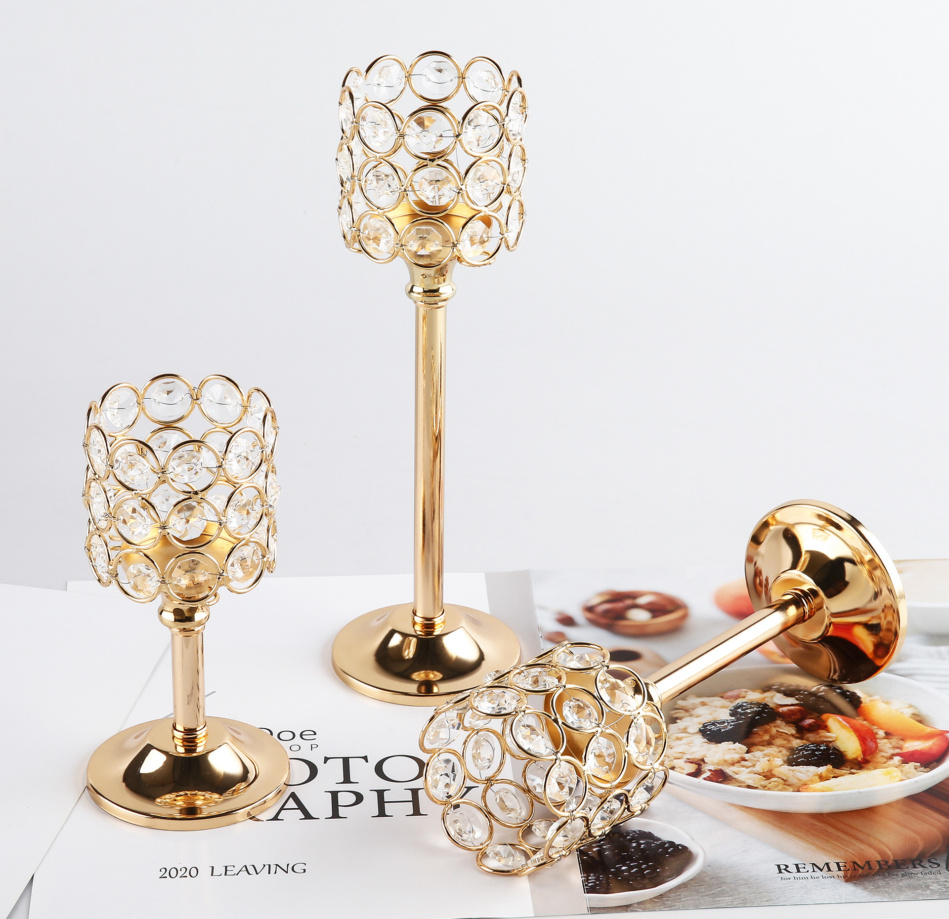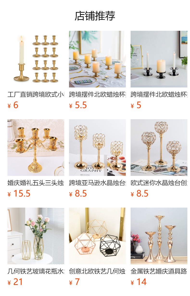 Transfronterizo amazónica cristal candelabro taza de vela europea hierro forjado metal ornamentos artesanía decoración de bodas