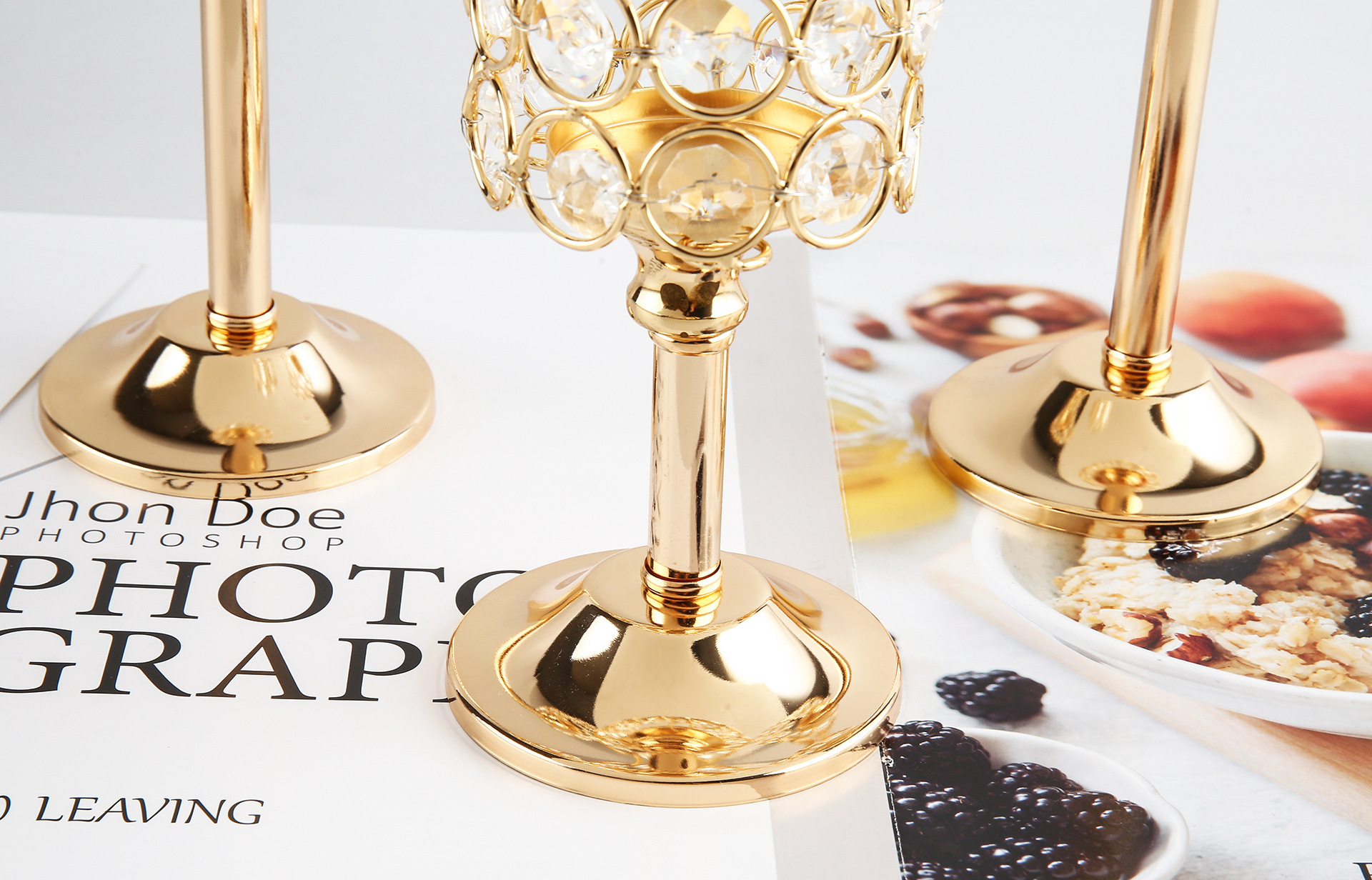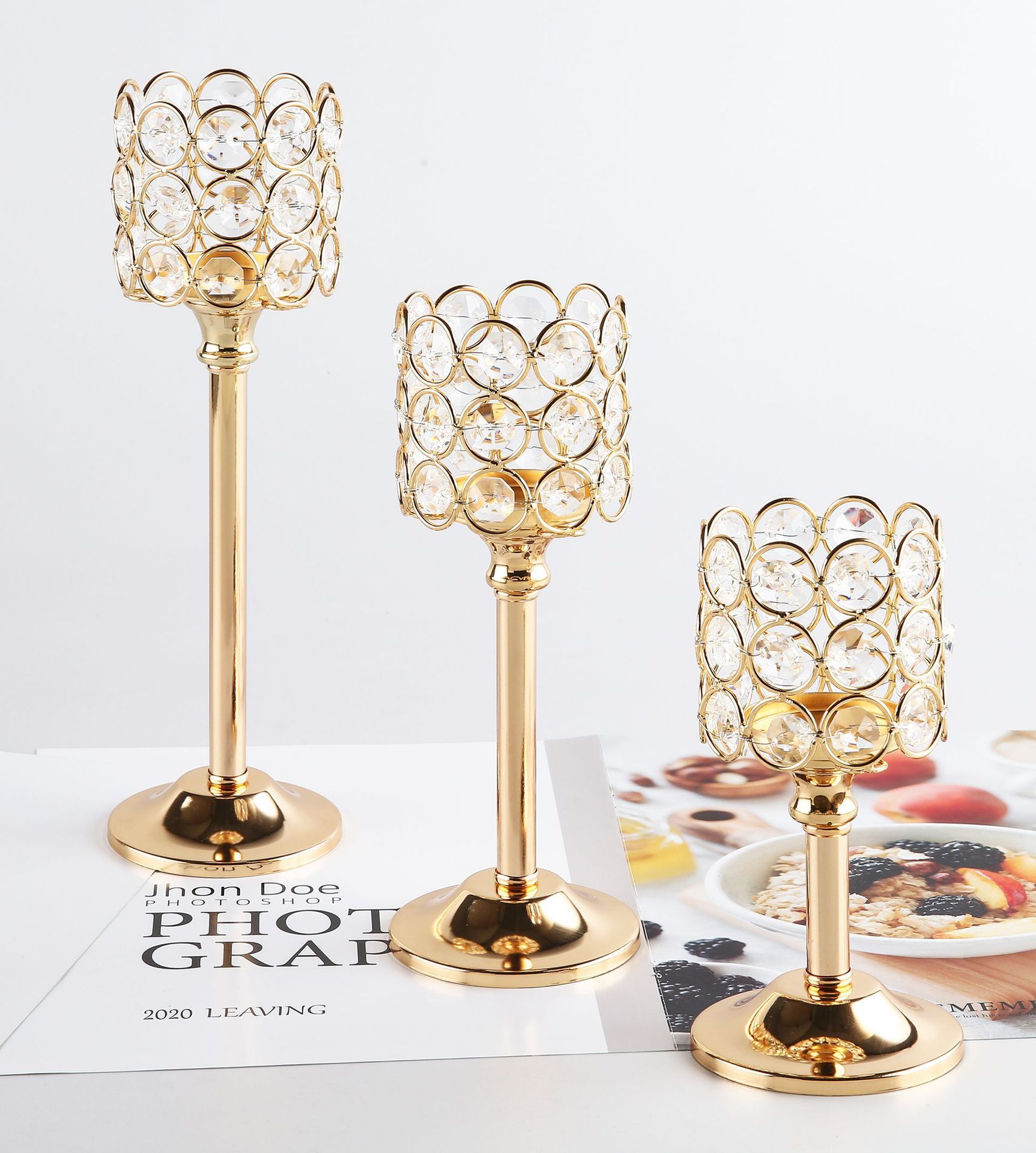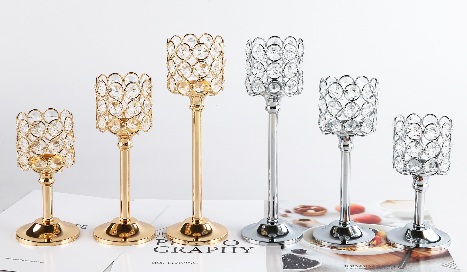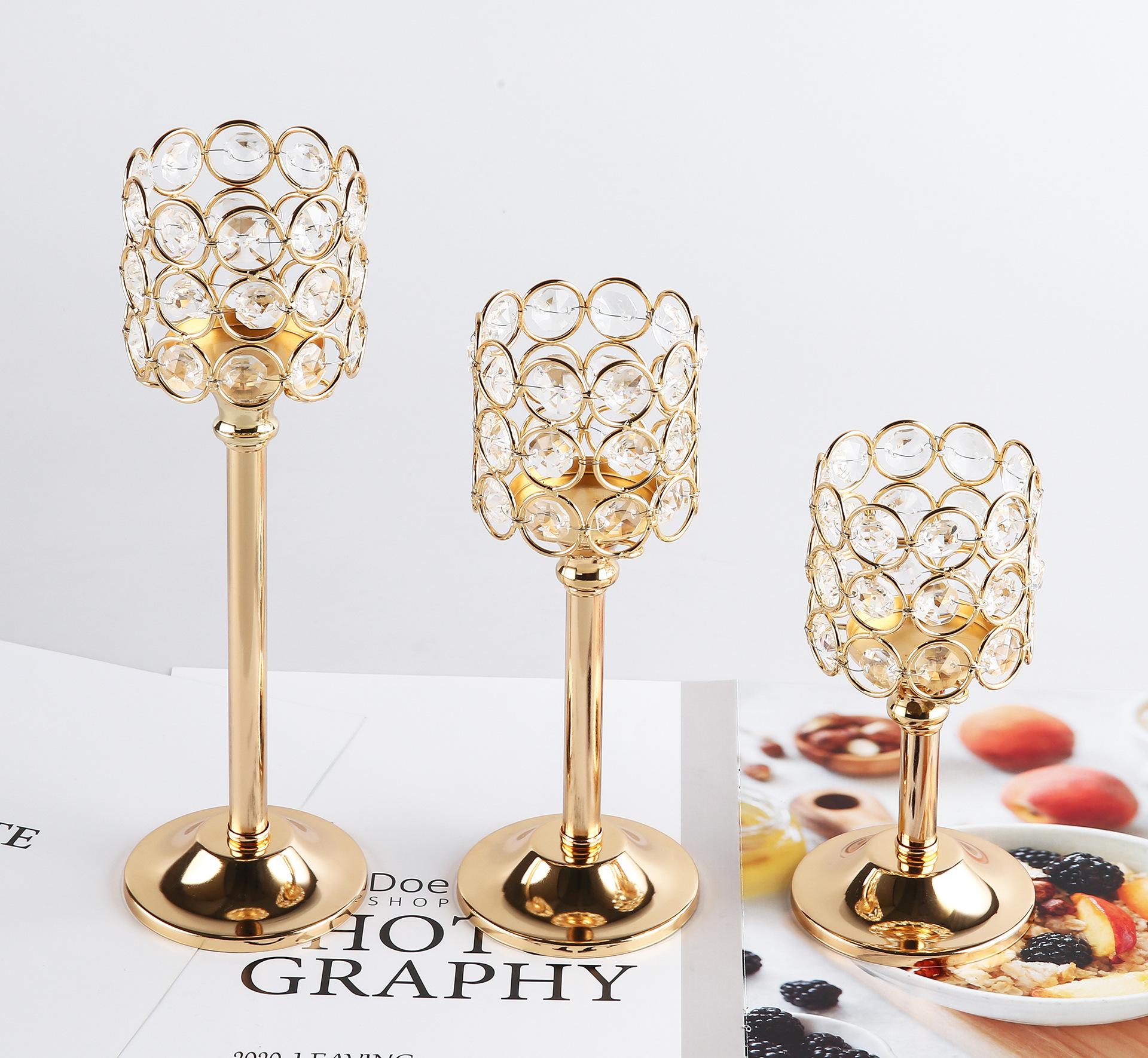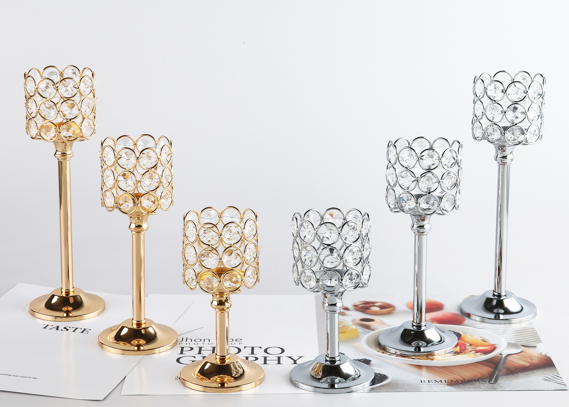 Transfronterizo amazónica cristal candelabro taza de vela europea hierro forjado metal ornamentos artesanía decoración de bodas