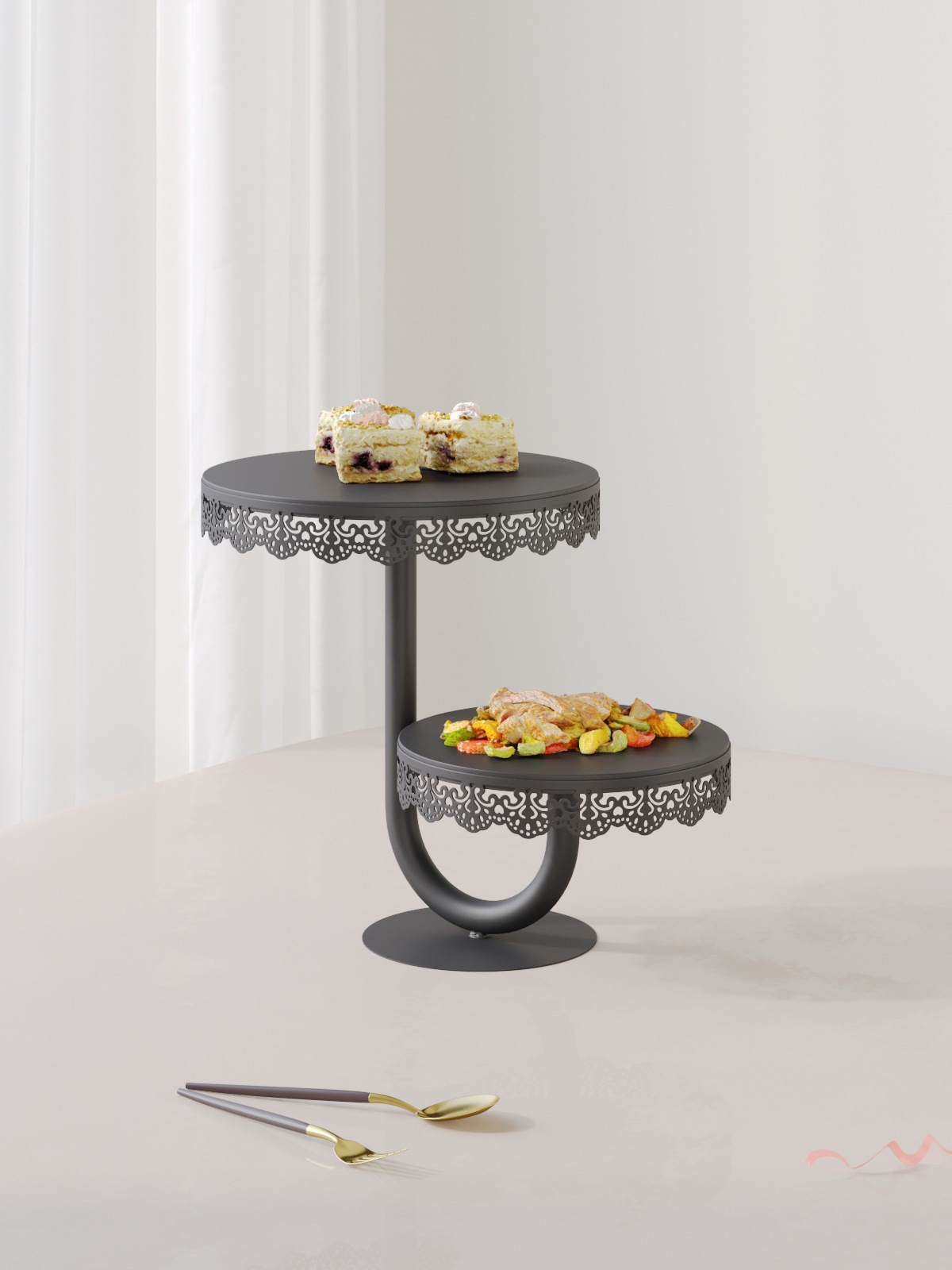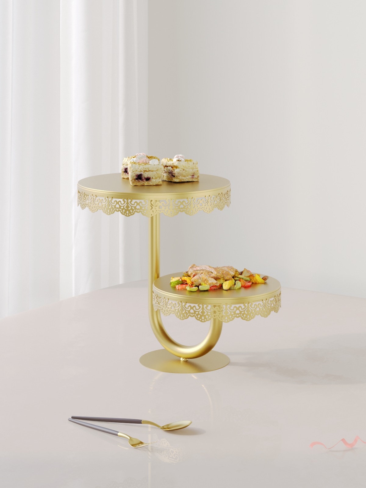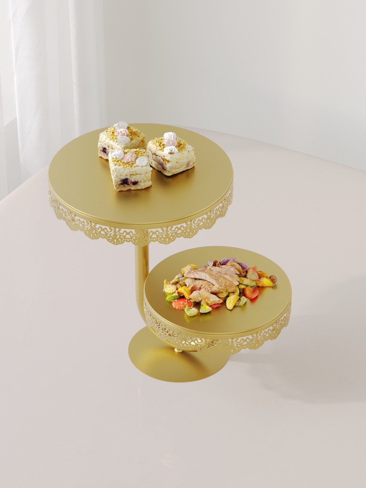 Estante de pastel de oro de lujo ligero europeo decoración de boda mesa de postres decoración de mesa de postres Amazon snack platos de pastel al por mayor