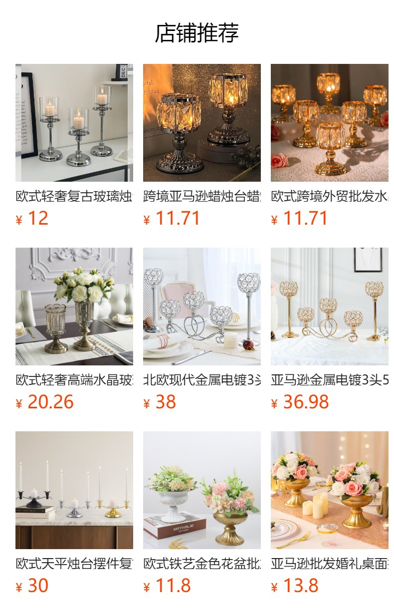 | Categoría de producto | Candelabros, vasijas de velas |