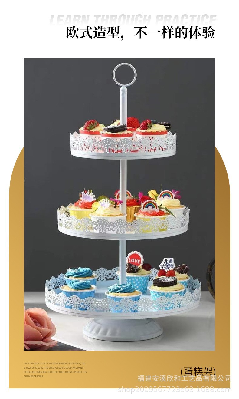 Tabla de postre de hierro forjado blanco decoración de exhibición de bandeja de pastel de estilo europeo de la tarde té de refrigeración de mesa de comida fría