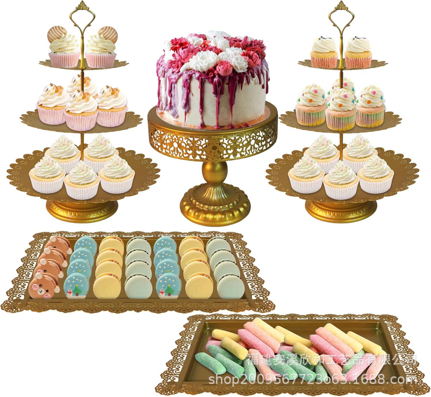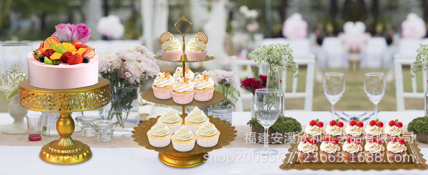 Creativo estilo europeo oro hueco estante de pastel de boda props mesa de postres decoración de postres tienda de postres refrigerio combinación de estante de pastel